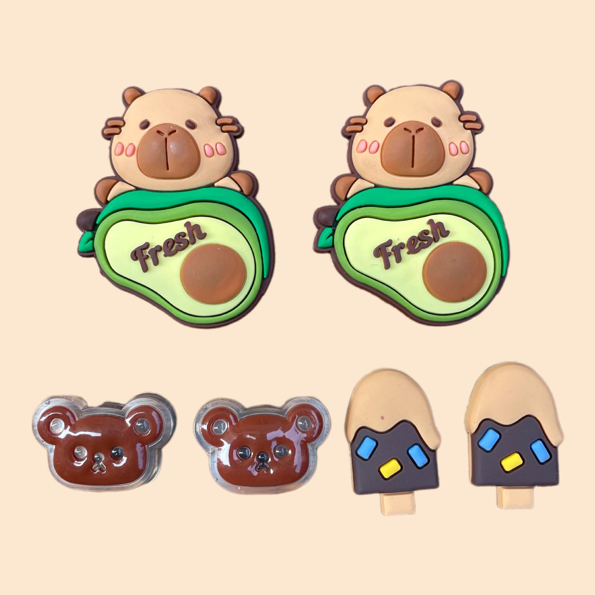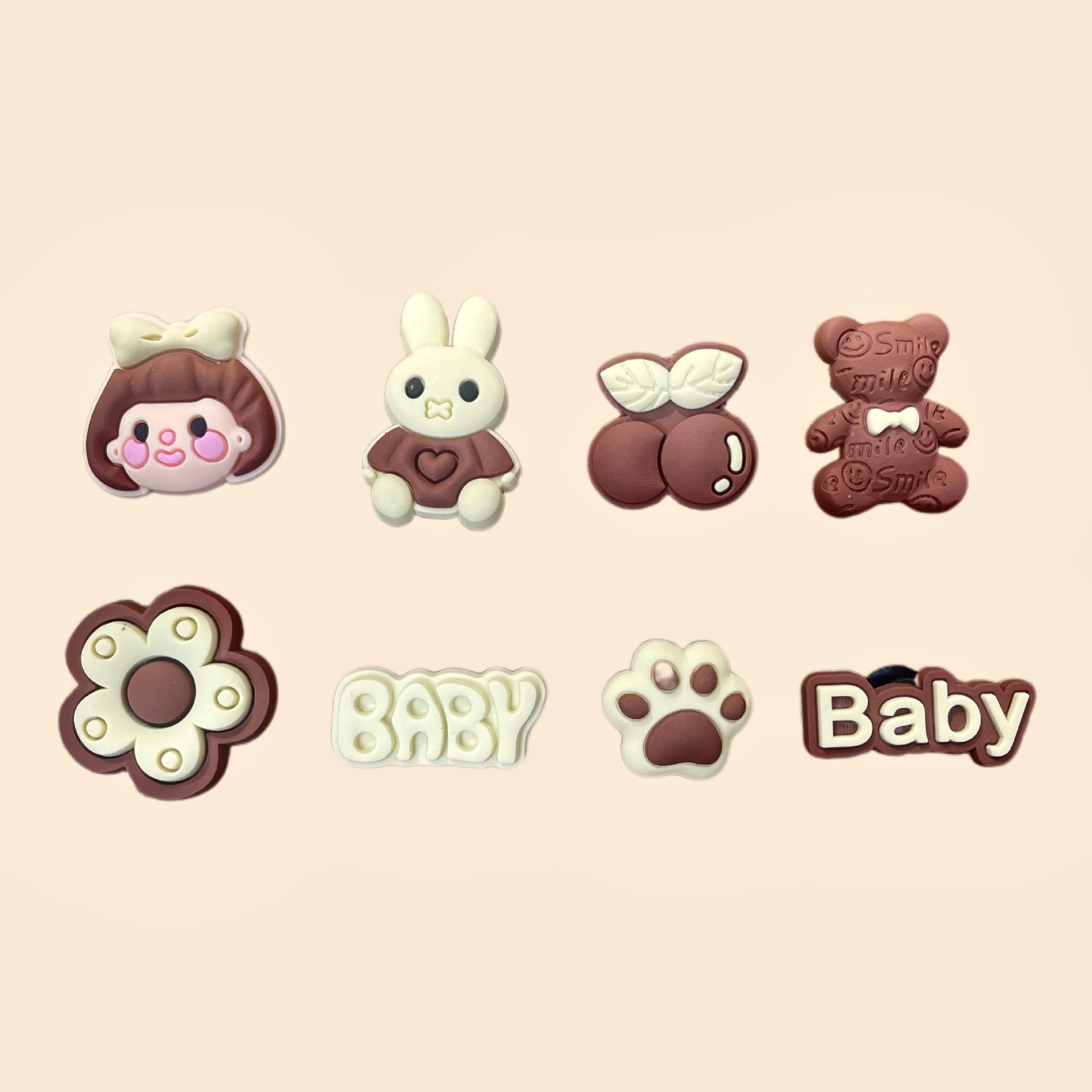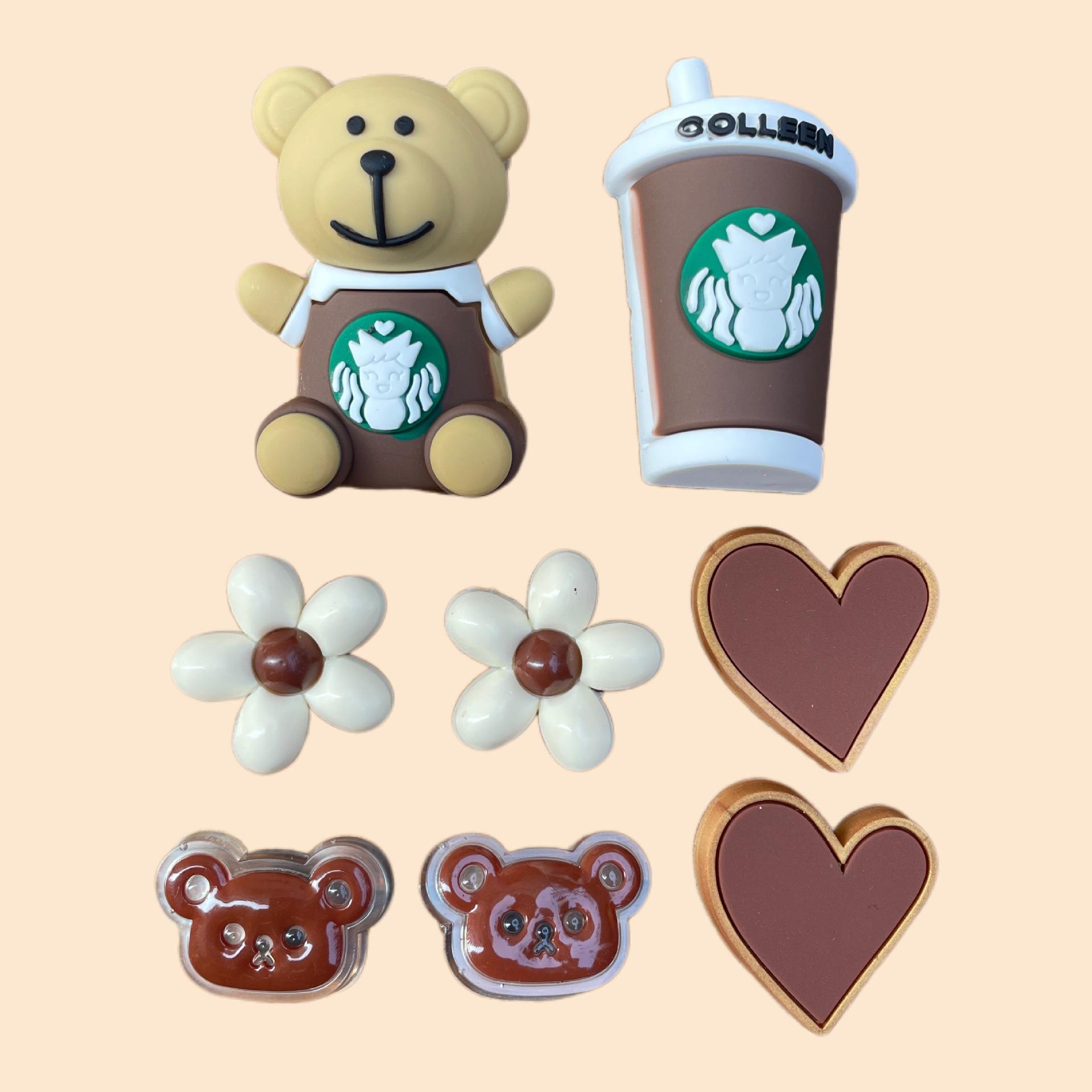 Big eyes [crocs accessories], A pair of coffee bears [shoe flowers], Coffee bear [shoe flower], Bubble mart ra...