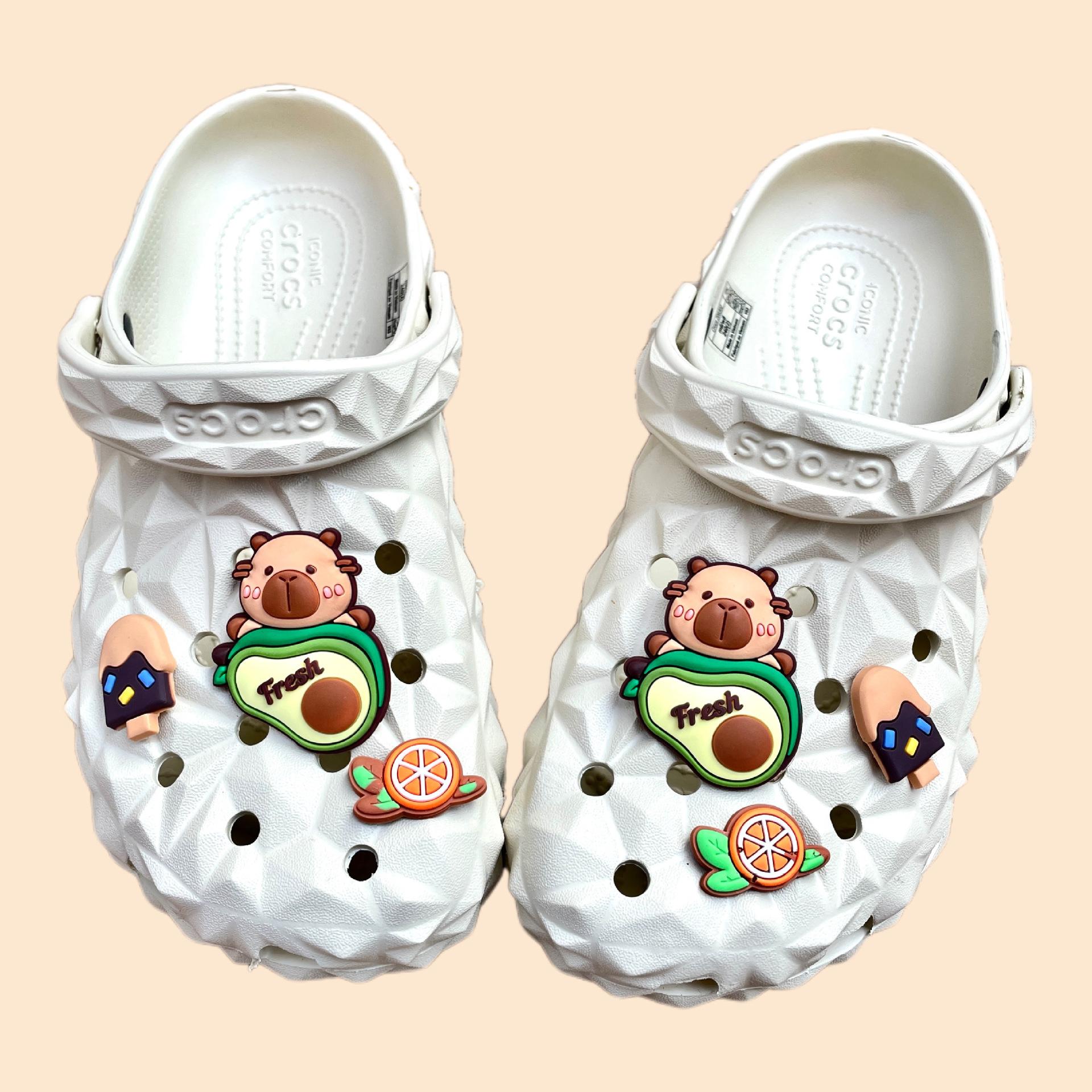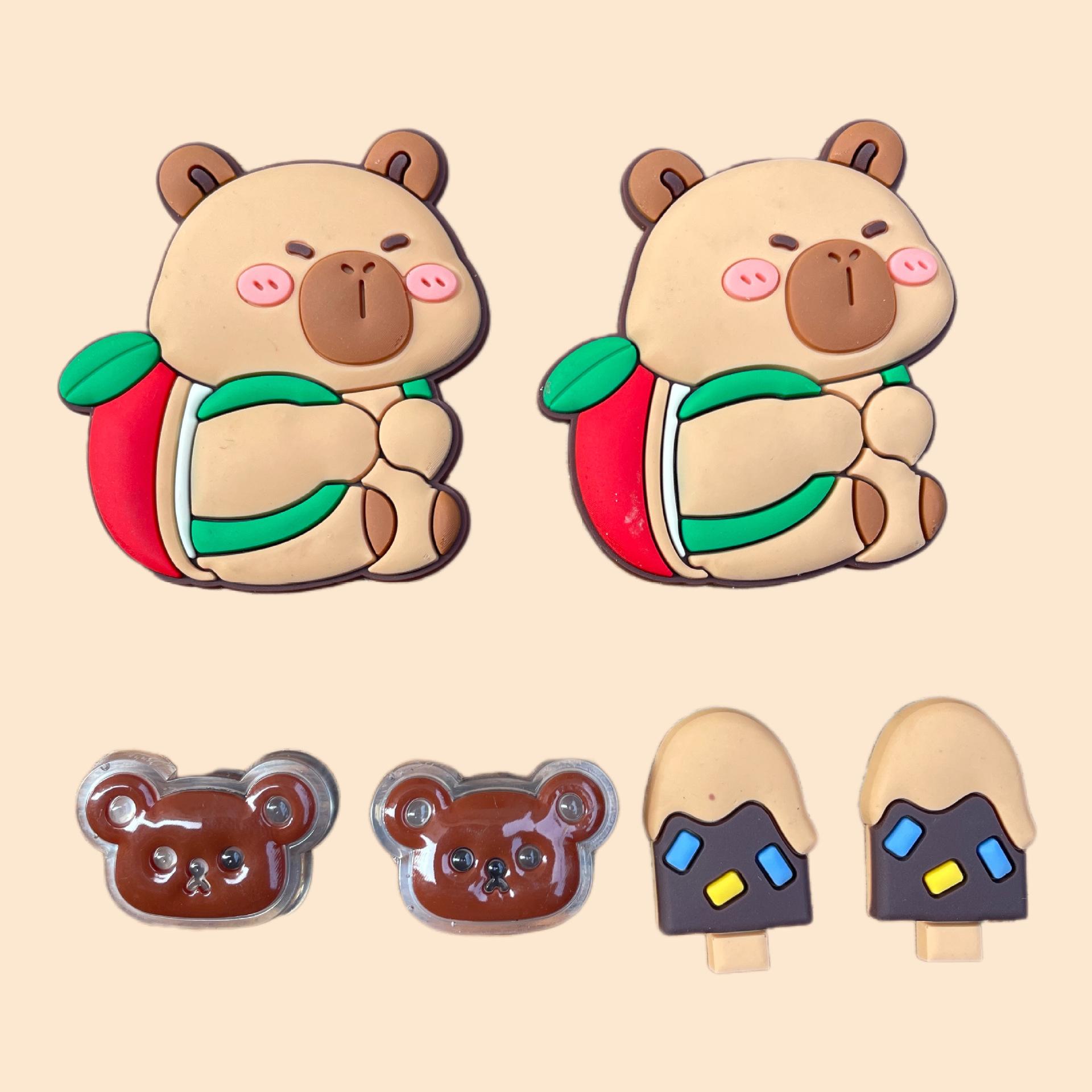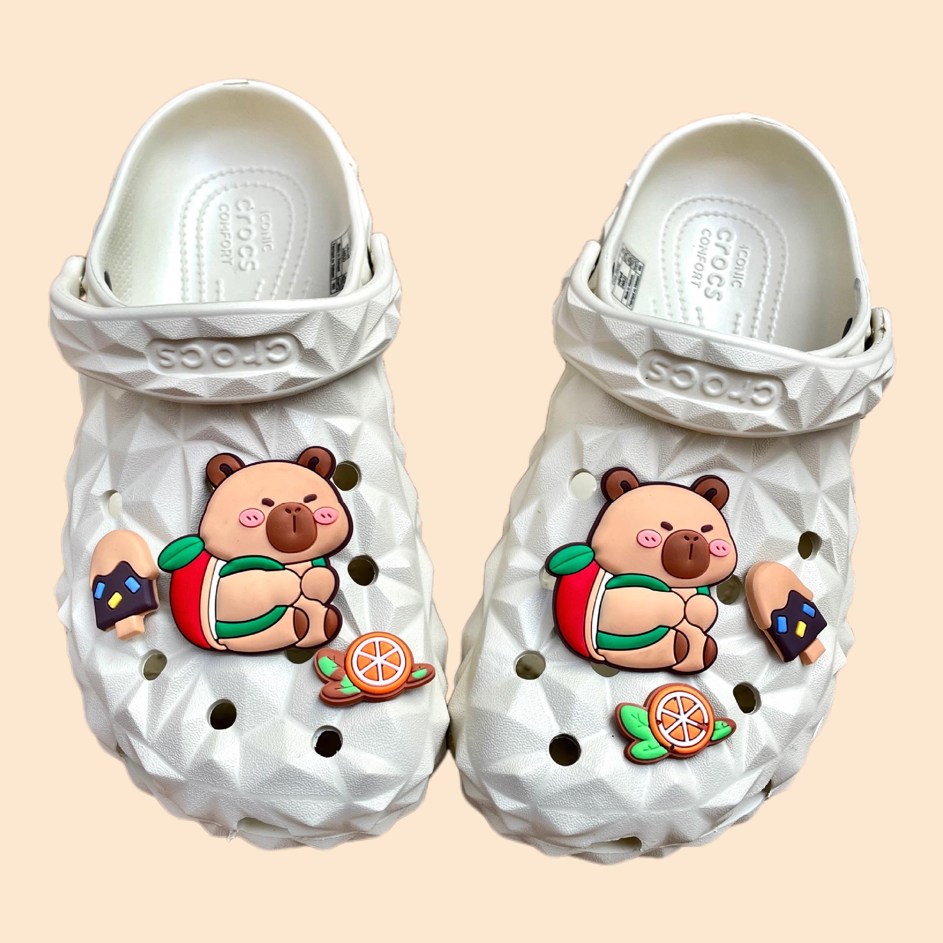 Big eyes [crocs accessories], A pair of coffee bears [shoe flowers], Coffee bear [shoe flower], Bubble mart ra...