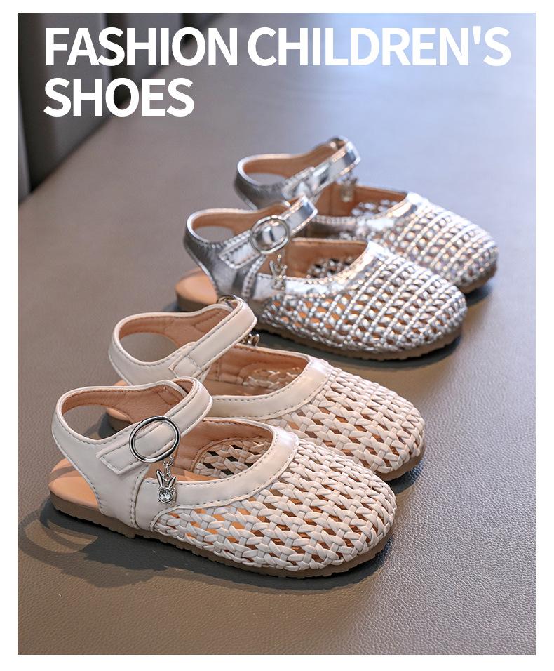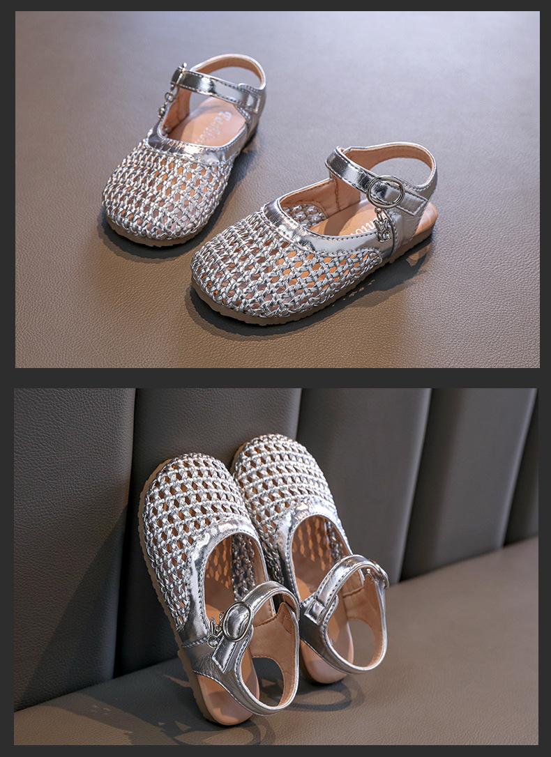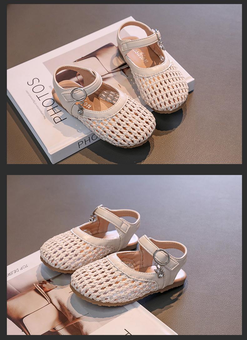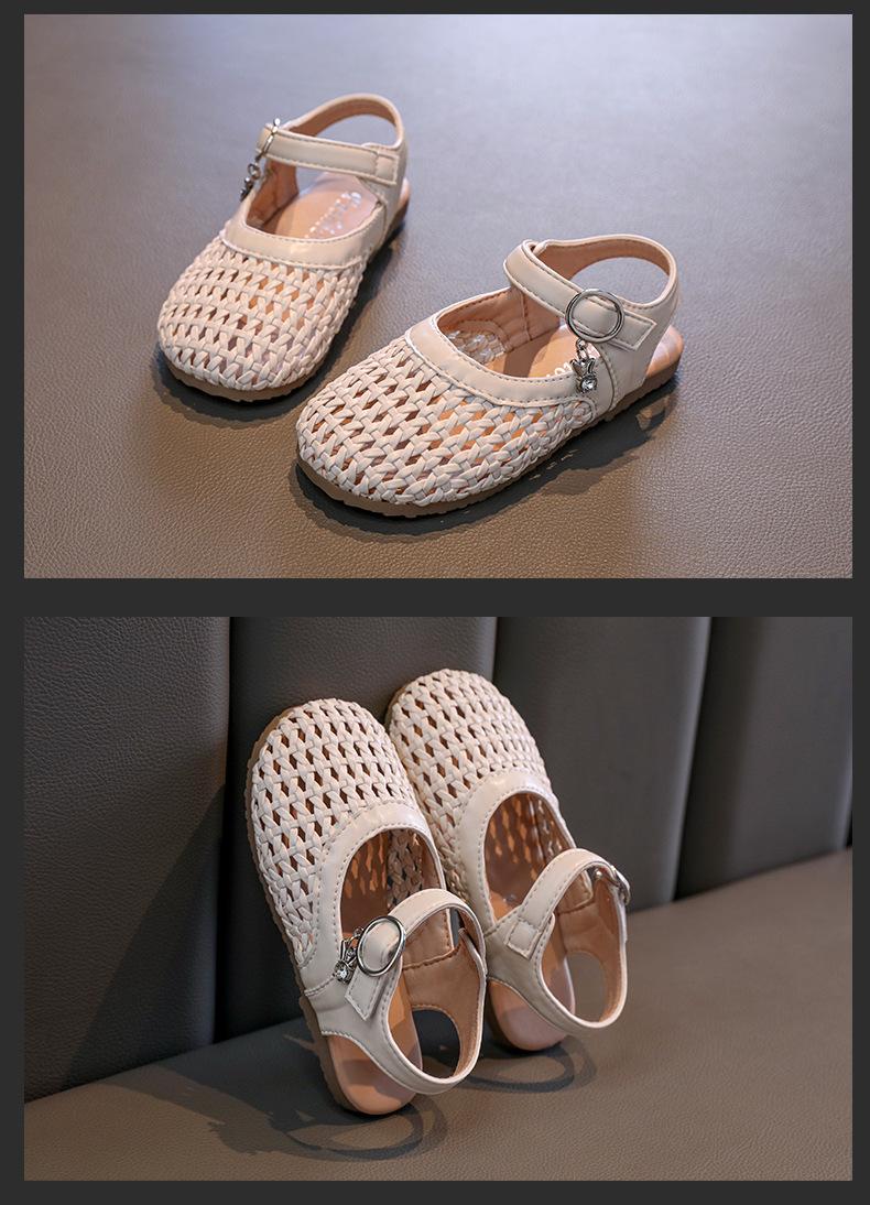 Zapatos de Princesa Tejidos de Verano 2025 para Niñas, Sandalias Lindas de Suela Suave para Bebé, Estilo Coreano, Nuevos Dedos, Zapatos de Playa para Niños