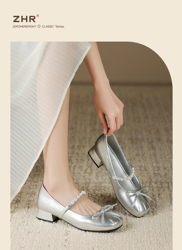 ZHR está lleno de zapatos Mary Jane 2025 nuevos zapatos de mujer Joker de temperamento zapatos de boca baja de perla de temperamento zapatos de mujer