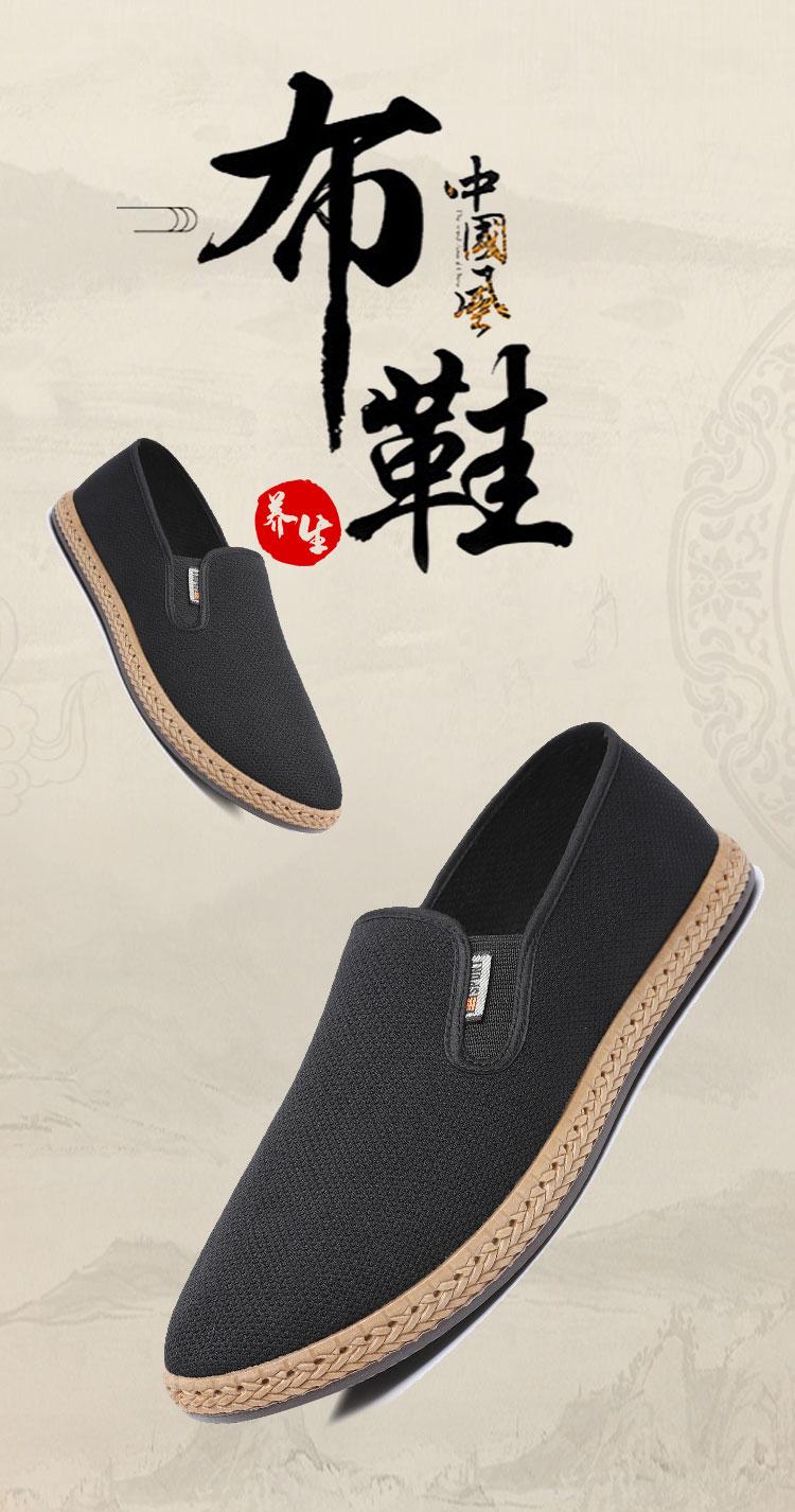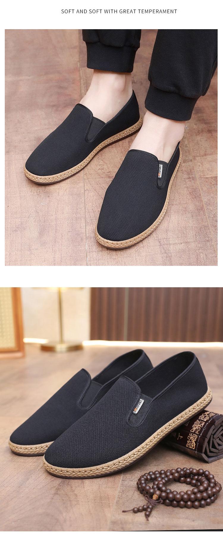 Zapatos de Tela de Pekín Antiguos Zapatos Planos para Hombre Transpirables Zapatos de Papá Ligeros Desodorantes Zapatos de Trabajo Slip-On Zapatos de Hombre