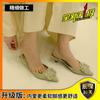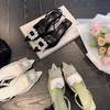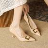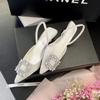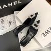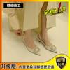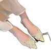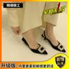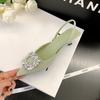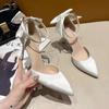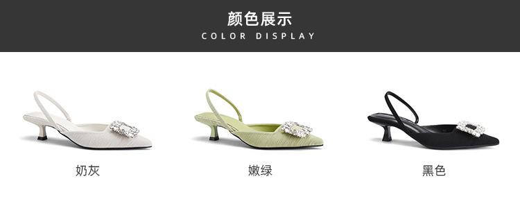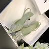 Flats de punta con hebilla cuadrada de pedrería para mujer con tacones medios delgados 2022 Verano Nuevo Estilo Sandalias de punta hueca para mujer con boca poco profunda