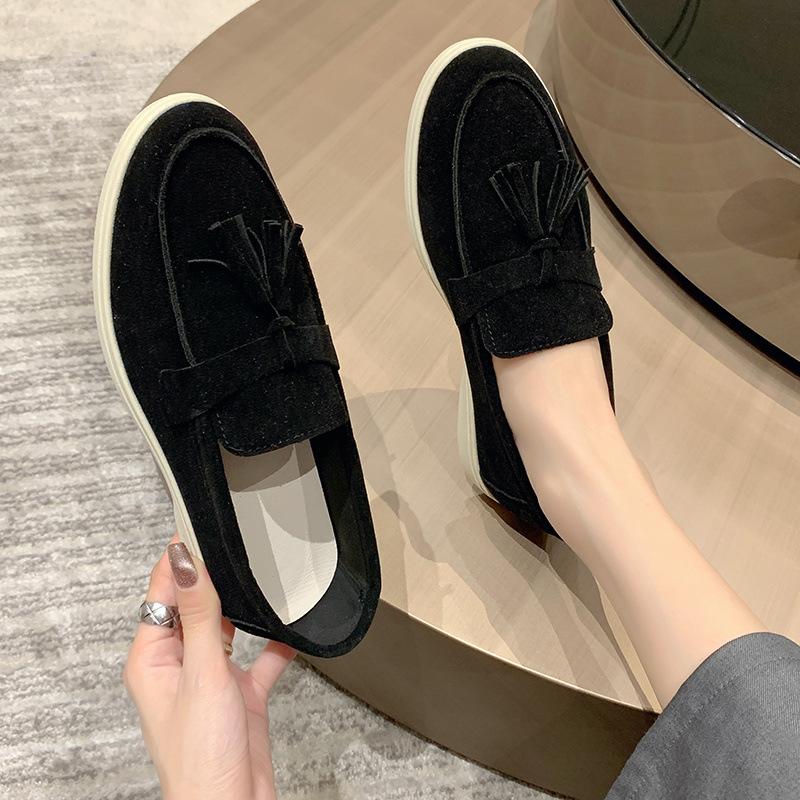 Talla 35-43 2025 Nuevos Mocasines de Moda Estilo Chanel 41 de Caña Baja Ligeros con Borlas Antideslizantes de Tacón Bajo