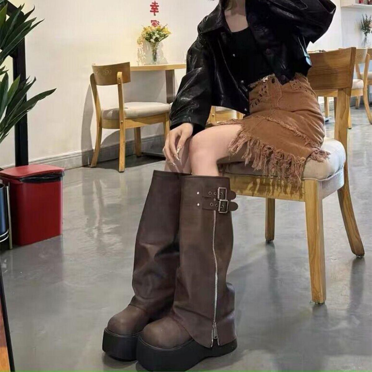 Botas Pantalón de Suela Gruesa, Botas Altas Slim hasta la Rodilla, Botas Populares Nuevas de Otoño e Invierno 2025, Botas de Caballero Western para Mujer