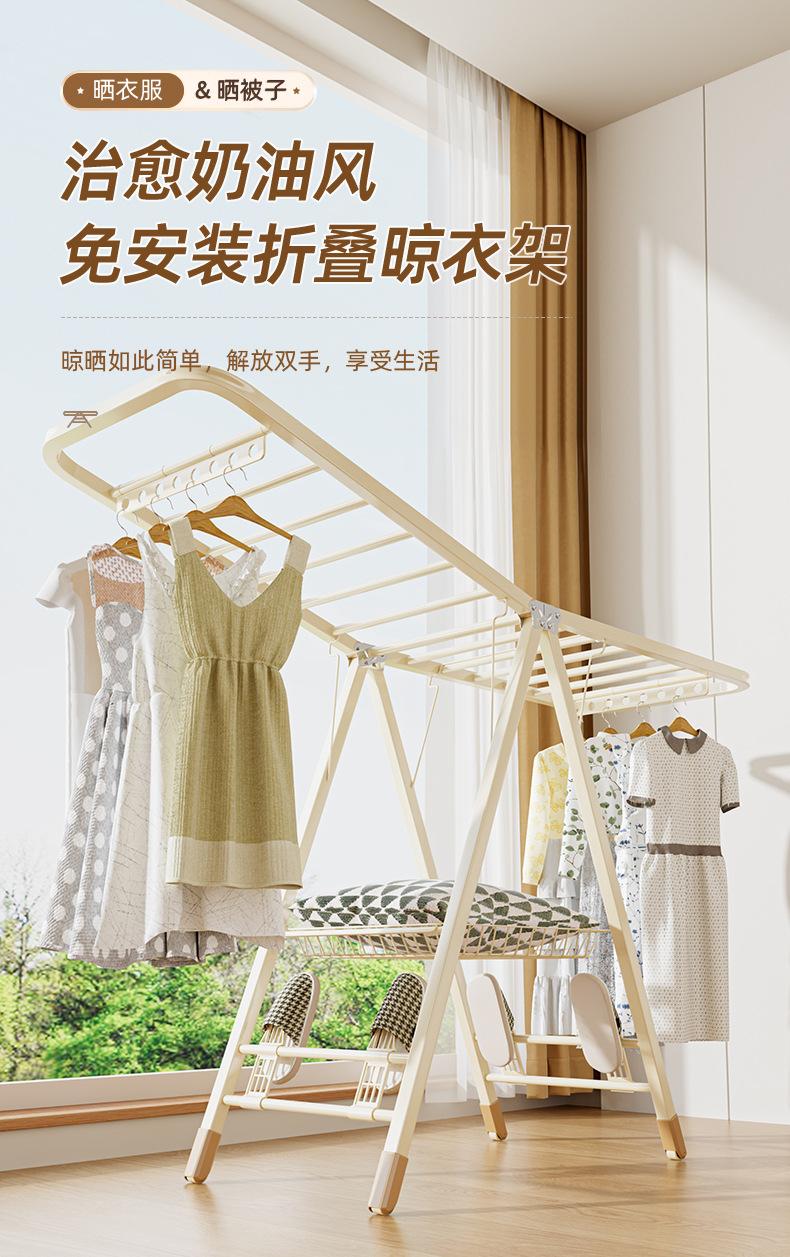 Tendedero plegable para el suelo, para el hogar, dormitorio, balcón, interior, para ropa de bebé, con varilla para secar colchas.