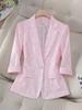 Chaqueta de traje informal de manga corta con cuello de siete puntos para mujer, estilo profesional, de manga corta, 2025, 8961