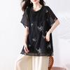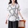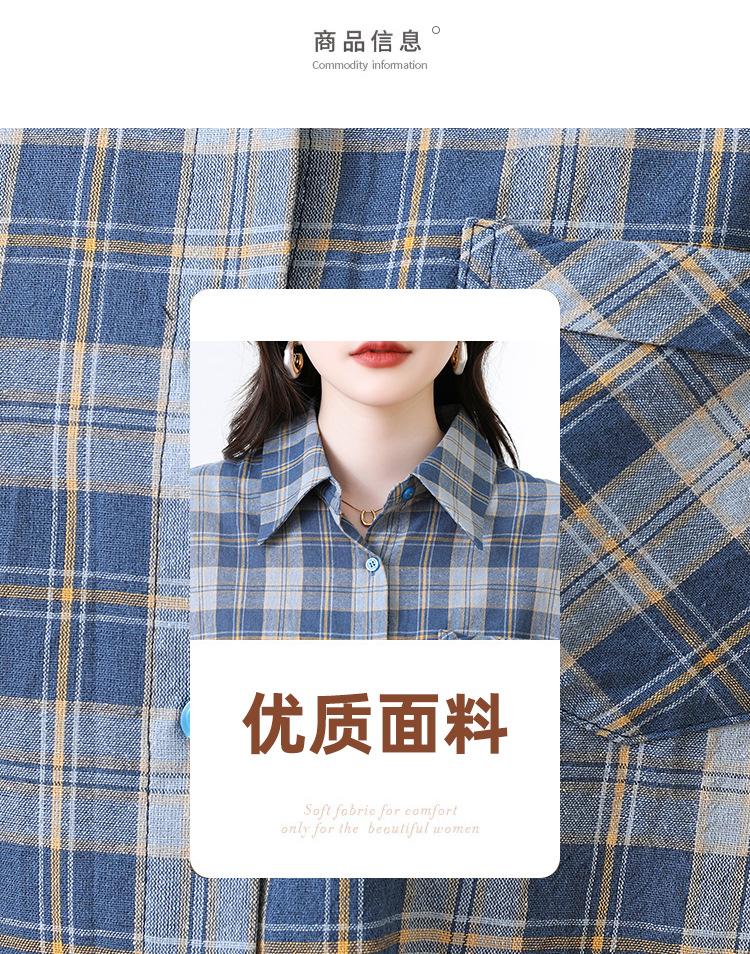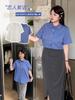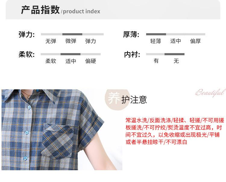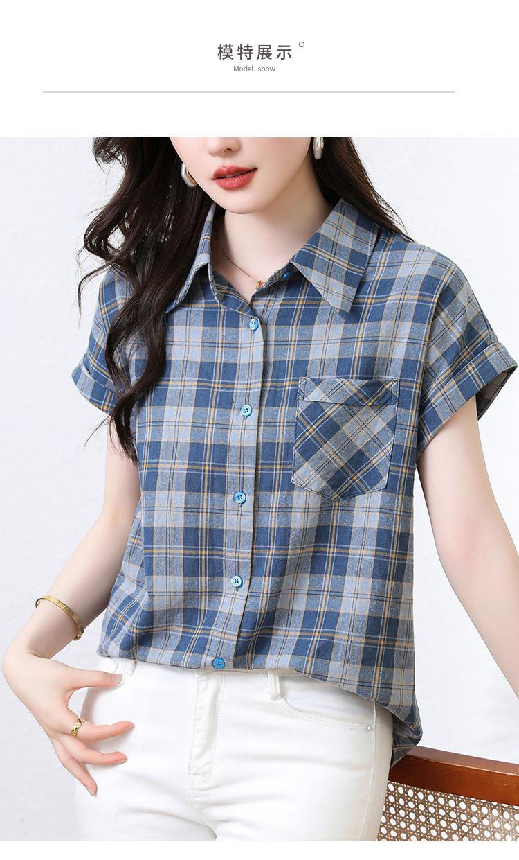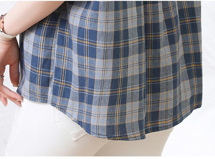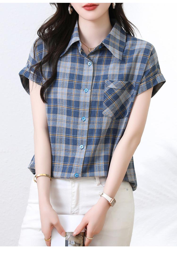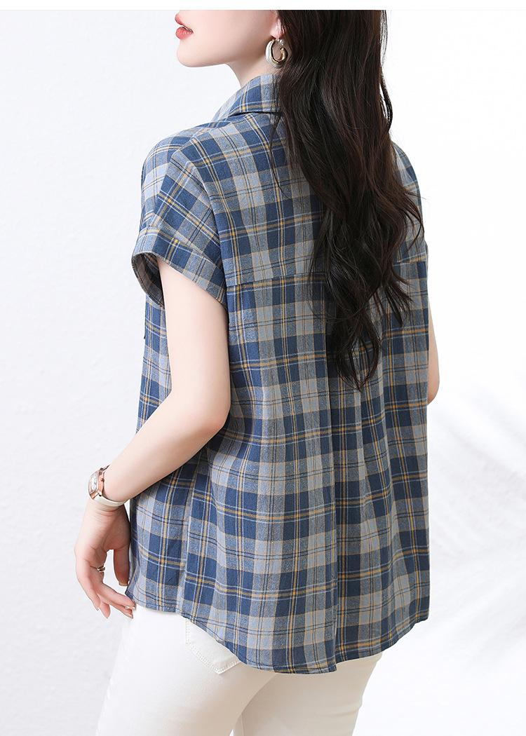 Camisa de cuadros azules de tiro real para mujer de manga corta 2025 verano nueva mujer talla grande camisa holgada top