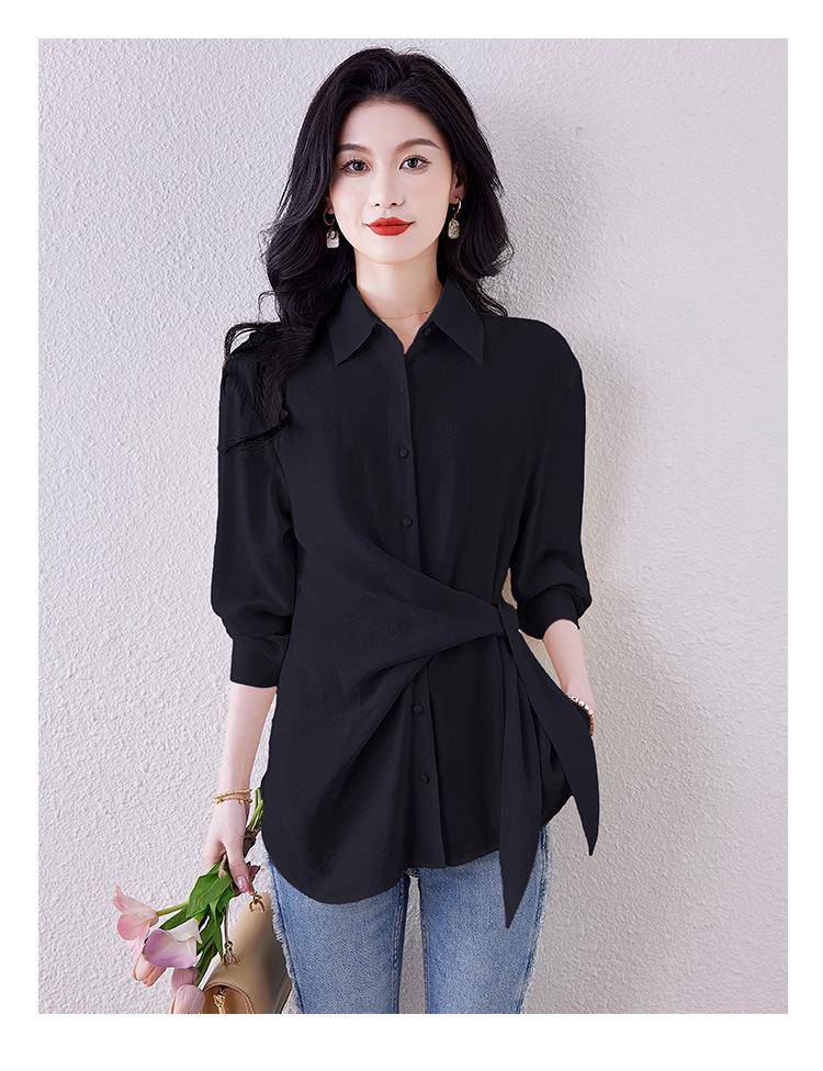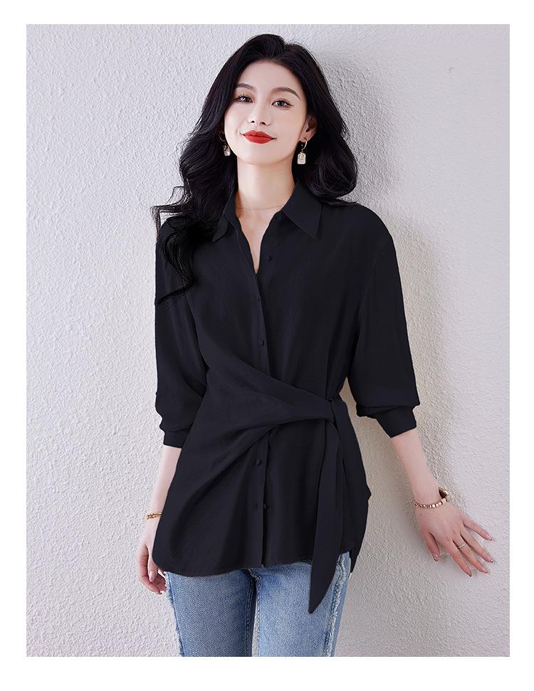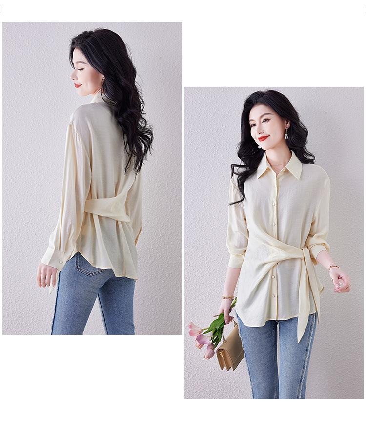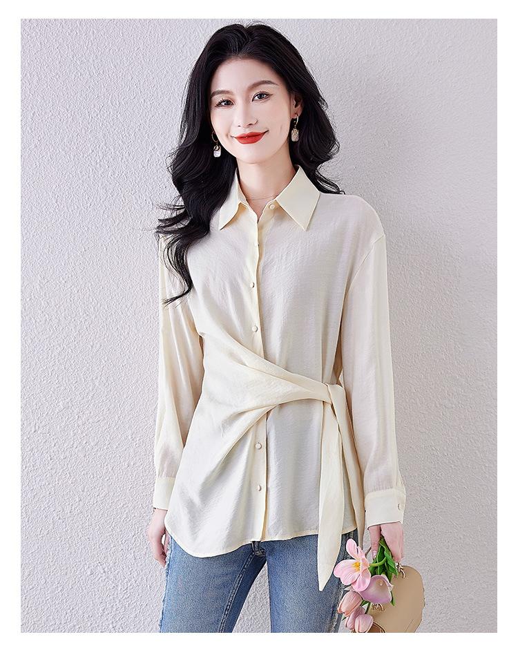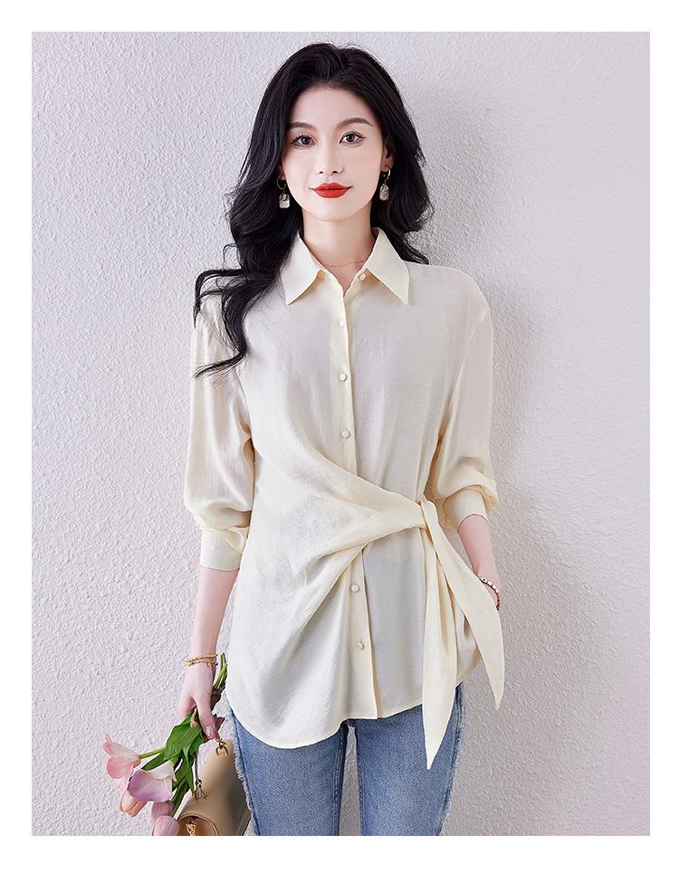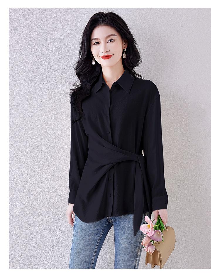 Camisa de Manga Larga con Tirantes Franceses para Mujer Primavera 2025 Diseño Delgado Holgado Camisa Irregular Top Elegante