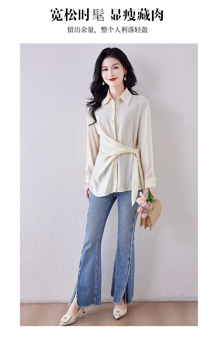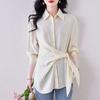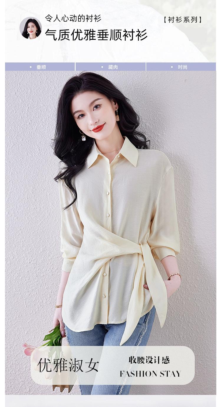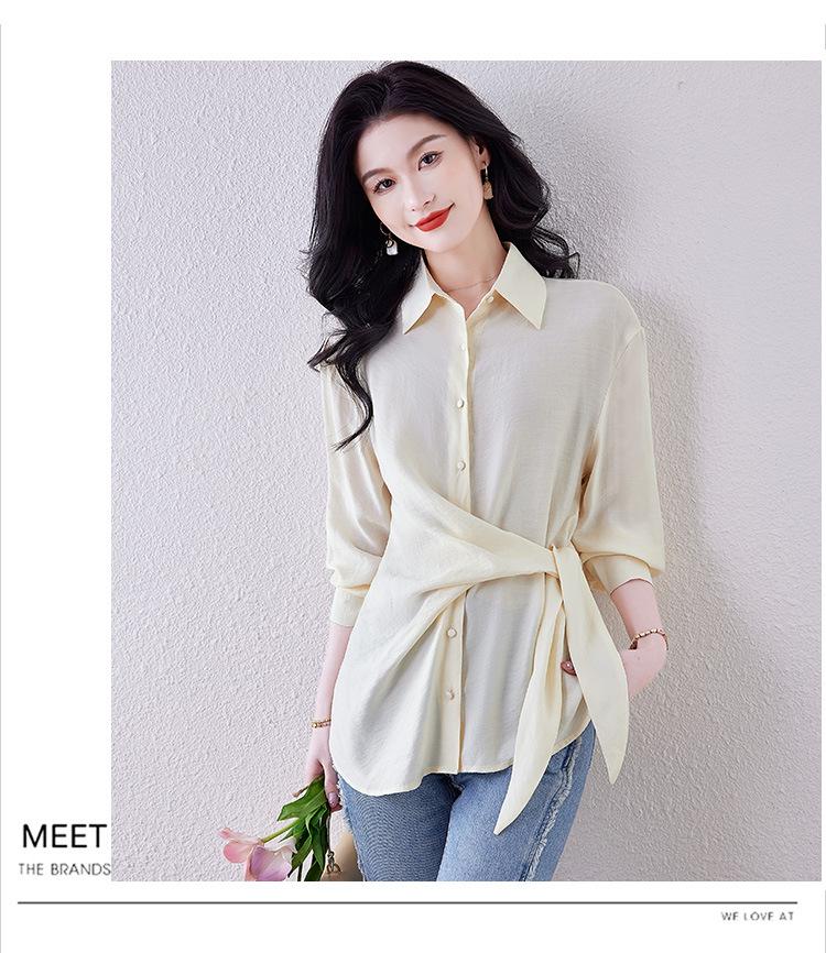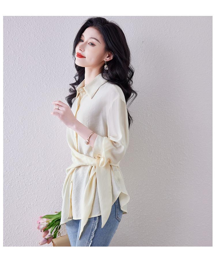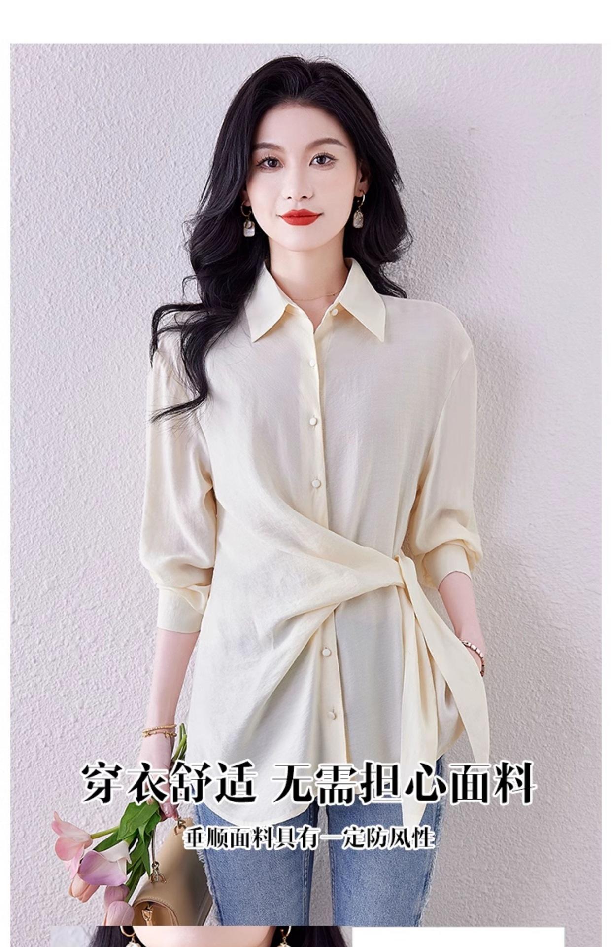 Camisa de Manga Larga con Tirantes Franceses para Mujer Primavera 2025 Diseño Delgado Holgado Camisa Irregular Top Elegante
