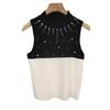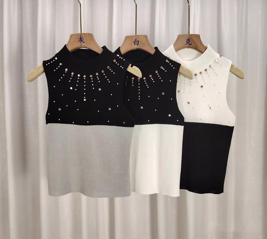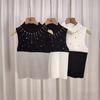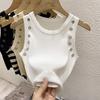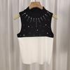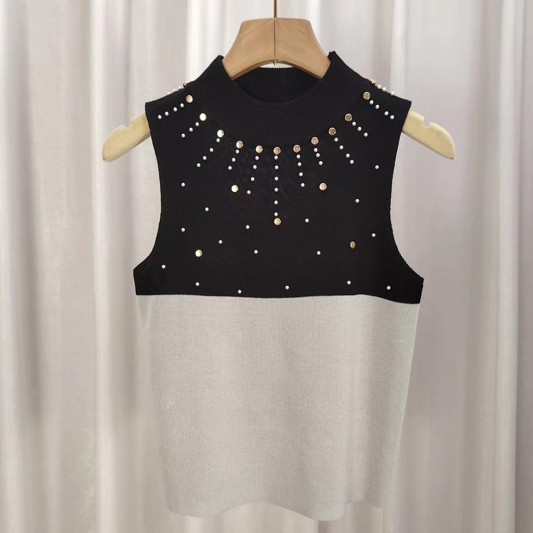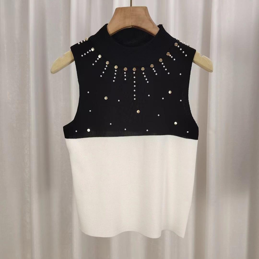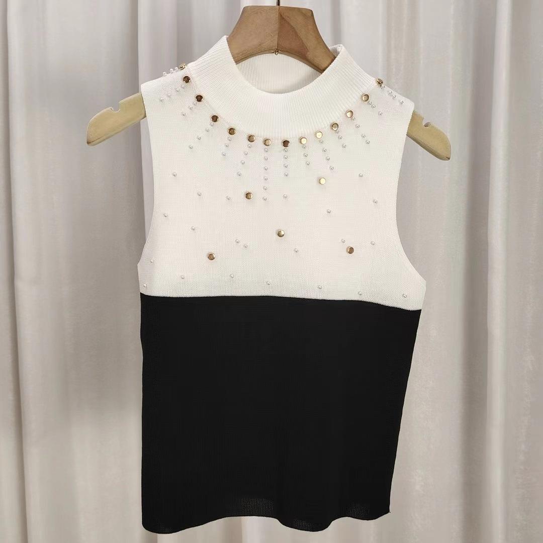 Chaleco de punto para mujer, novedad de verano 2024, cintura ajustada, cuello redondo, top francés sin mangas con cuentas de calidad industrial pesada