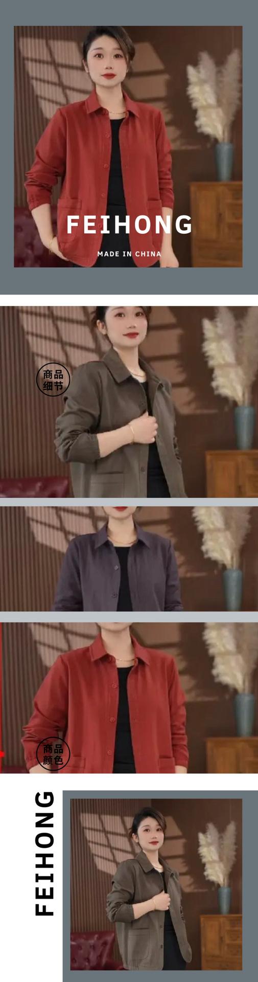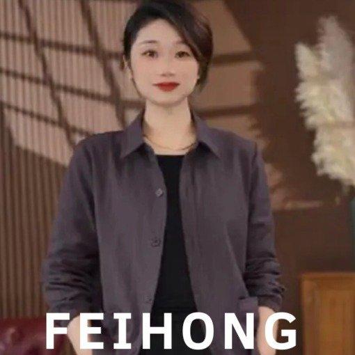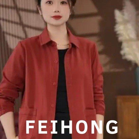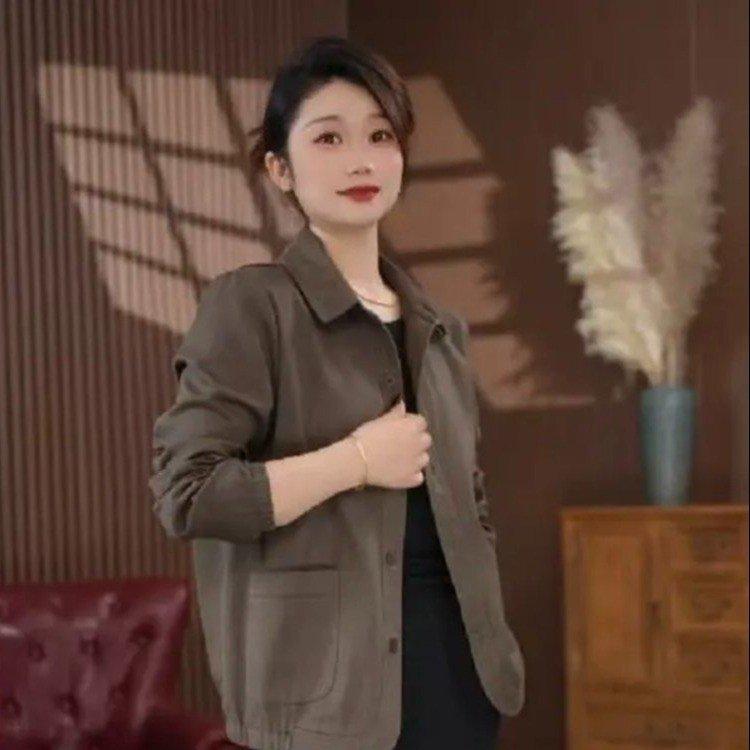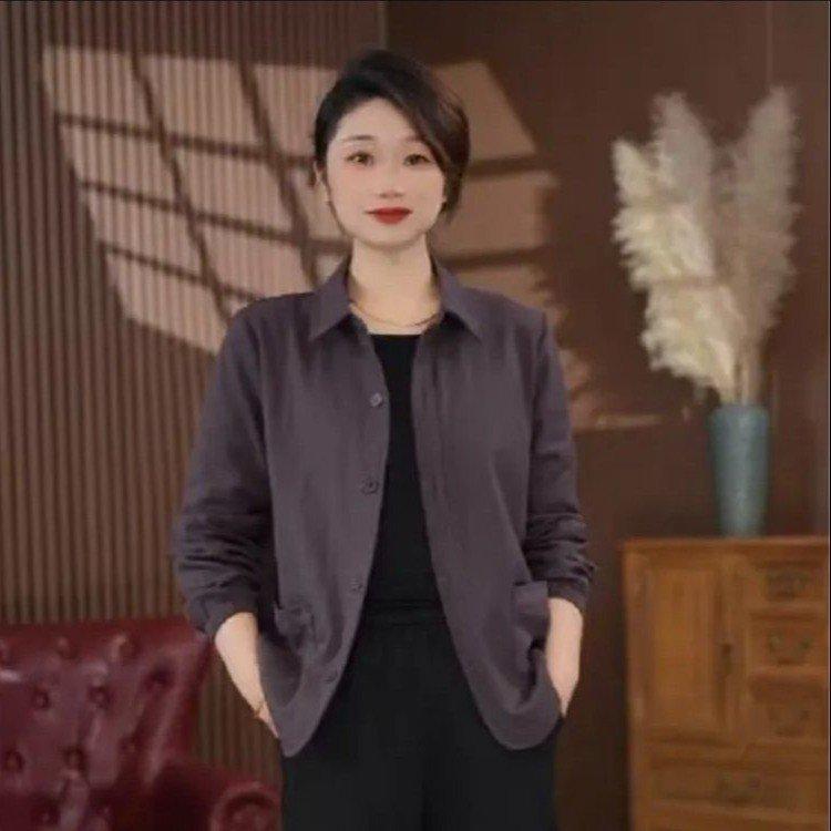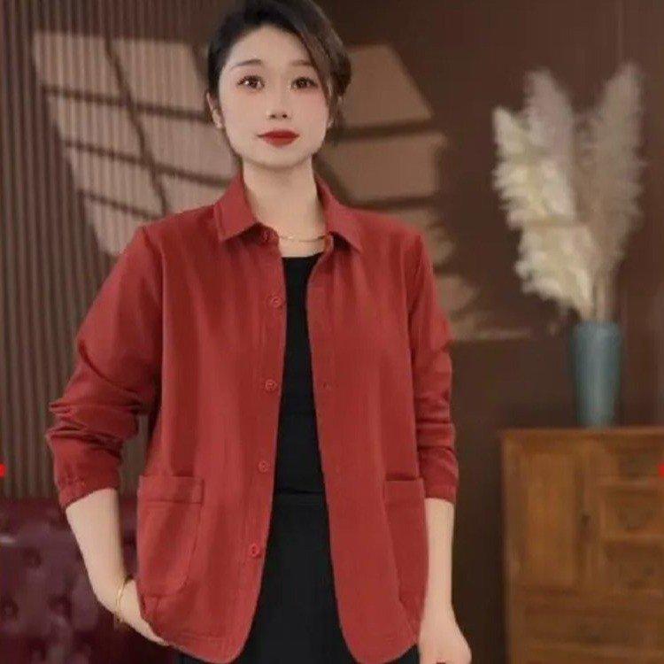 Una generación de abrigo de solapa de color sólido para madre de manga larga para mujer 2025 primavera y otoño nueva chaqueta camisa casual top