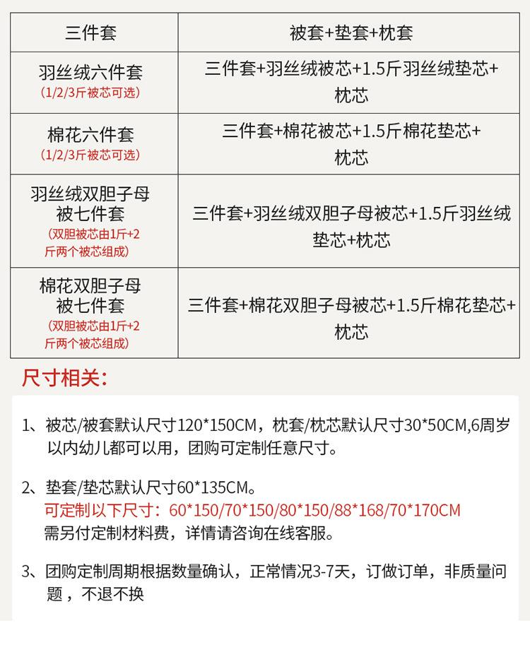 Juego de edredón de tres piezas para jardín de infantes con núcleo de seis piezas, edredón de algodón puro de clase A para la siesta de los niños, ropa de cama para bebé
