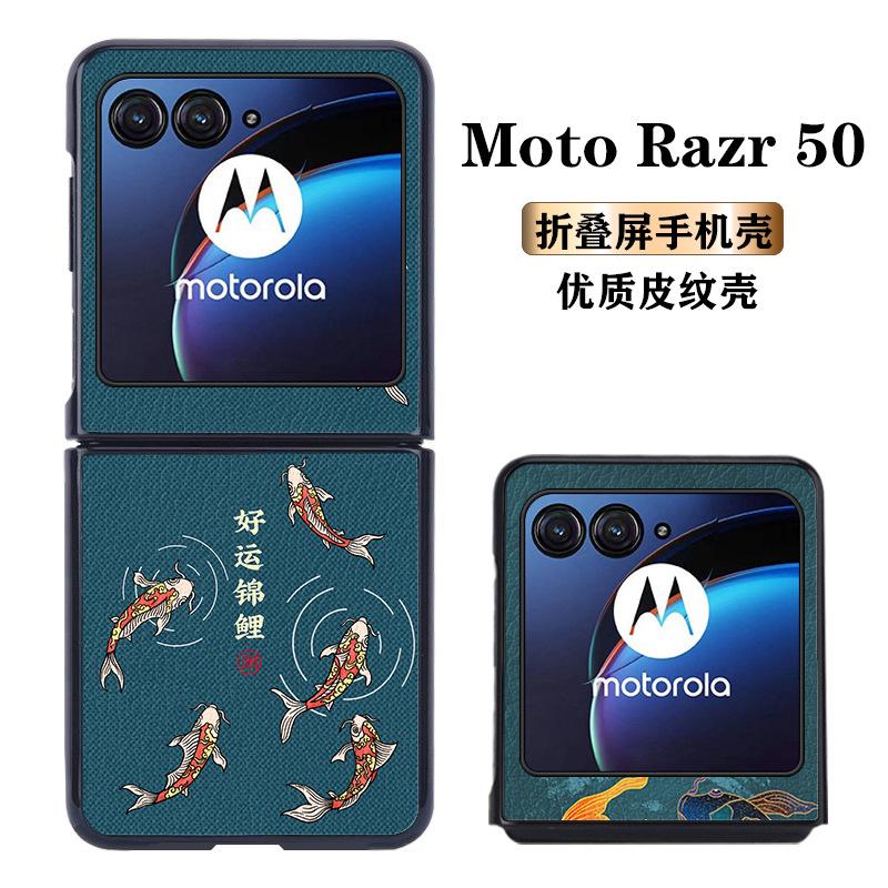 Adecuado para Funda de Teléfono Motorola Razr50 Patrón de Cuero Funda Protectora razr6ultra Servicio Creativo Marea Nacional Koi