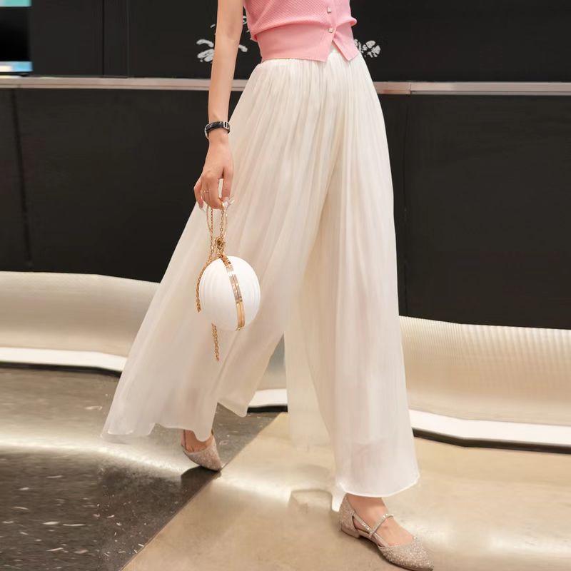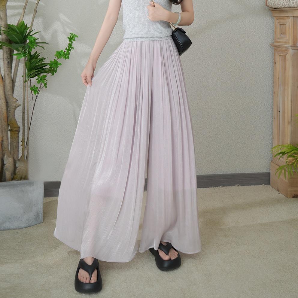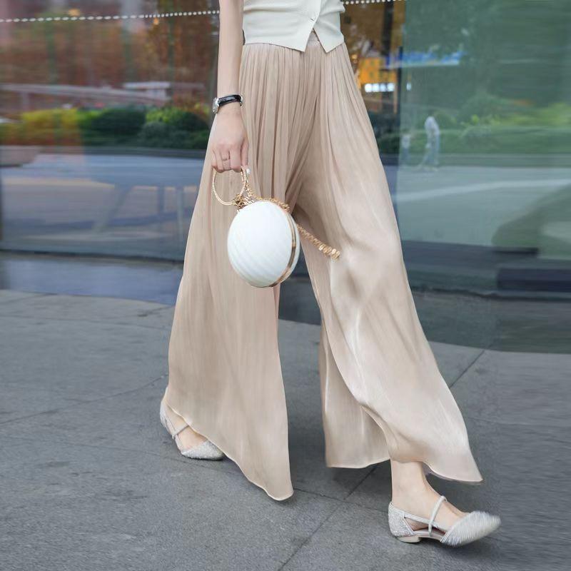 Pantalones de pierna ancha de aspecto entallado de seda helada con hilo glaseado de verano 2025, nuevo estilo, pantalones de cintura alta con temperamento, pantalones holgados de pierna ancha y finos.