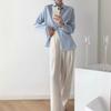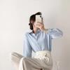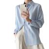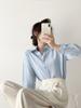 Camisa Francesa de Rayas Azul Claro para Mujer Manga Larga Primavera y Verano 2025 Nueva Textura Nicho Chic Commuter Casual Top