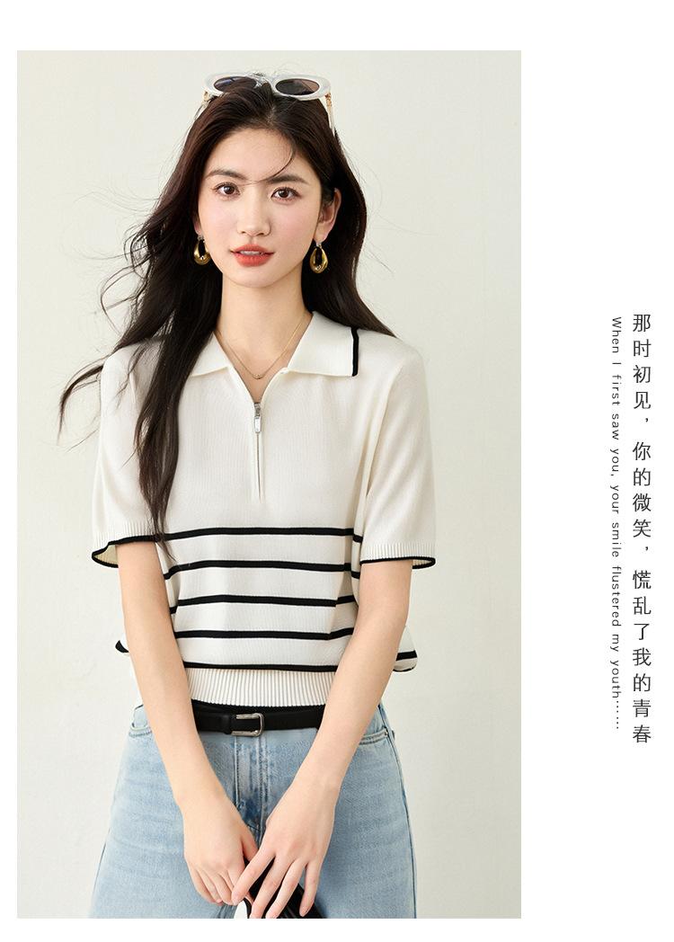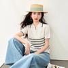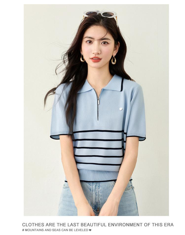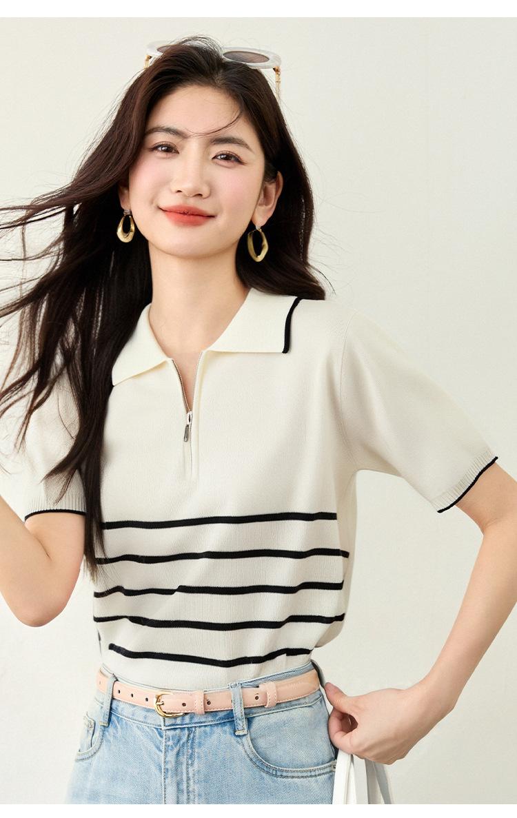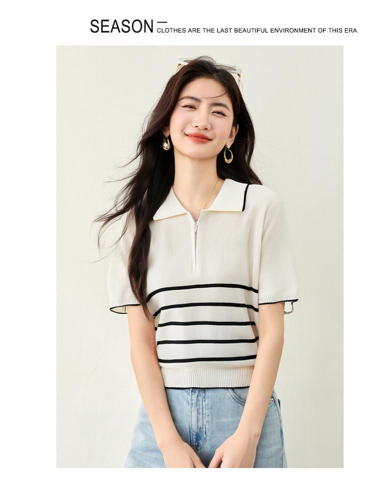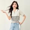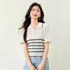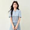 Top de punto de manga corta con cuello tipo polo, diseño informal, a rayas, sencillo, estilo coreano, para mujer, verano 2025