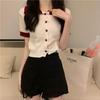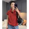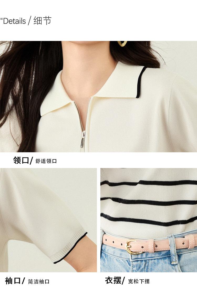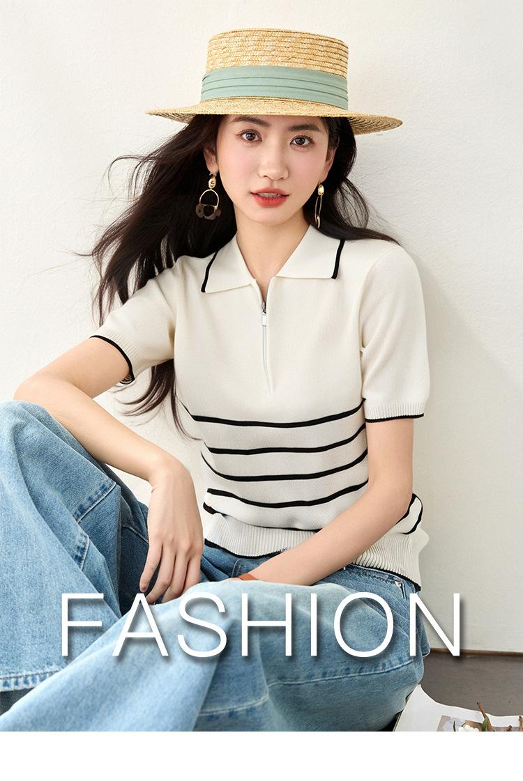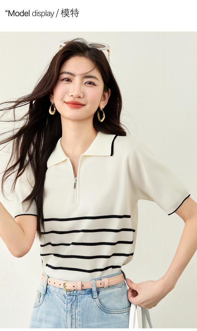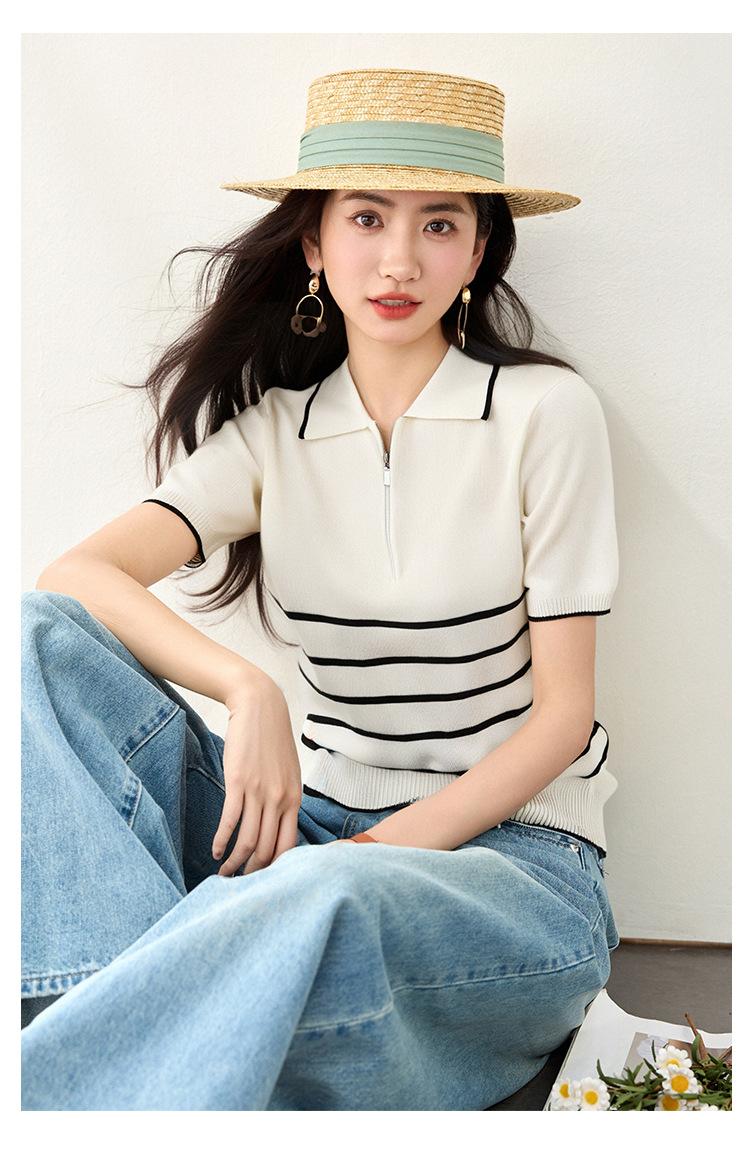 Top de punto de manga corta con cuello tipo polo, diseño informal, a rayas, sencillo, estilo coreano, para mujer, verano 2025