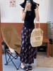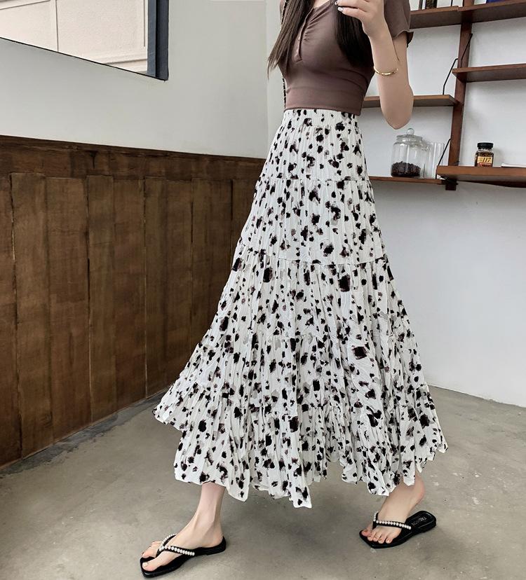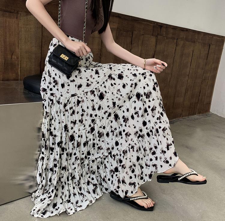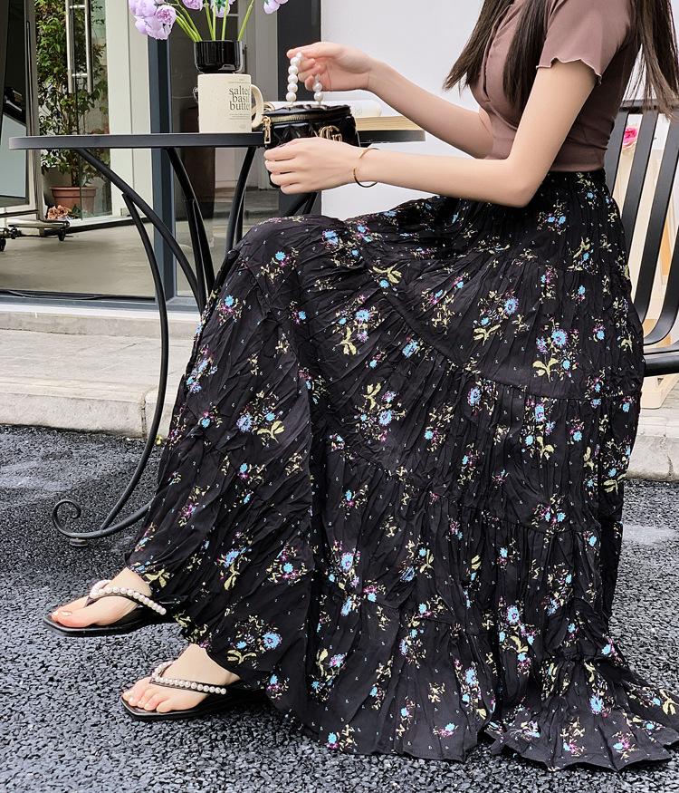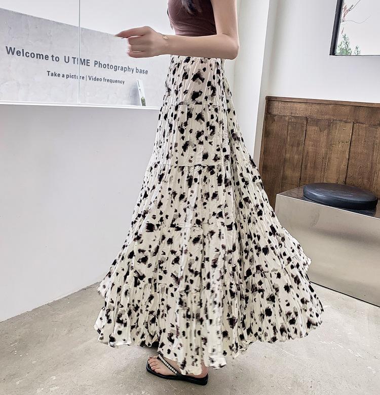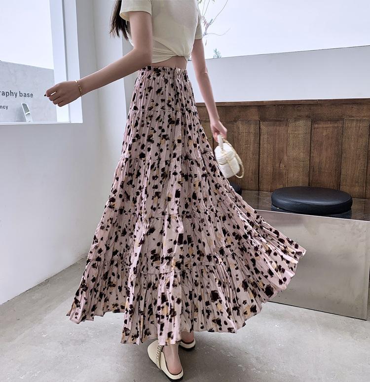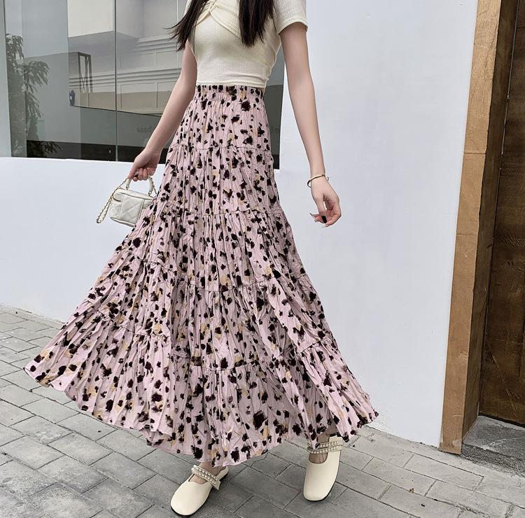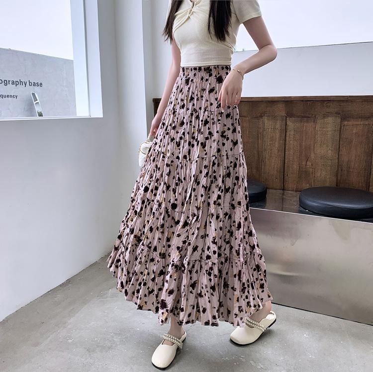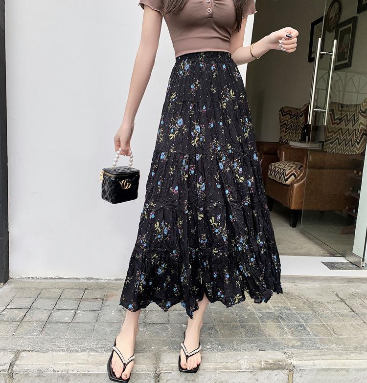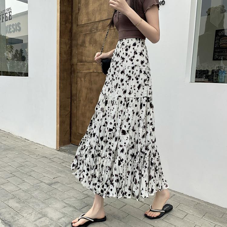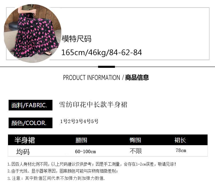 Falda midi plisada estilo francés retro con costuras florales de gran vuelo en chifón estampado plisado de cintura alta falda larga 2024