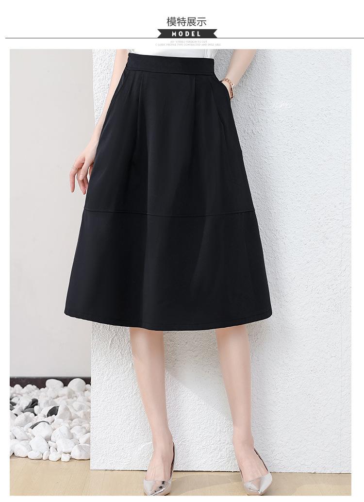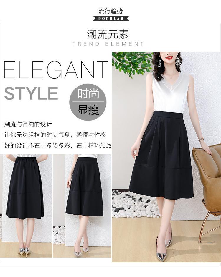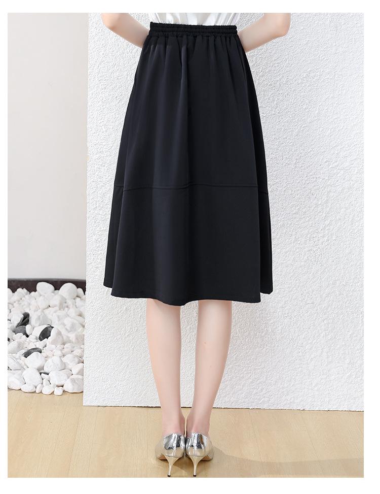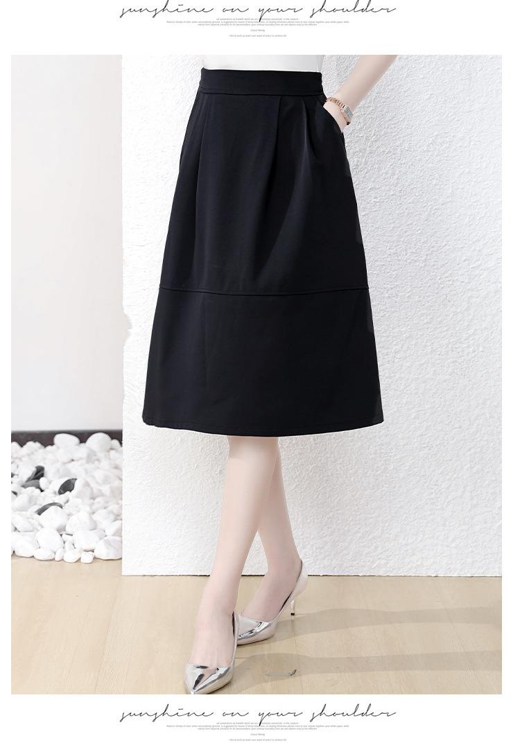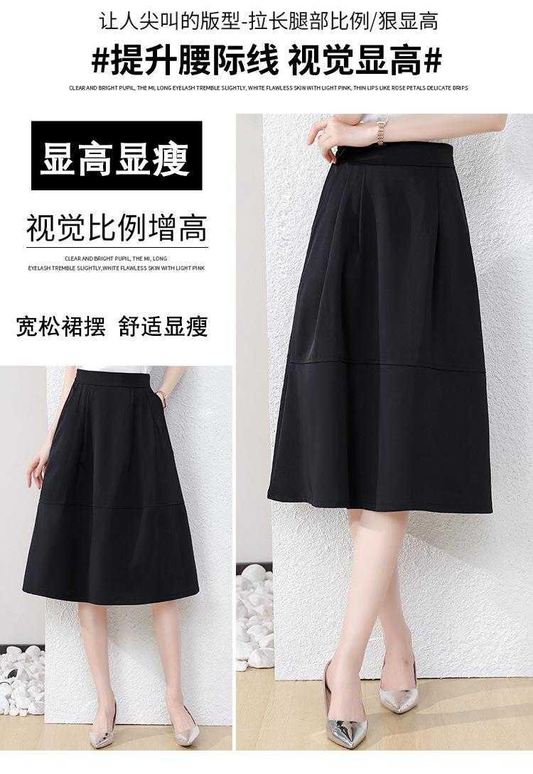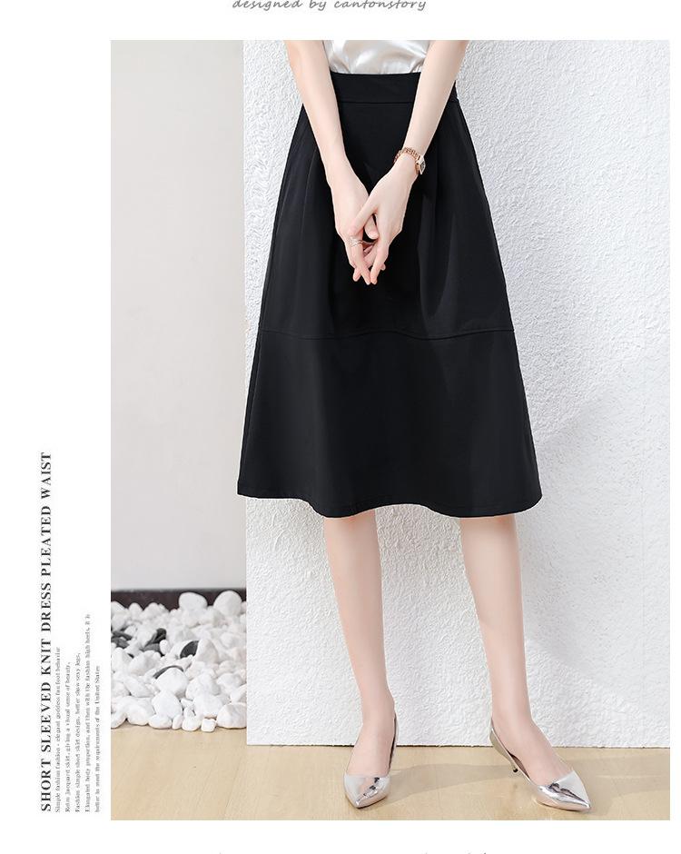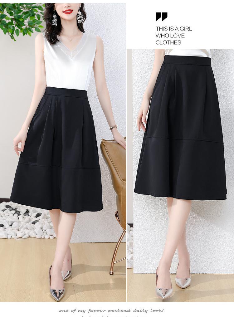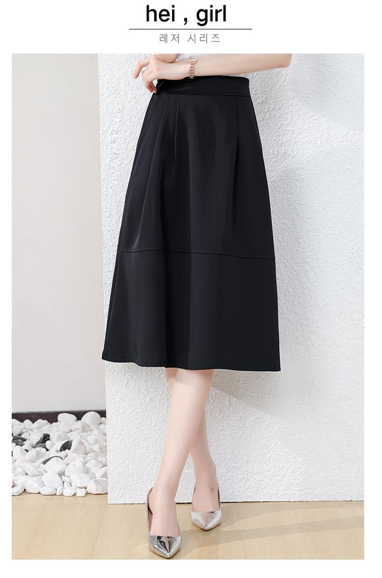 Falda midi negra elegante y suave para mujer, estilo verano 2025, con corte a la cadera, a la moda