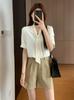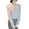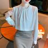 Camisa de Satén de Manga Larga con Cuello Redondo con Cuentas para Mujer Otoño 2024 Nueva Versátil y Elegante Camisa Pequeña de Mujer Top de Gasa