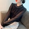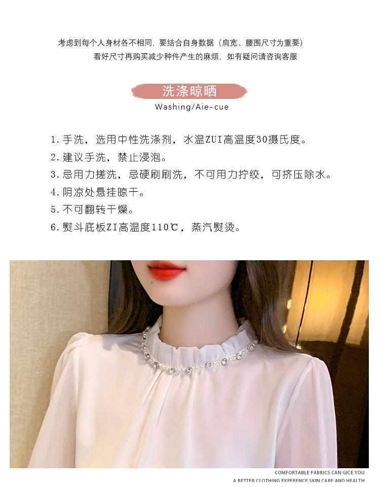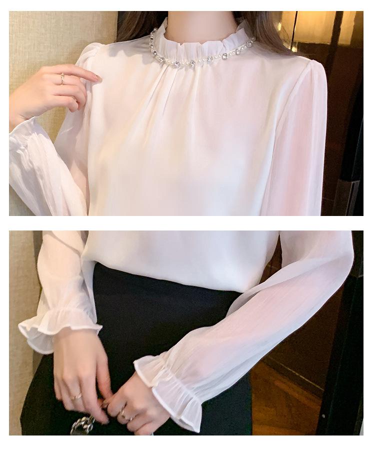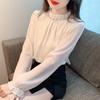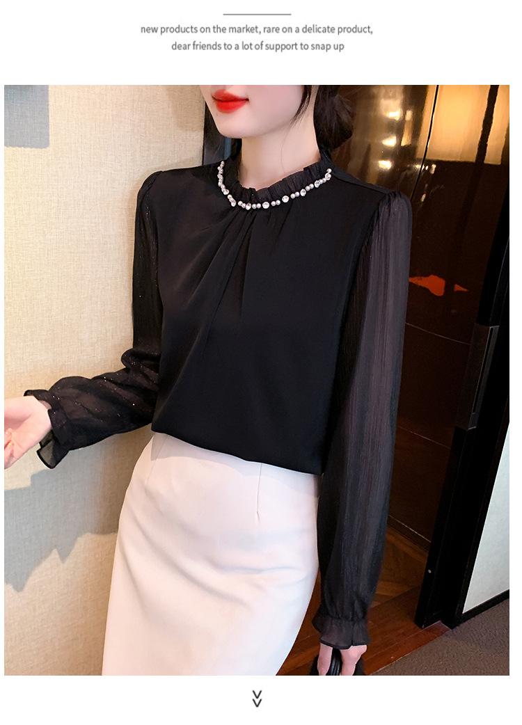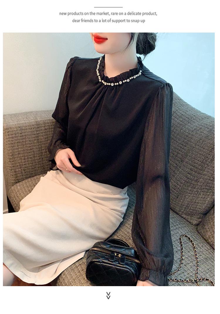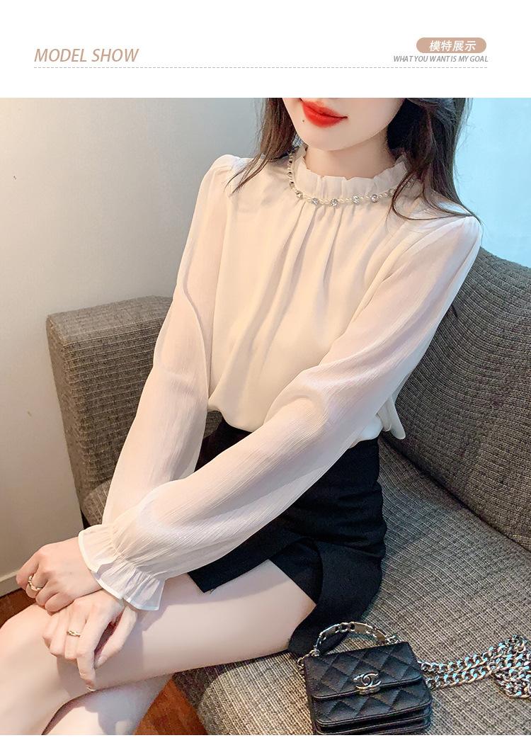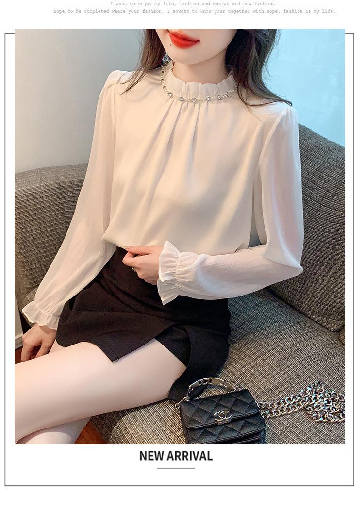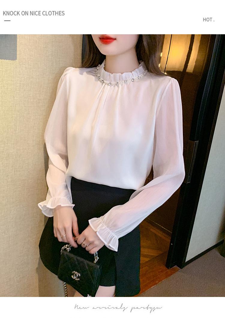 Camisa Francesa para Mujer Camisa de Chifón de Bajo Alto 2024 Otoño Nuevo Top de Cuello Alto Camisa Básica con Cuentas con Camiseta Interior