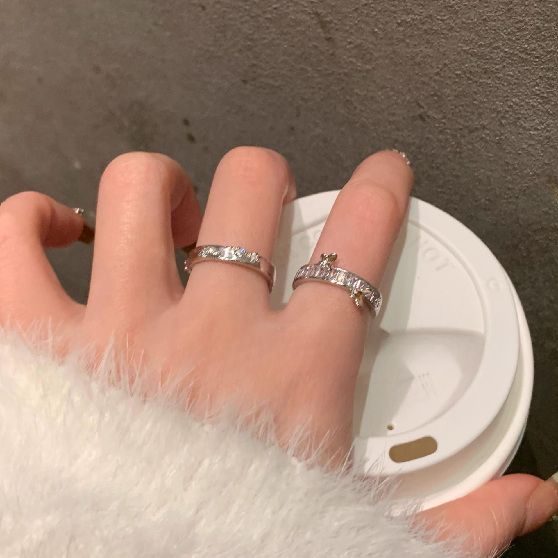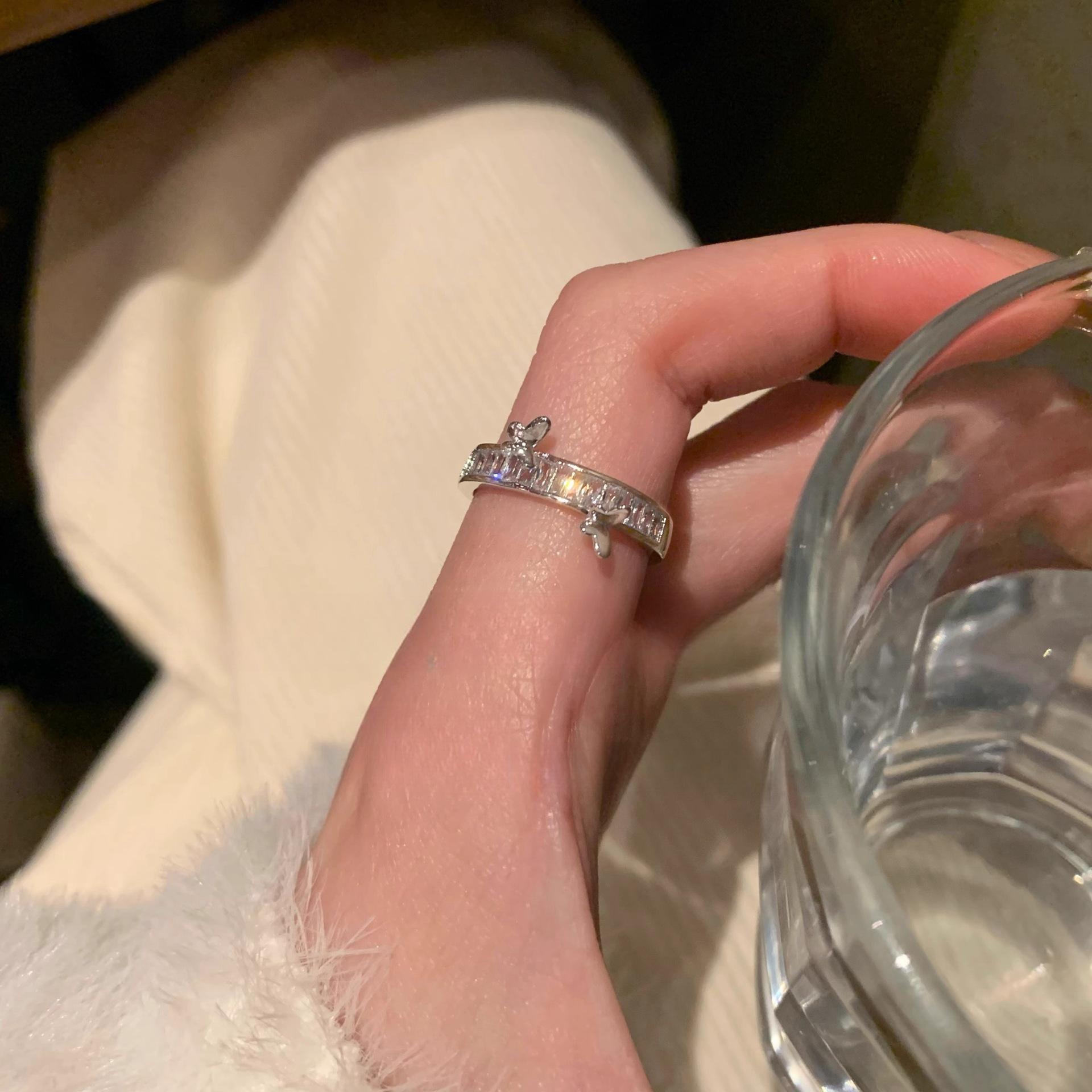 Anillo de Color Plata de Lujo Ligero Anillo de Mariposa de Zircón Anillo de Moda Elegante de Estilo Frío para Mujer Pulsera de Dedo Índice Abierta de Moda