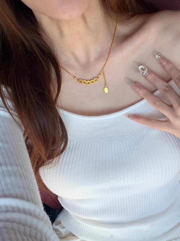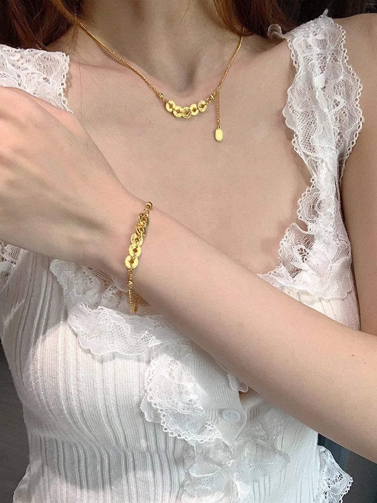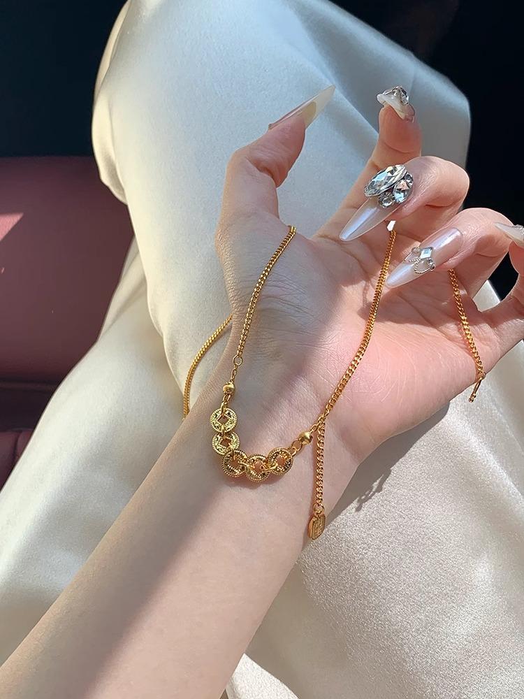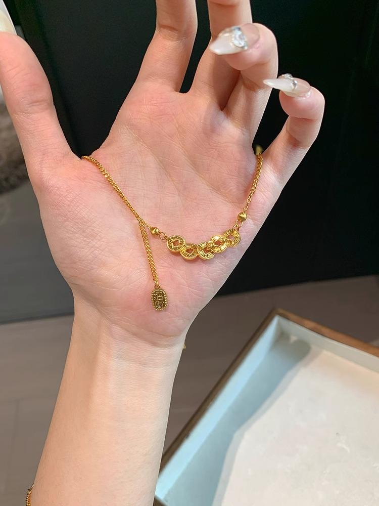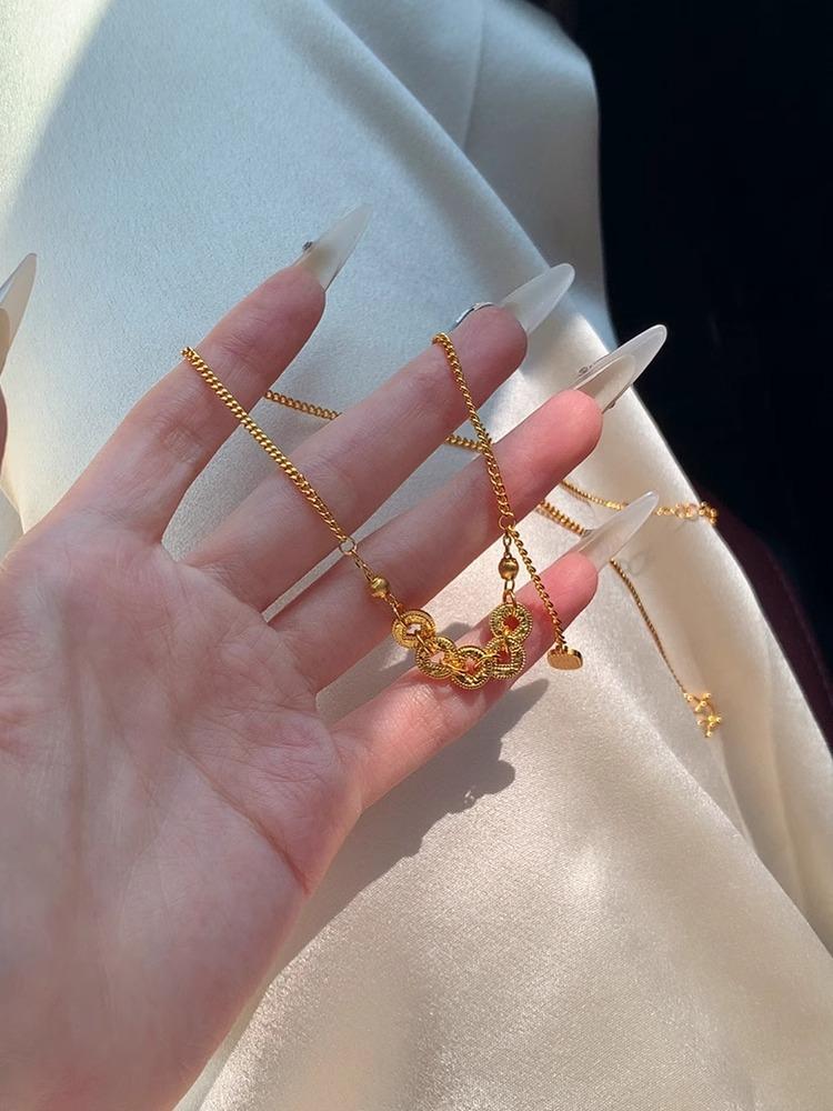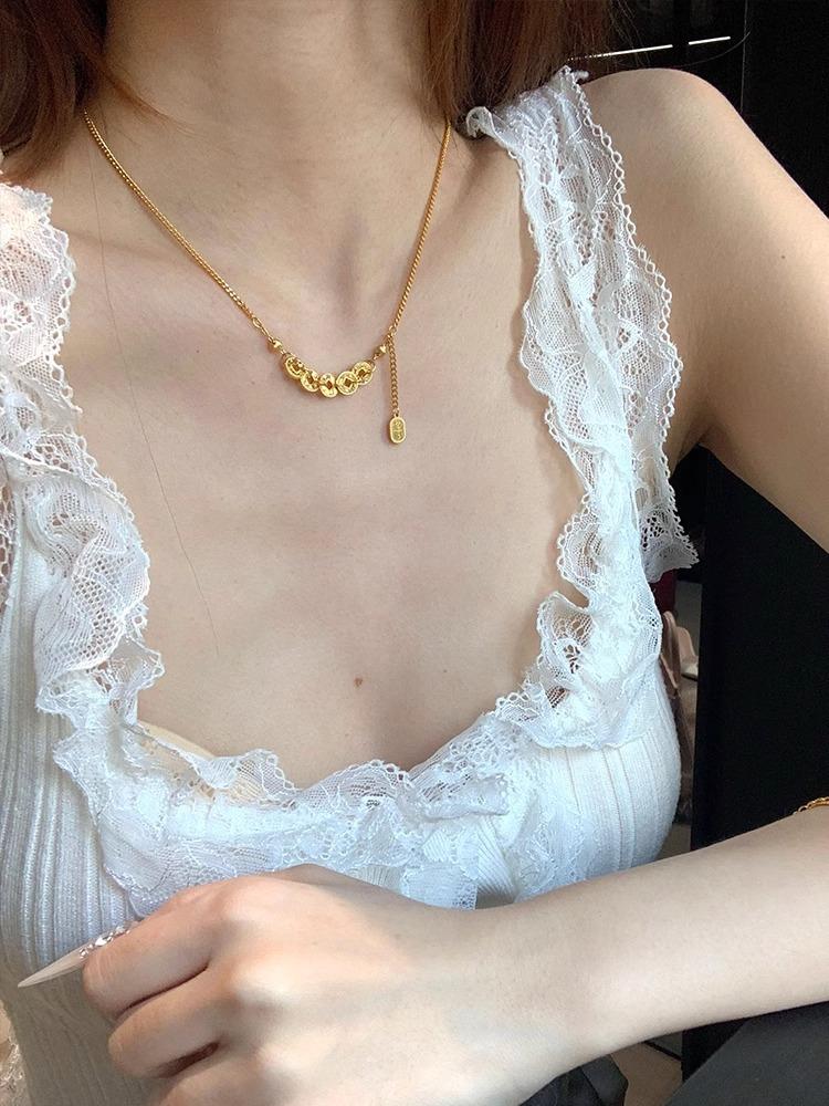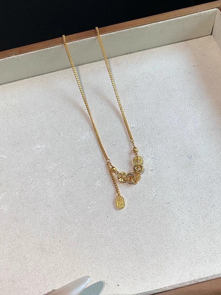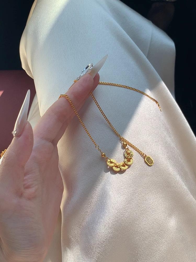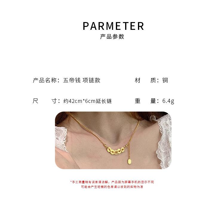 Nuevo collar de moneda de cobre de los Cinco Emperadores con hielo picado de estilo chino para mujer, ligero, de lujo, de alta gama, con diseño de nicho, a la moda, cadena de collar.