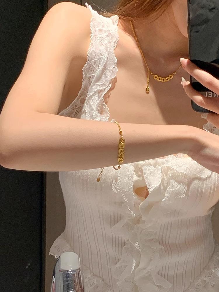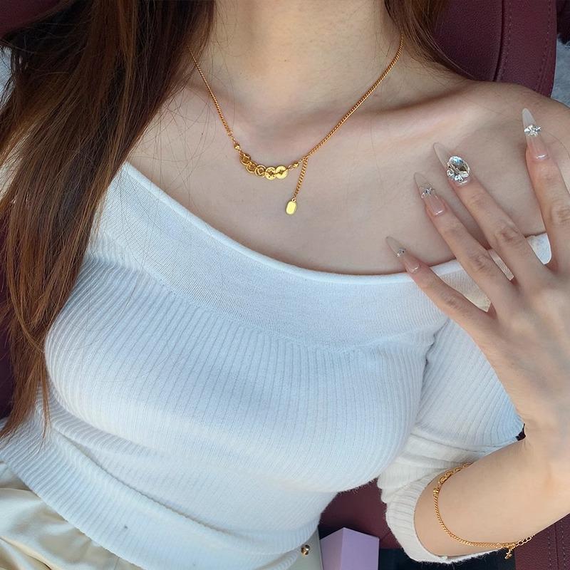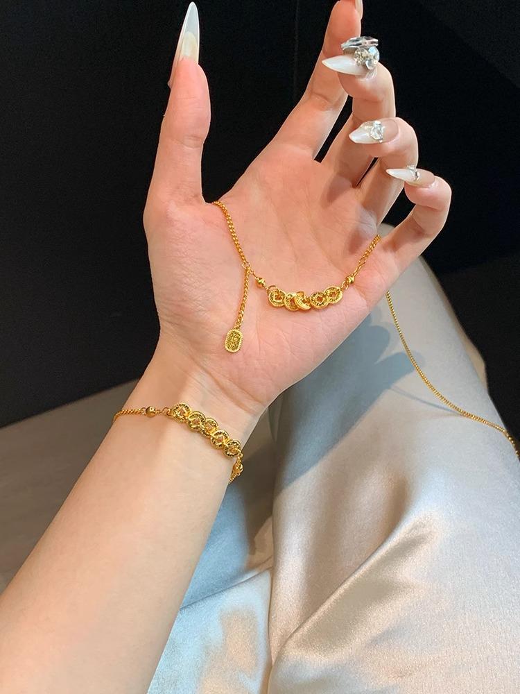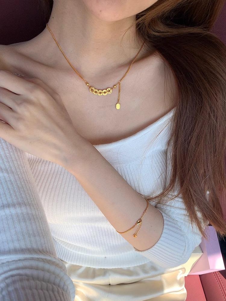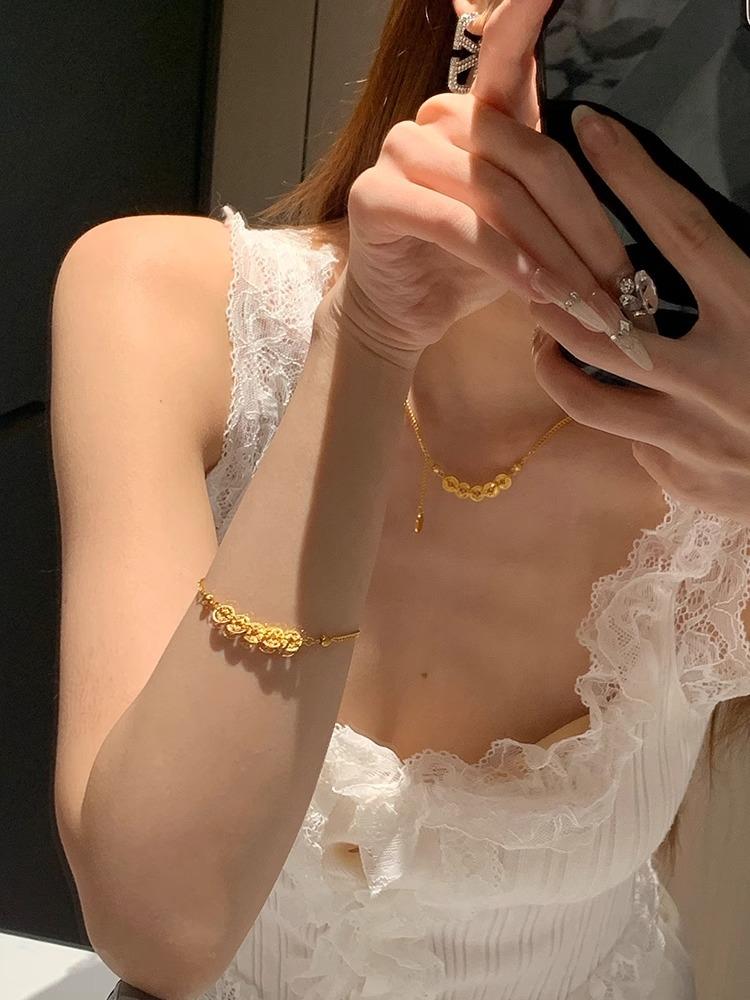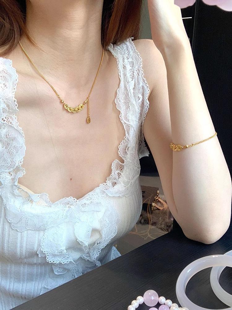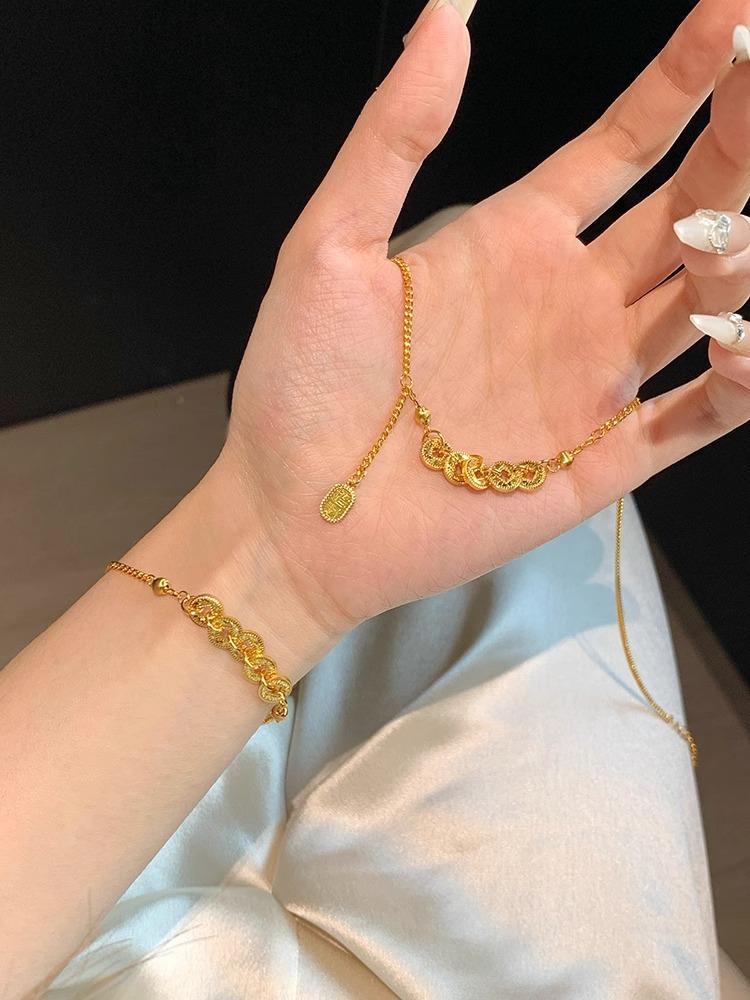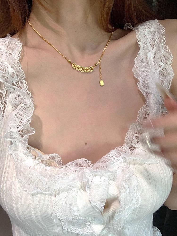 Nuevo collar de moneda de cobre de los Cinco Emperadores con hielo picado de estilo chino para mujer, ligero, de lujo, de alta gama, con diseño de nicho, a la moda, cadena de collar.