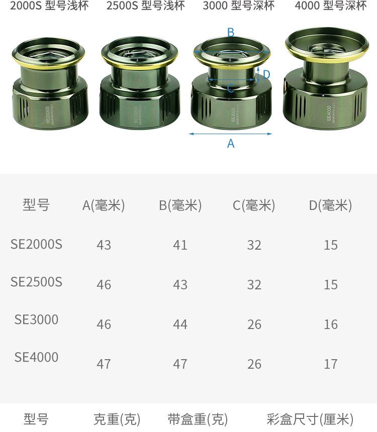 SE2000S shallow line cup, SE2500S shallow line cup, SE3000 deep line cup, SE4000 deep line cup