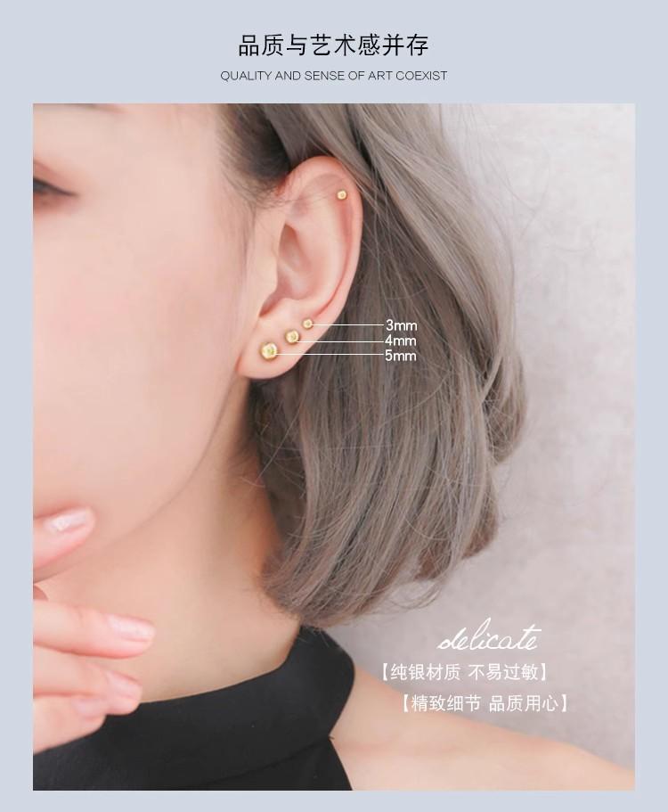Aretes de Plata Esterlina S999 Perforación de Oreja Uña de Hueso de Oreja Aretes de Palo de Oreja con Cuentas Redondas Aretes Simples y Versátiles al por Mayor