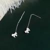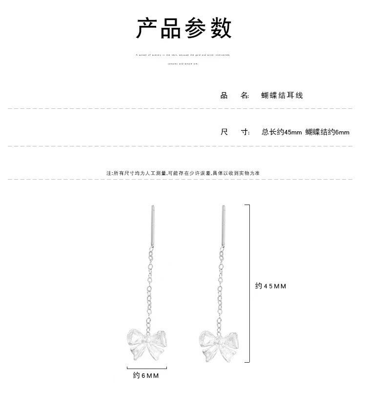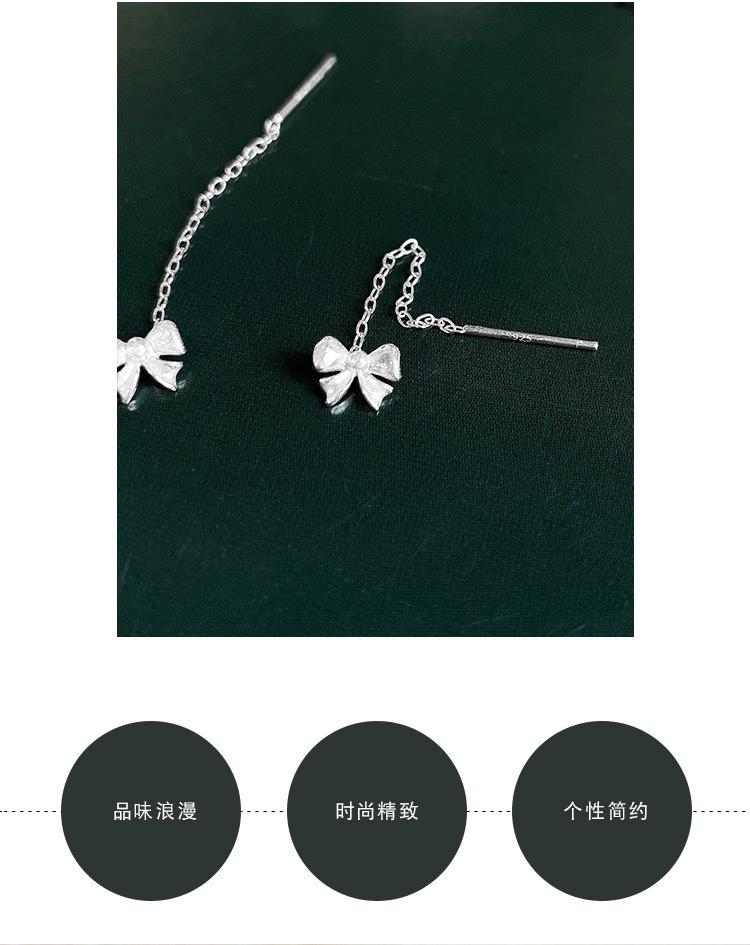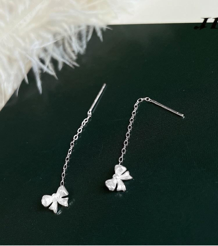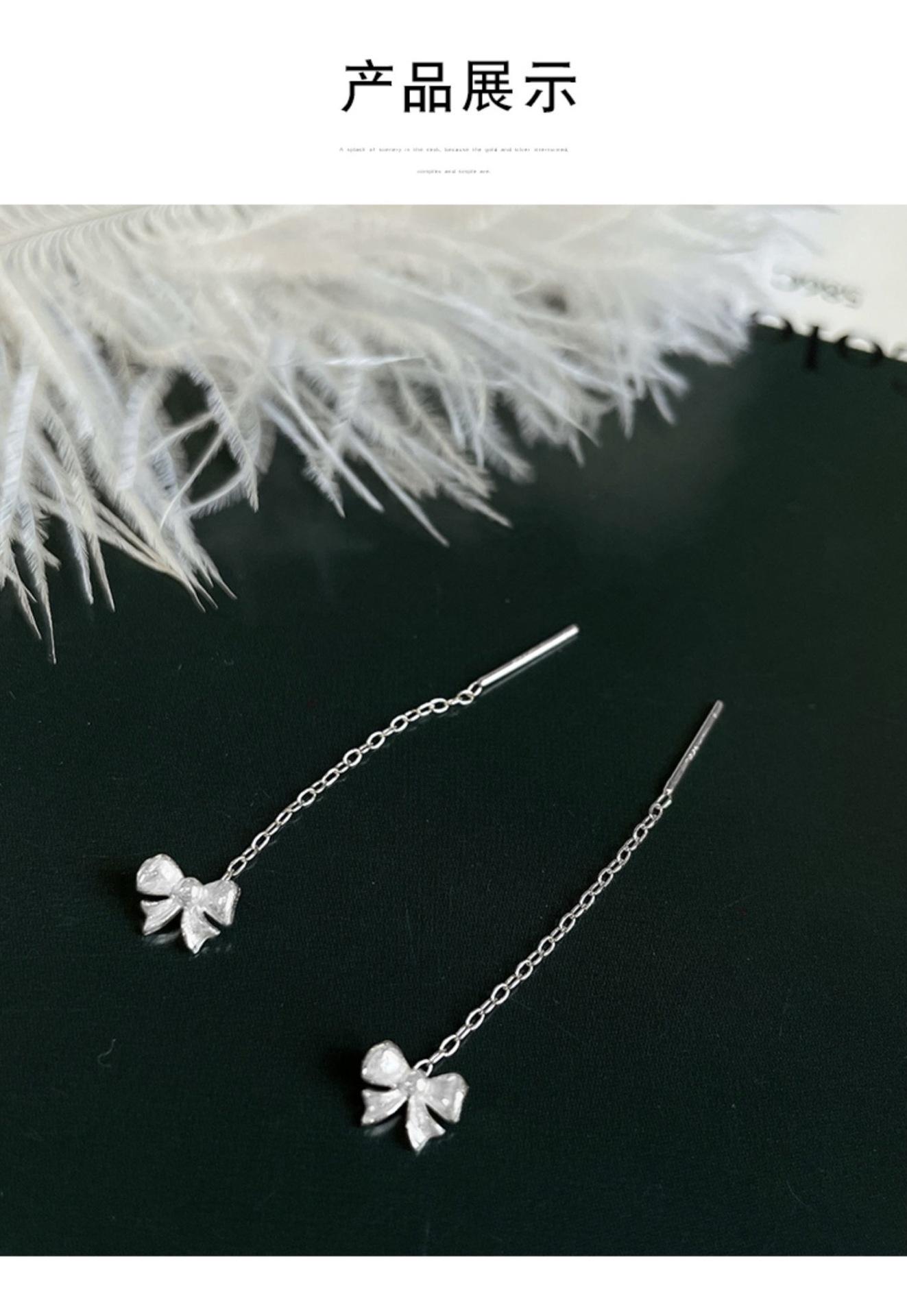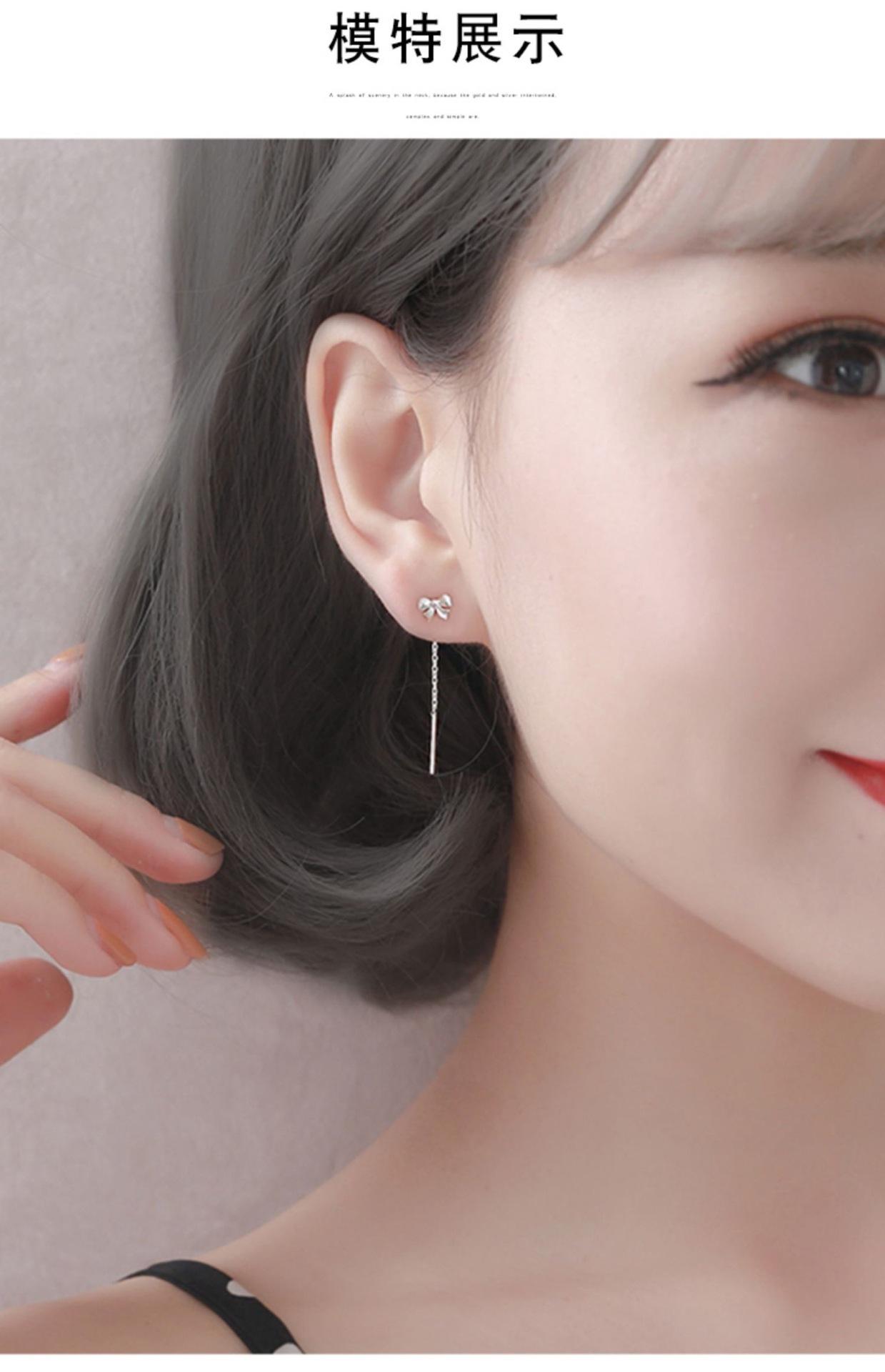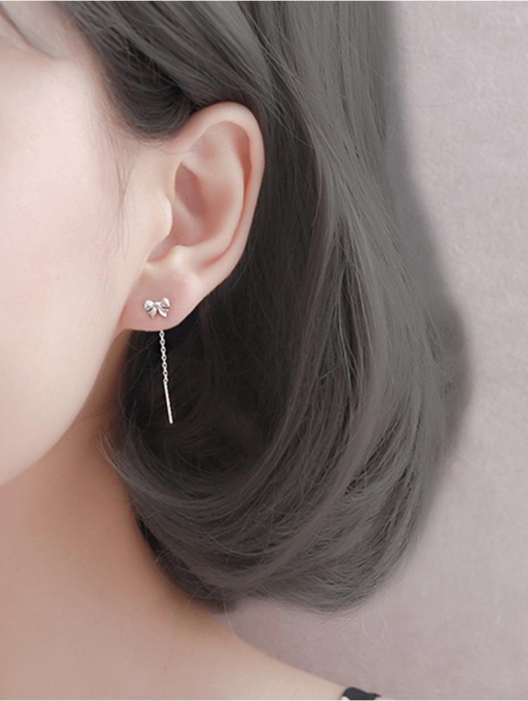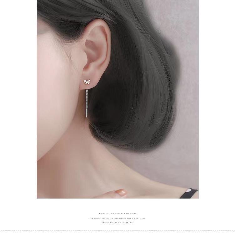 Alambre para Oreja para Mujer Plata Esterlina S999 Lazo Aretes Largos para Orejas Perforadas Aretes Simples Versátiles Aretes Estilo Dulce para Estudiante