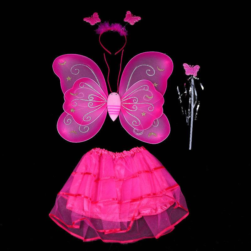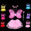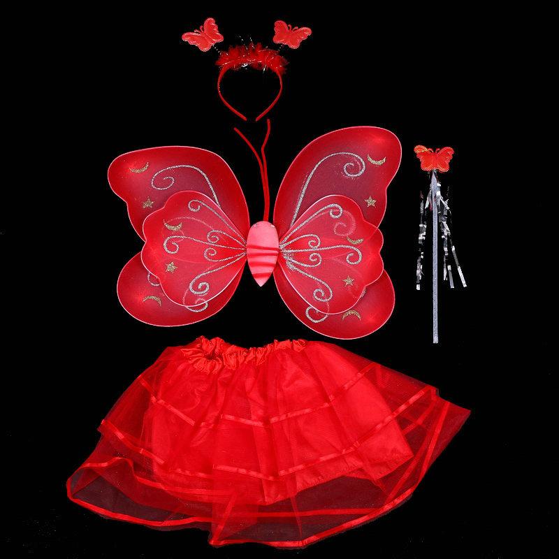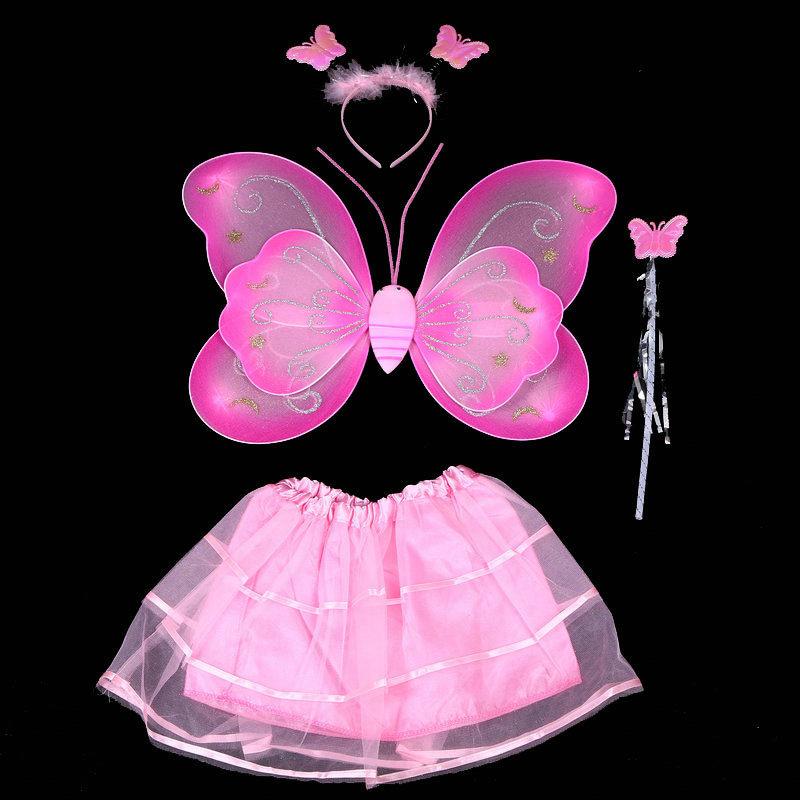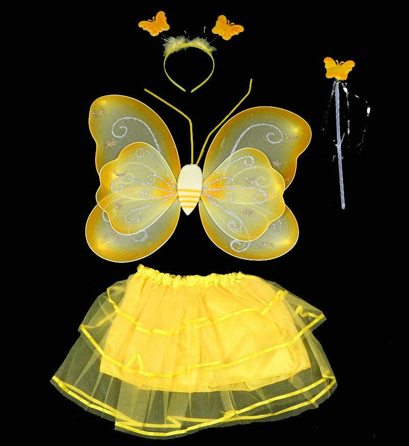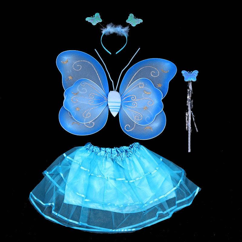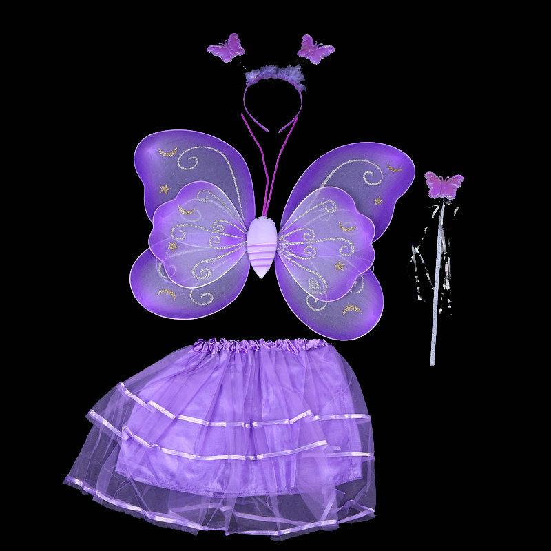 [Nombre]: Set de 4 piezas de alas de mariposa de polvo dorado de doble capa: falda + alas + tocado + varita de hada