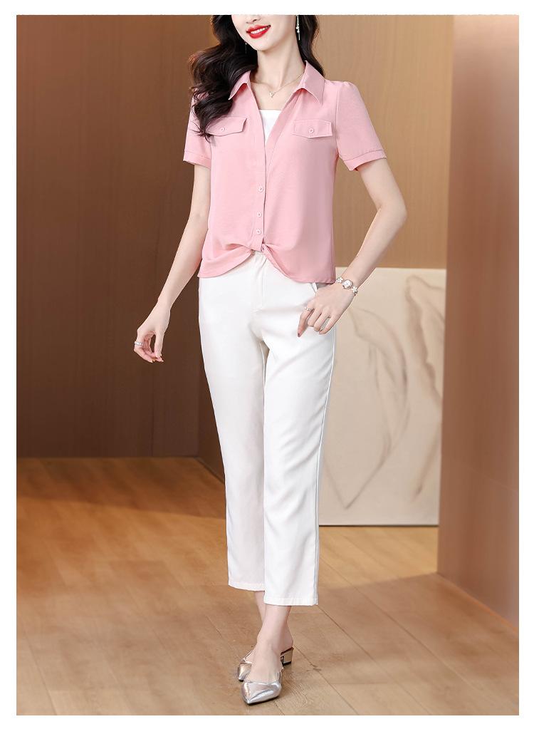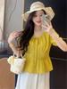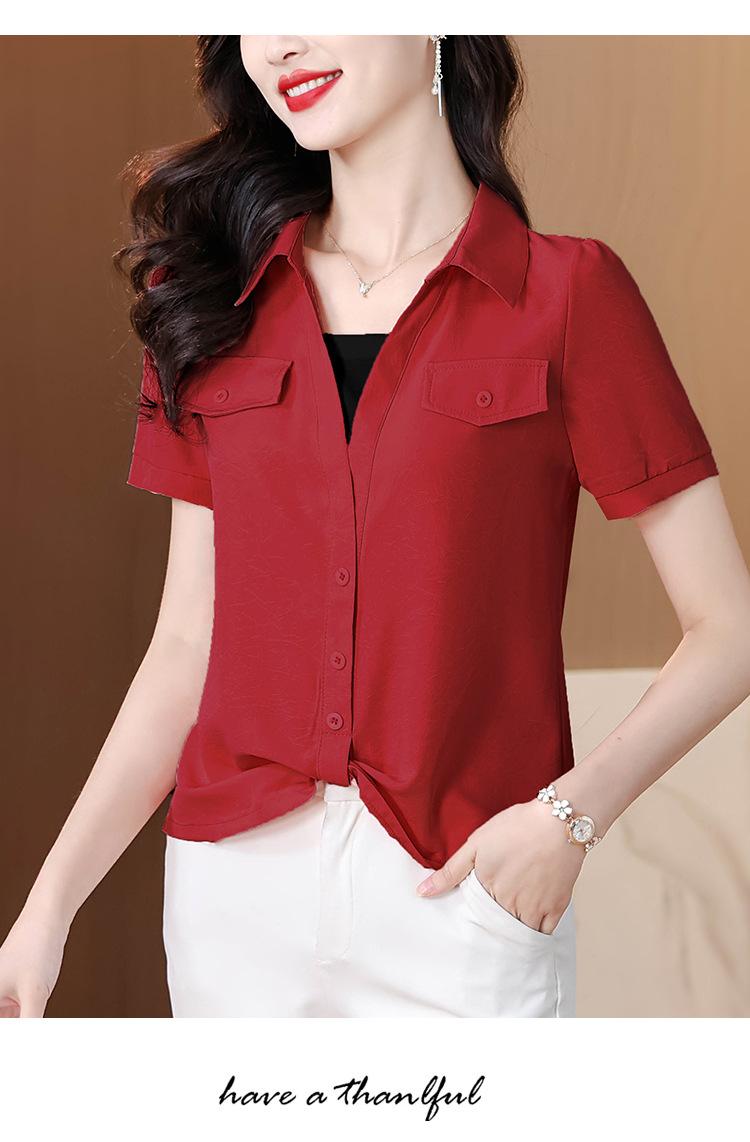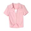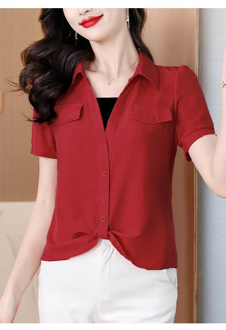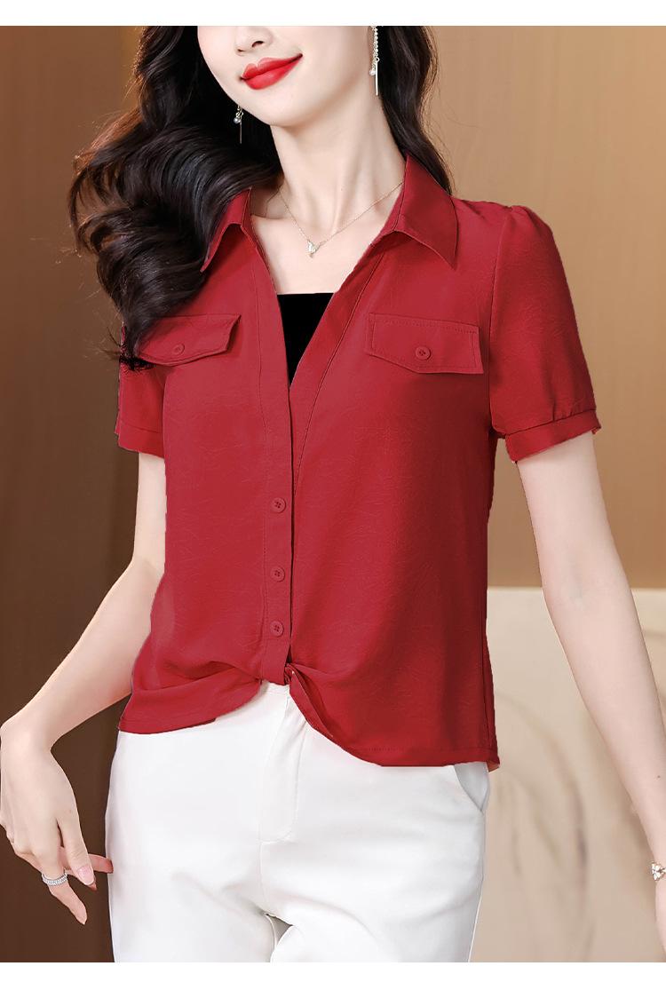 Camisa de manga corta de dos piezas falsa para mujer, verano 2025, nuevo diseño, estilo nicho, suelta, adelgazante, combinable, top antiedad a la moda.