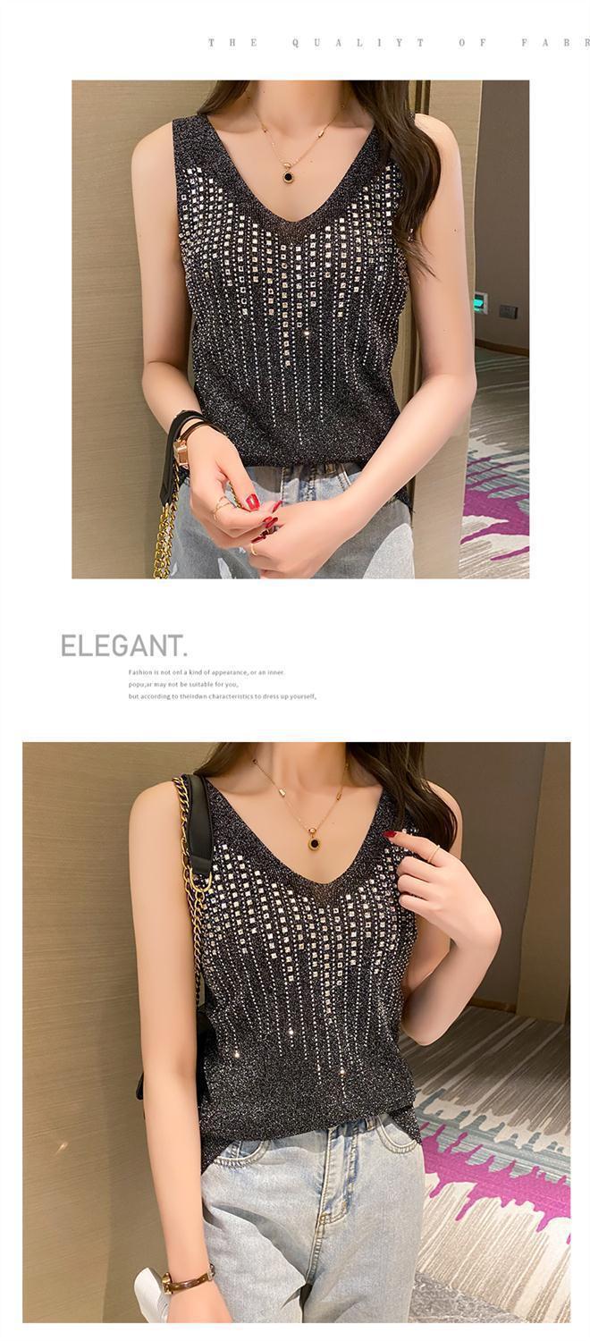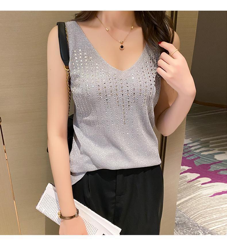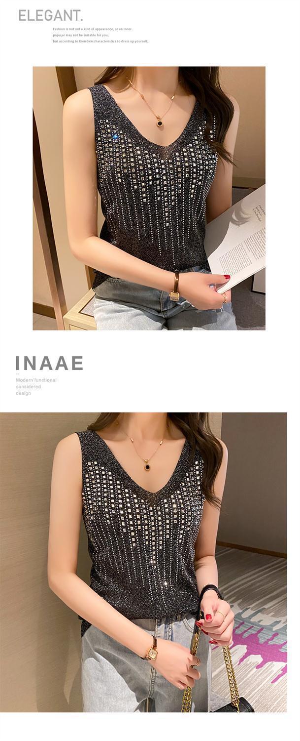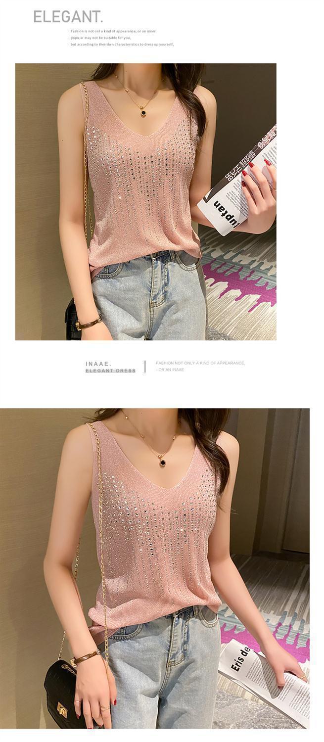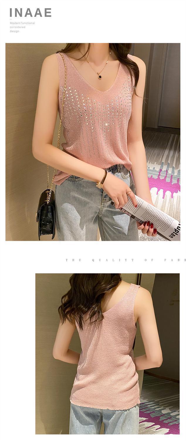 Chaleco holgado con diamantes de imitación para mujer, ropa exterior informal, tirantes interiores, sin mangas, tejido, moderno, estilo verano 2025