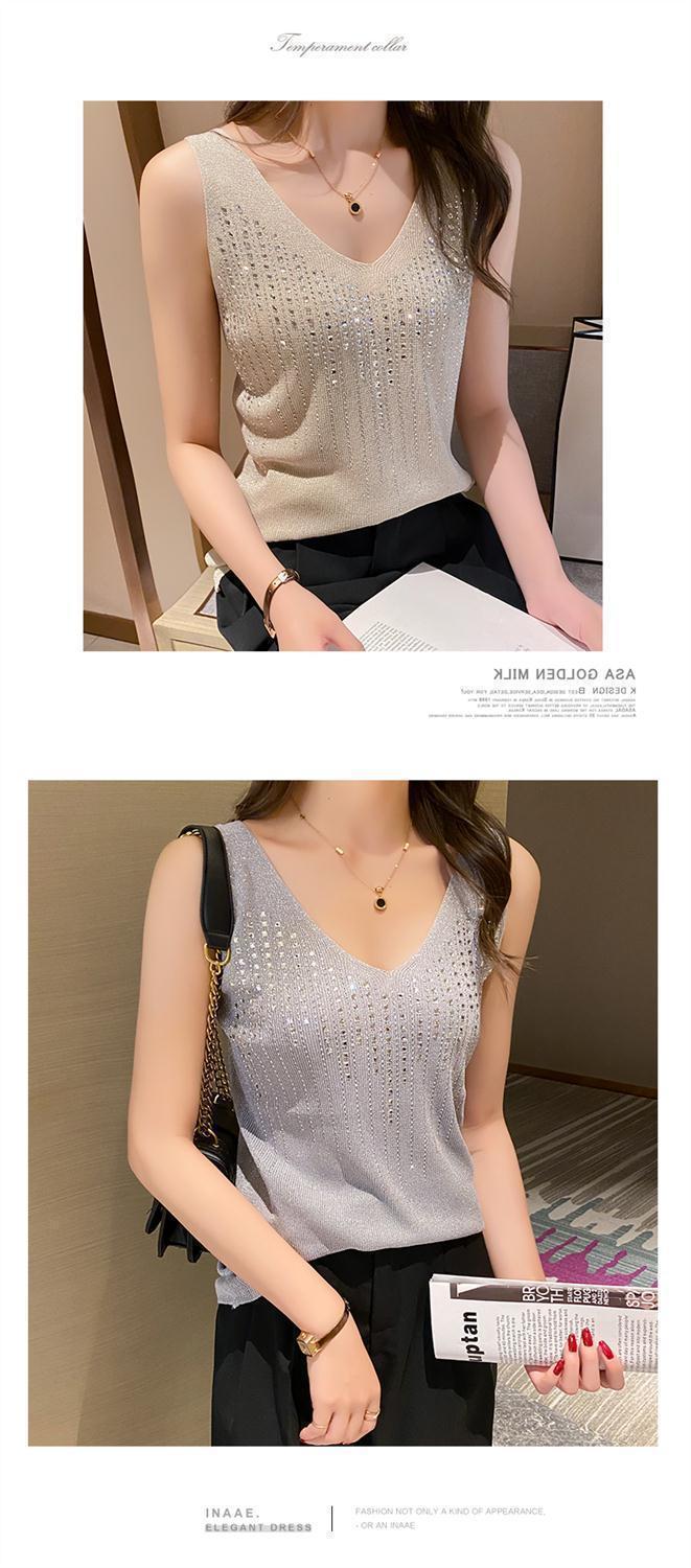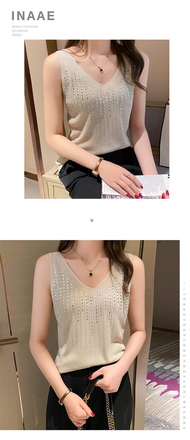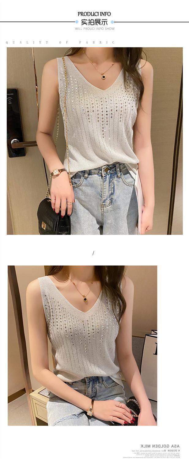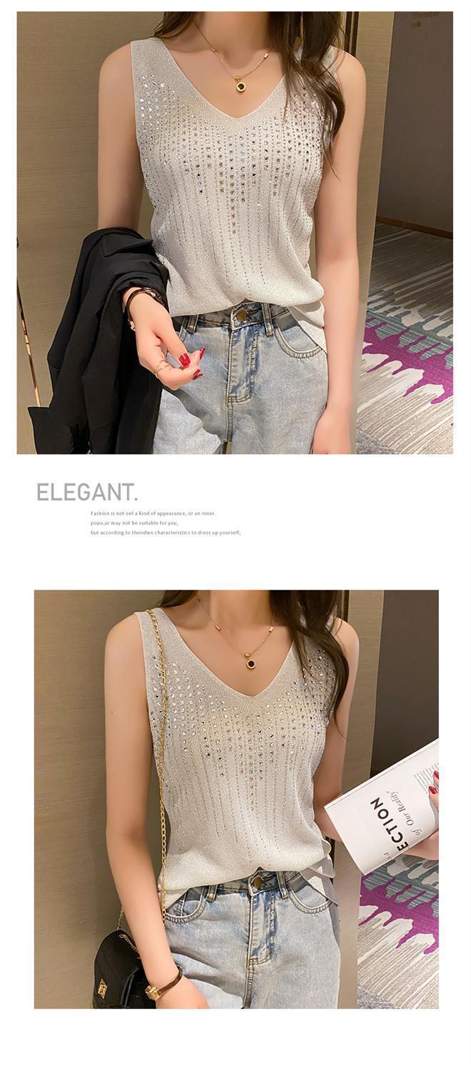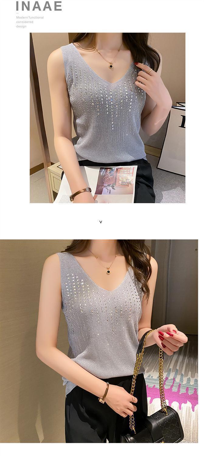 Chaleco holgado con diamantes de imitación para mujer, ropa exterior informal, tirantes interiores, sin mangas, tejido, moderno, estilo verano 2025