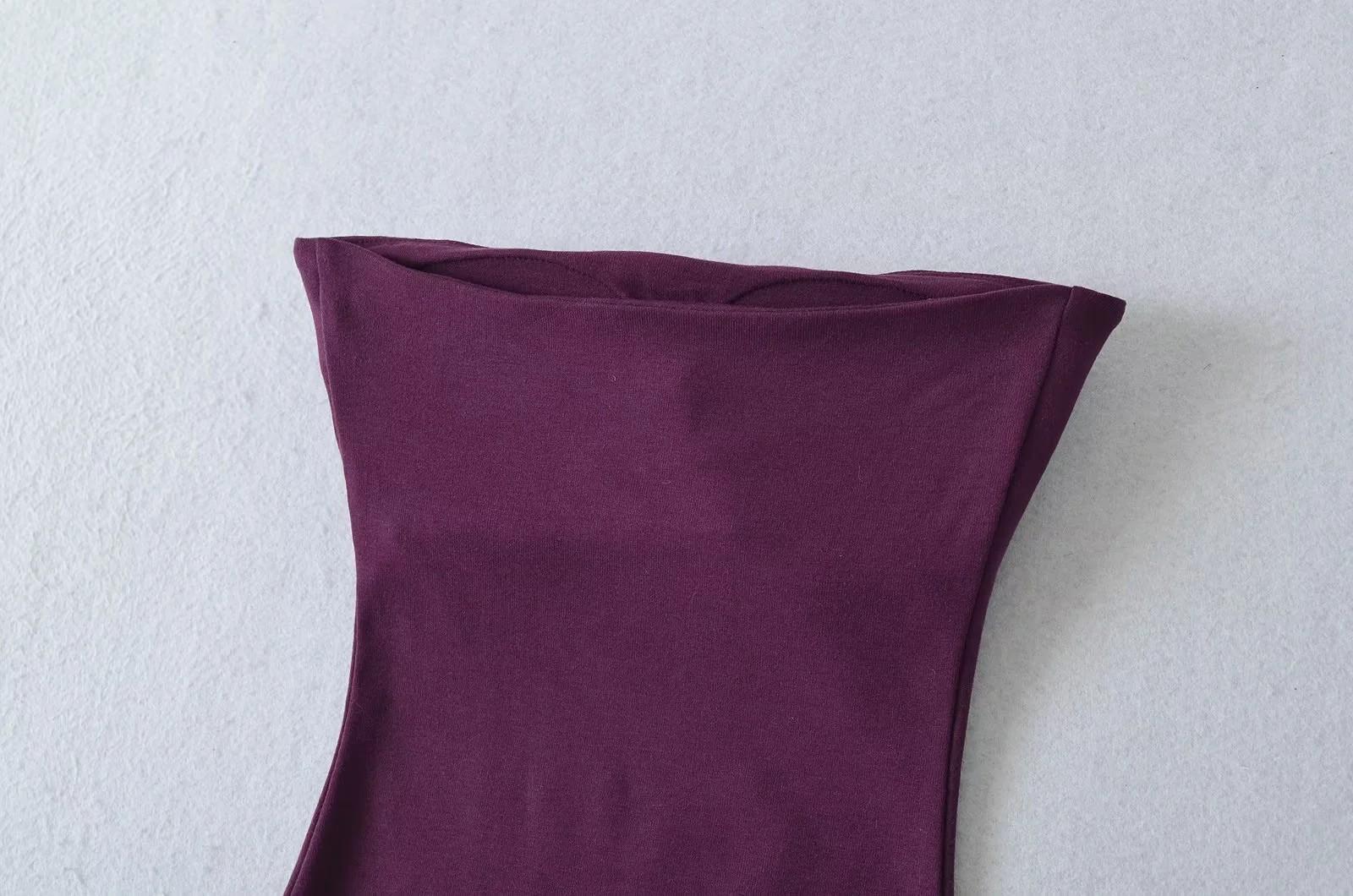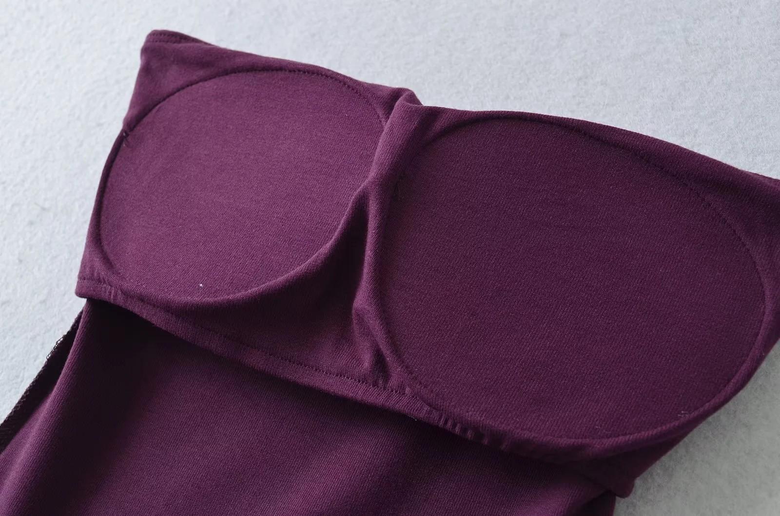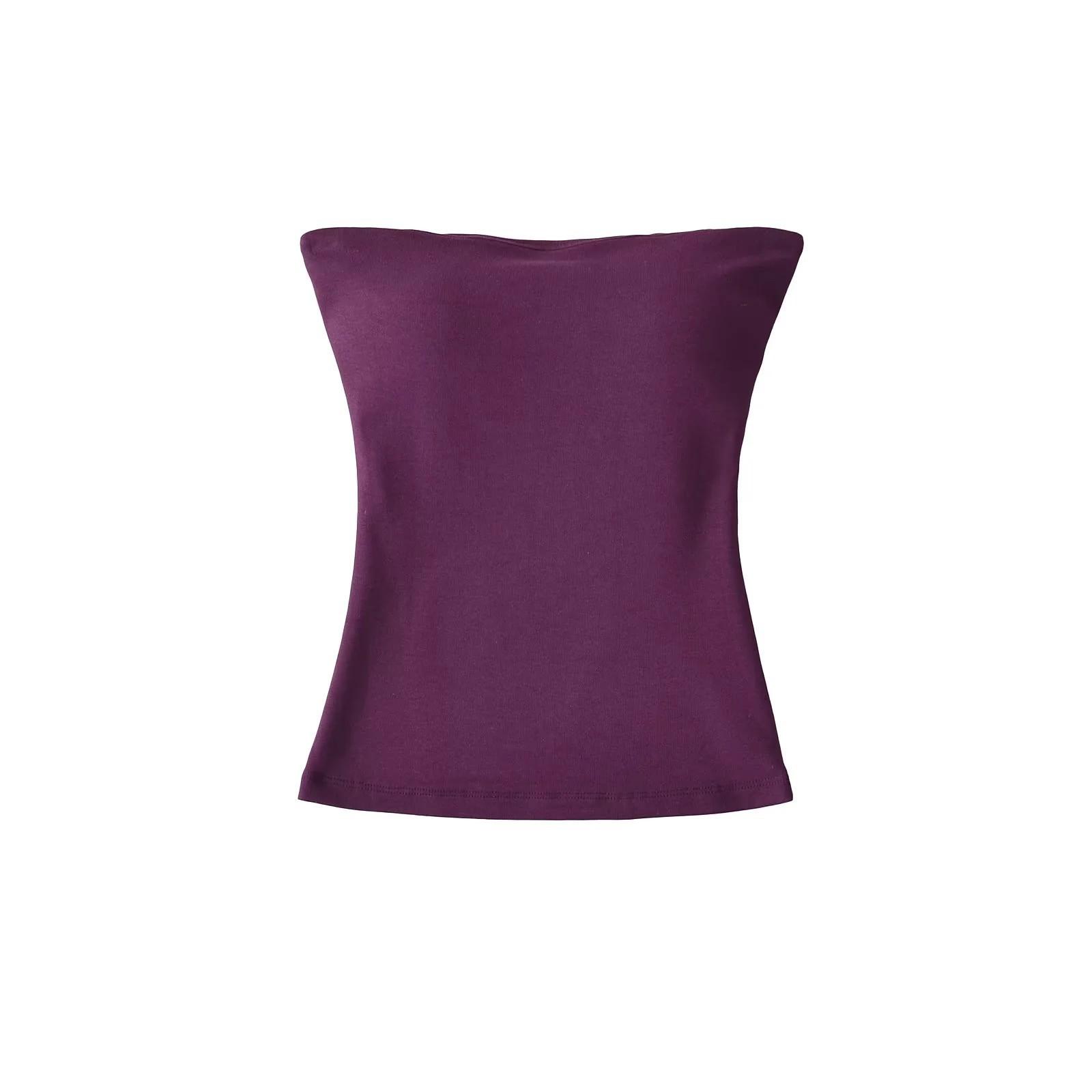 Estilo Deseo Puro Sexy Ajustado Top de Tirantes con Cuello Strapless y Almohadilla en el Pecho Estilo Occidental Camisola Básica