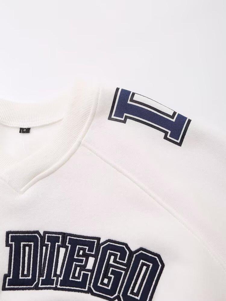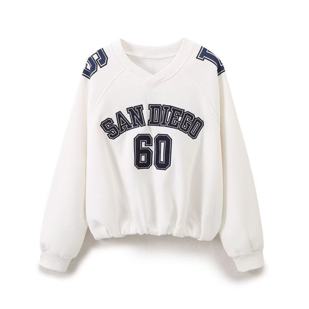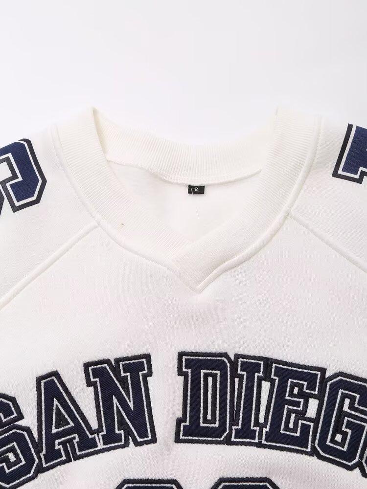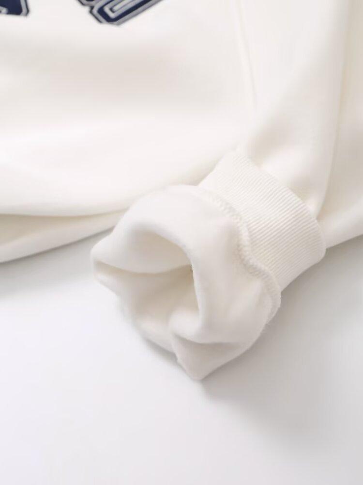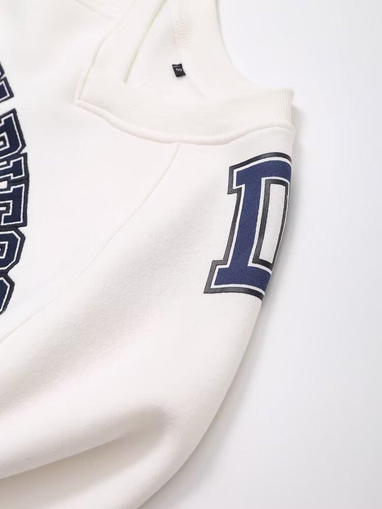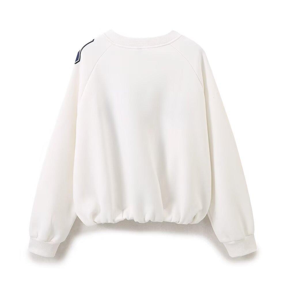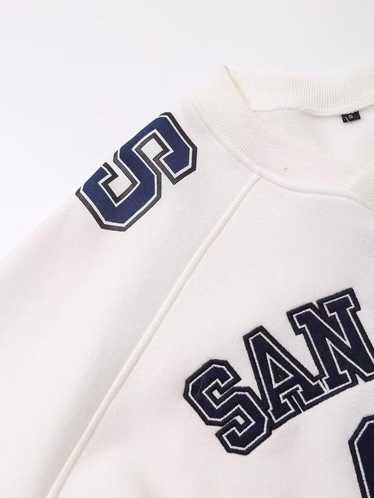 Suéter de cuello redondo estampado de manga larga estilo universitario para otoño e invierno, pantalones casuales de poliéster para mujer europeos y americanos con cuello blanco