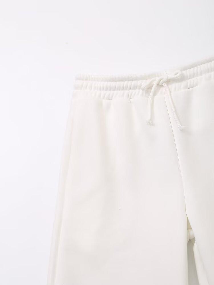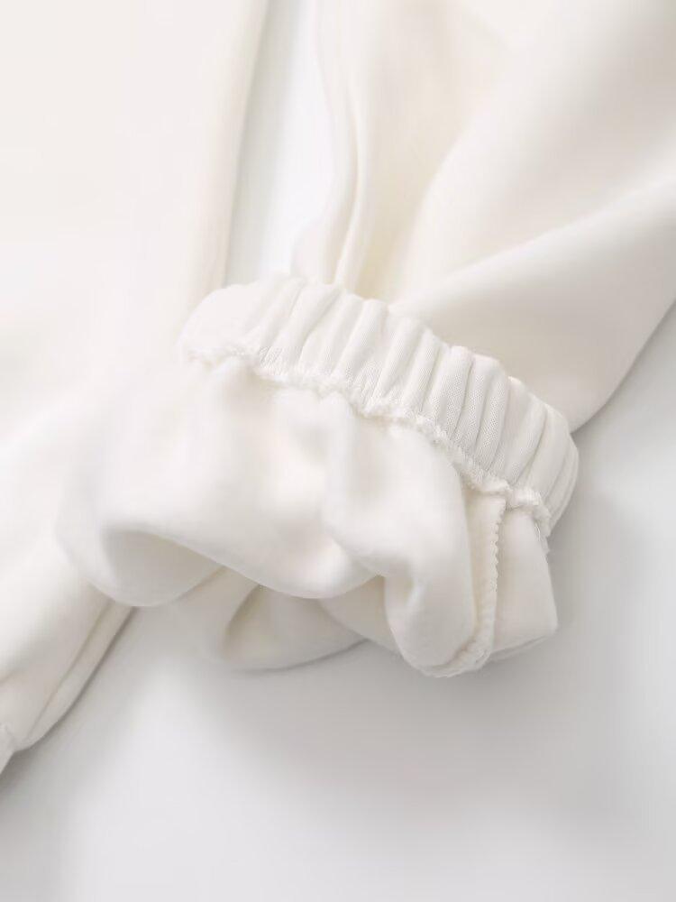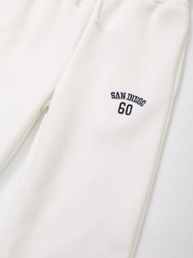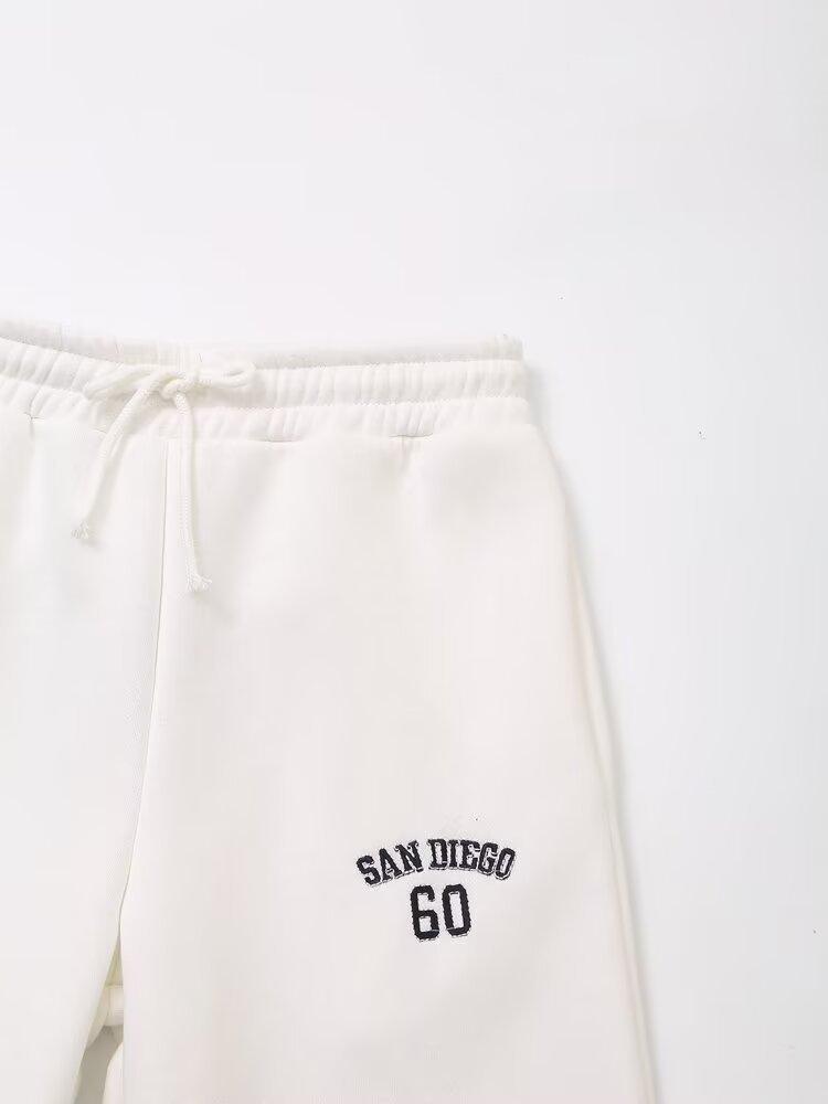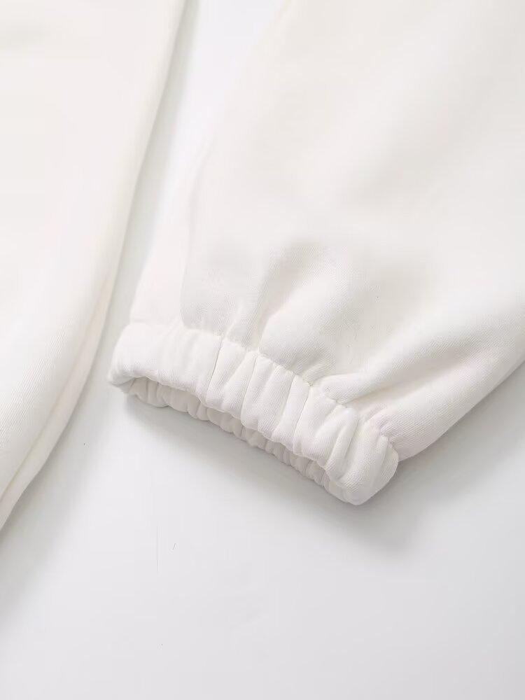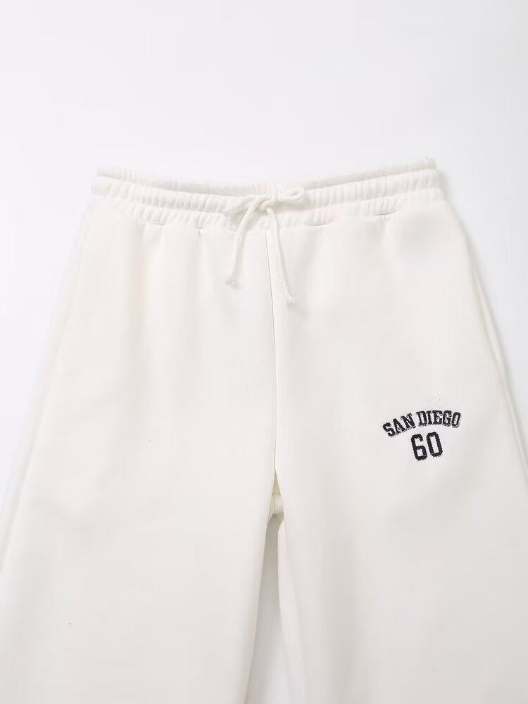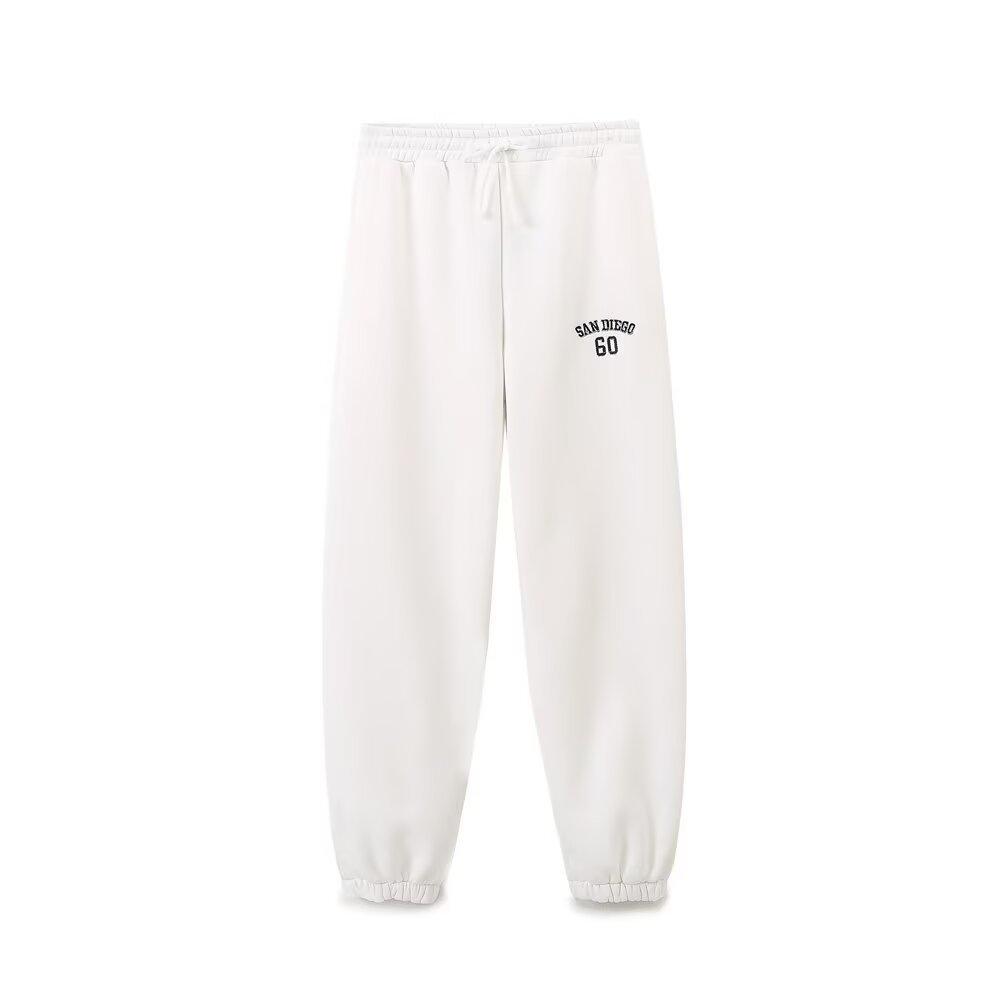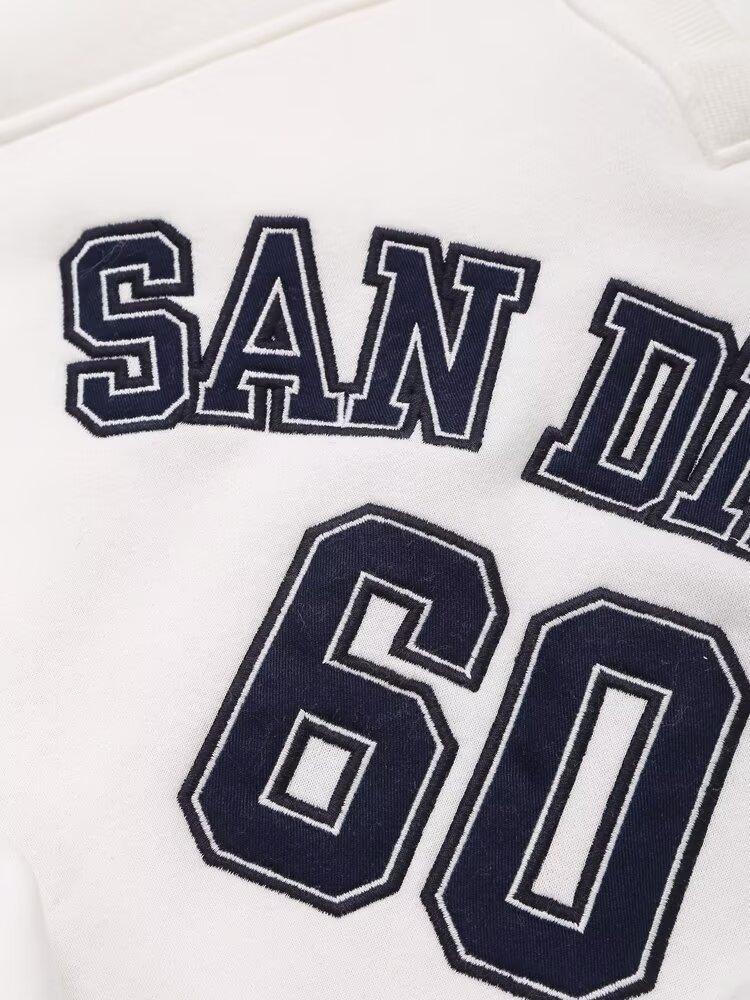 Suéter de cuello redondo estampado de manga larga estilo universitario para otoño e invierno, pantalones casuales de poliéster para mujer europeos y americanos con cuello blanco