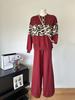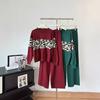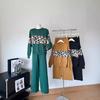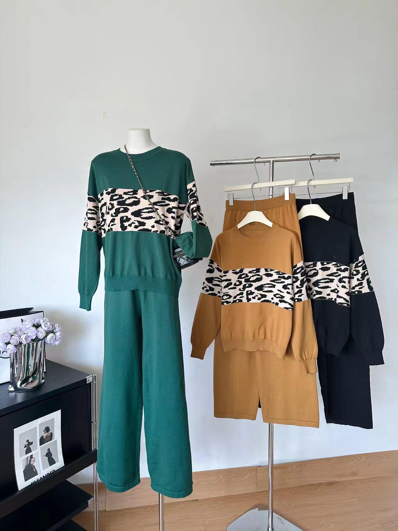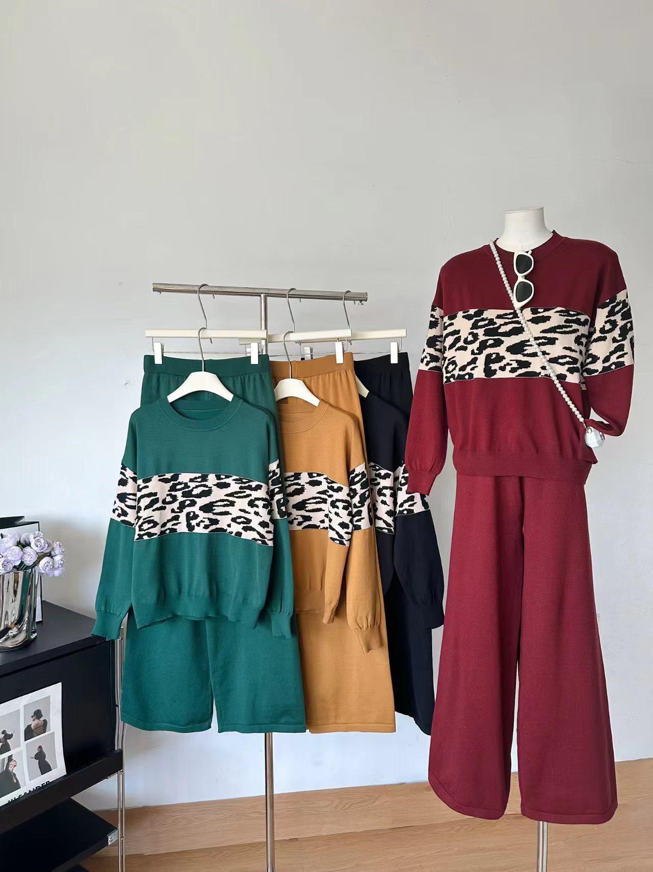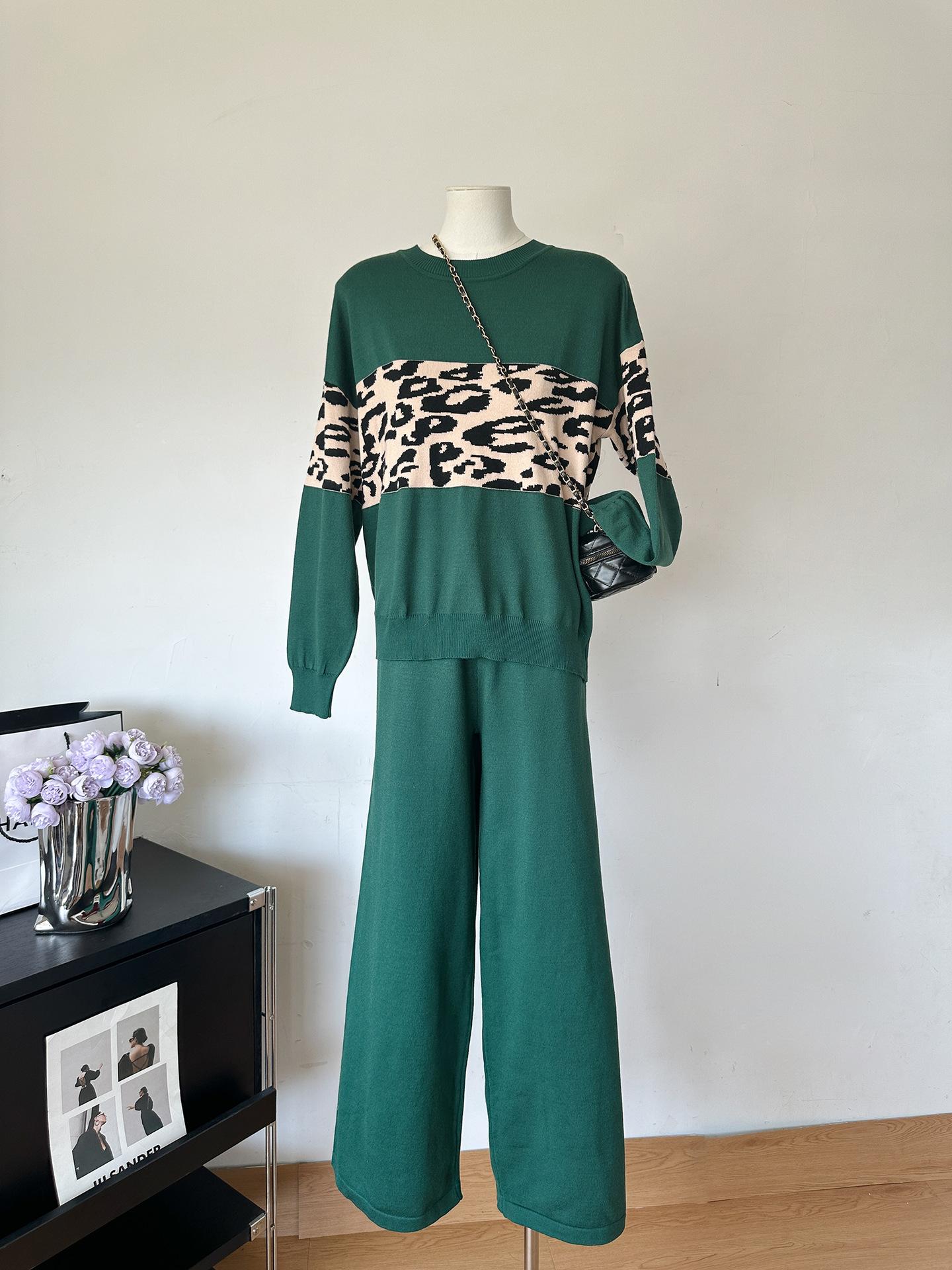 Conjunto de dos piezas de alta gama con estampado de leopardo y cuello redondo para mujer, de fábrica.
