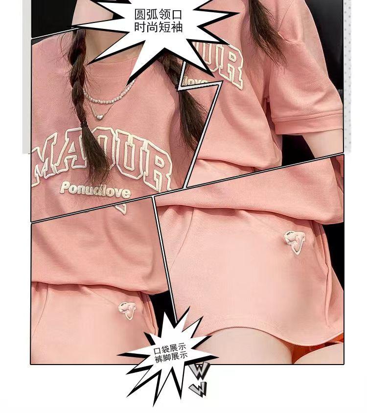 Traje Deportivo Casual de Verano para Mujer, Conjunto de Dos Piezas de Pantalones Cortos de Manga Corta Suelto y Cómodo para Mujer, Transpirable y Cómodo