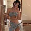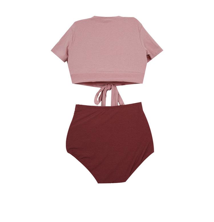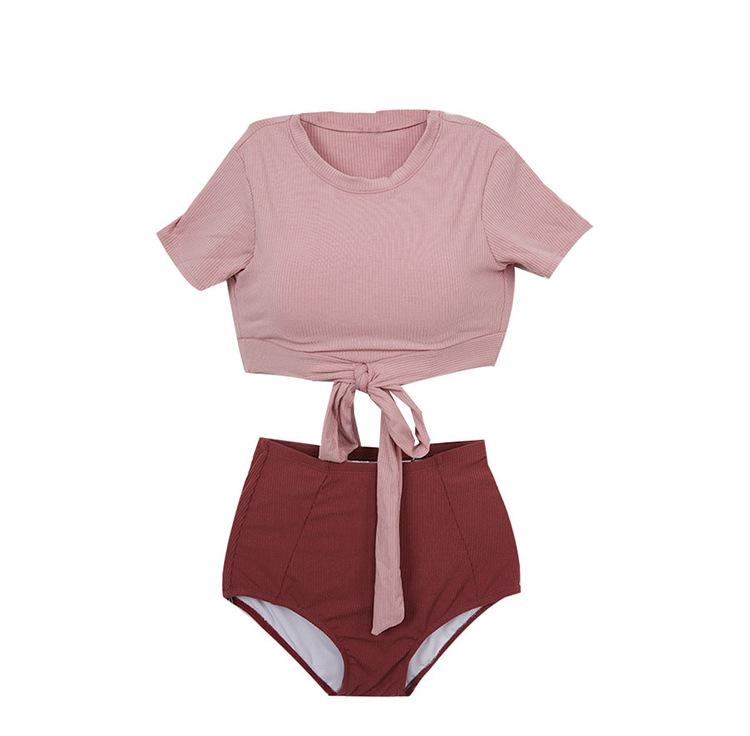 Traje de Baño Nuevo 2022 de Manga Corta con Cordones y Abertura para Mujer para Cubrir el Vientre y Lucir Adelgazante Look Resort de Playa Aguas Termales Ropa de Baño Dropshipping