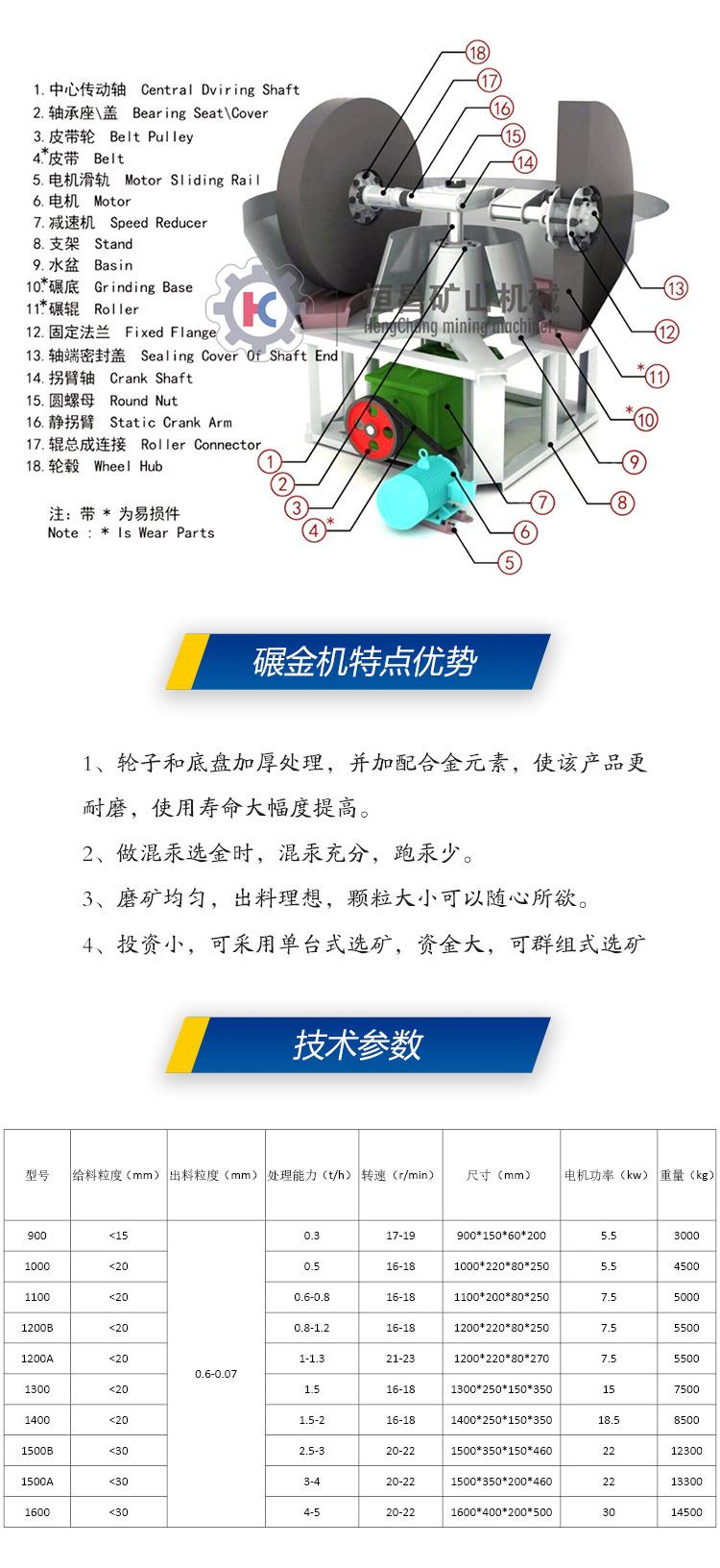 Molino de oro de doble rueda 1500 de diámetro molino de oro de roca grande tipo de desbordamiento de molienda húmeda tipo de acero de alto manganeso