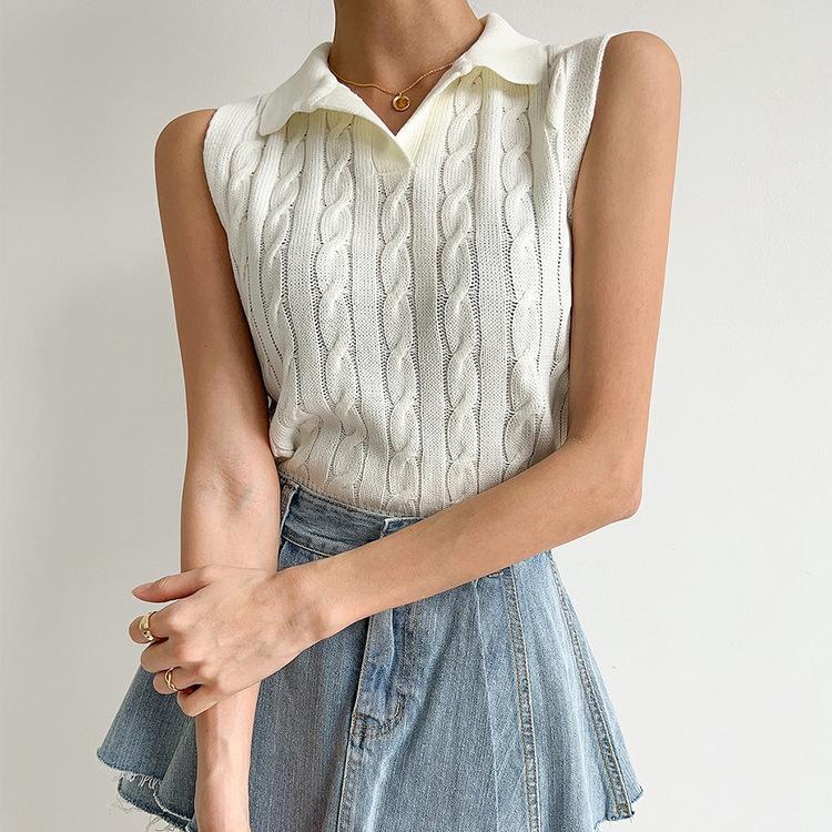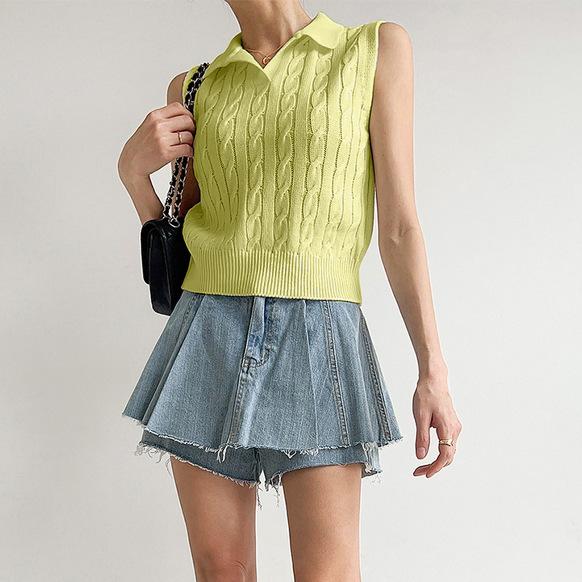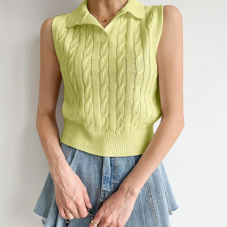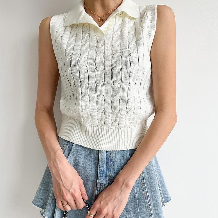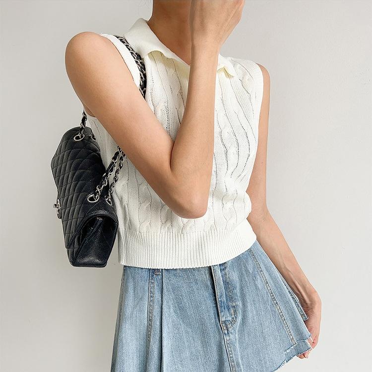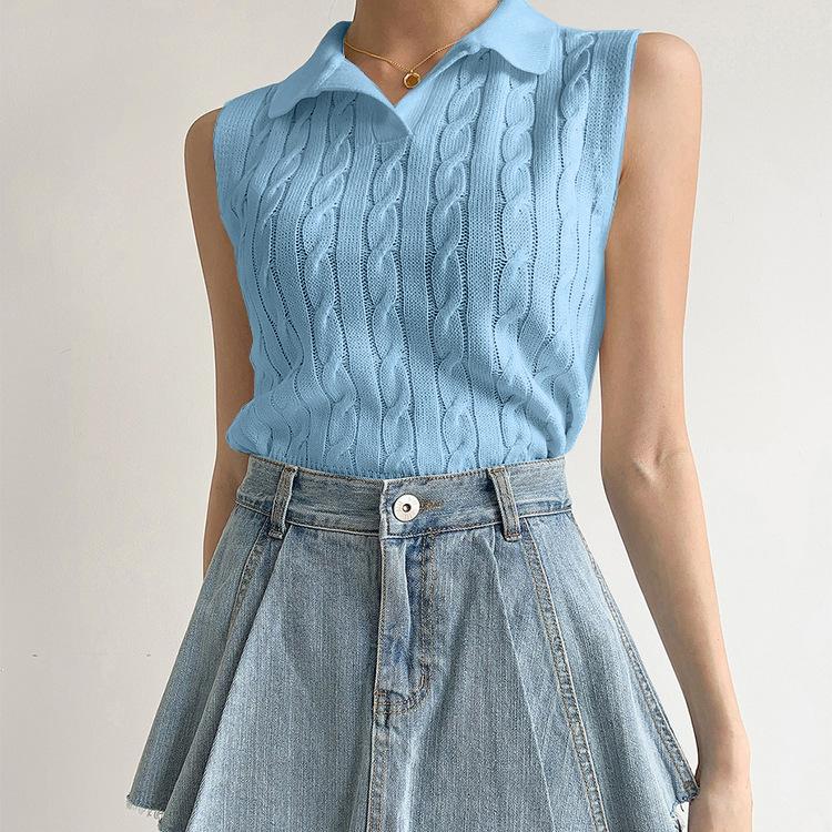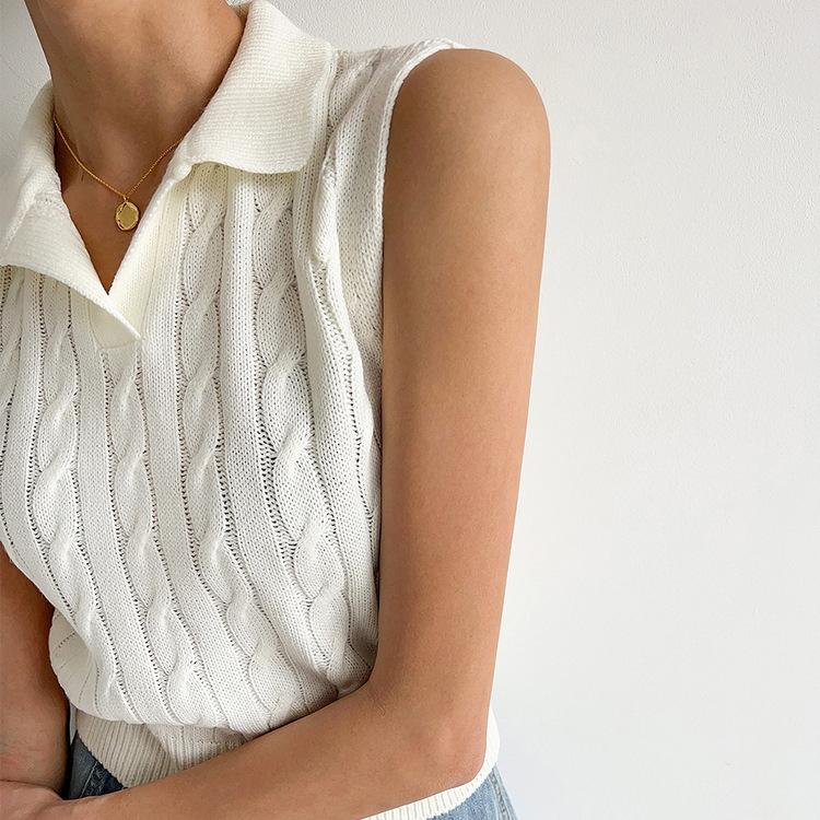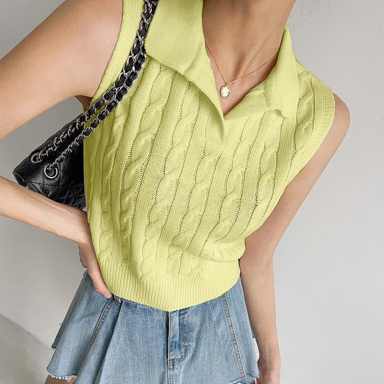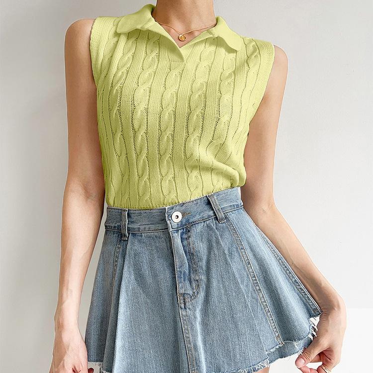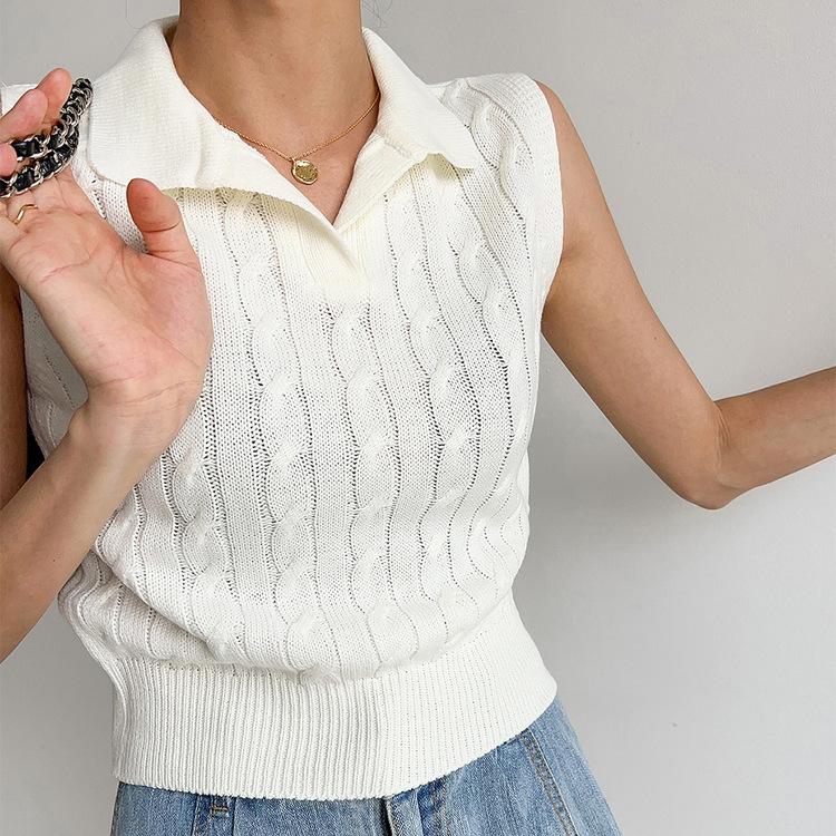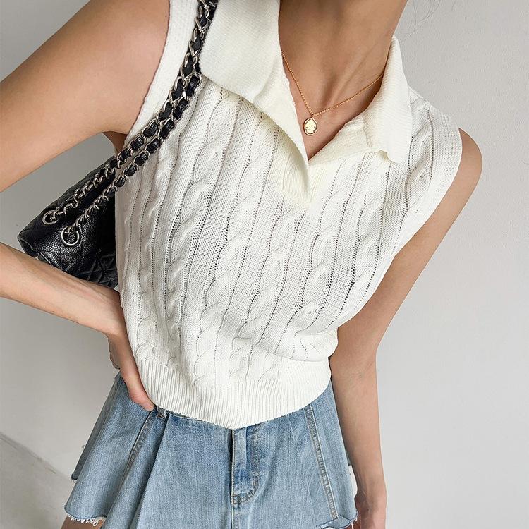 Chaleco de Punto con Cuello en V Torcido para Mujer Ropa Exterior Verano 2025 Nuevo Chaleco Interior con Cuello Polo