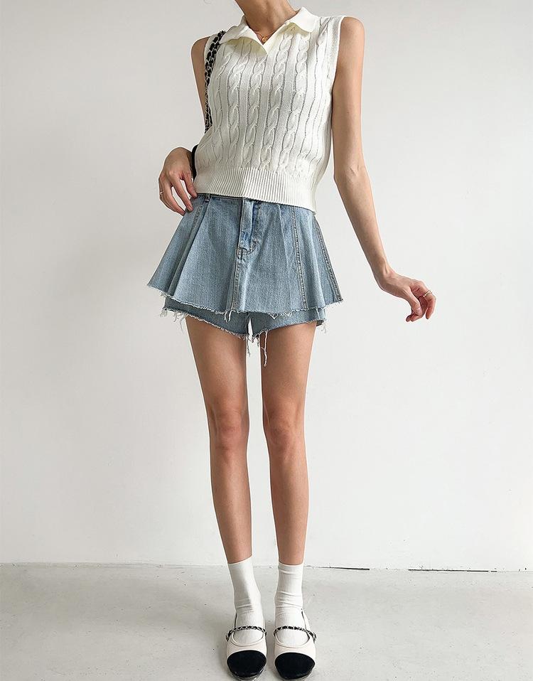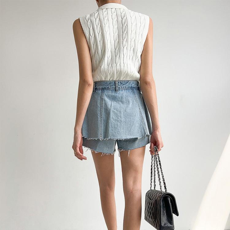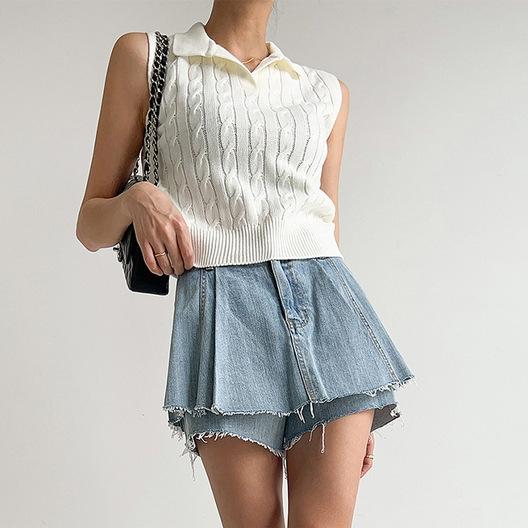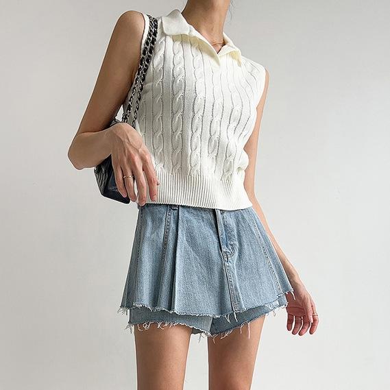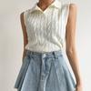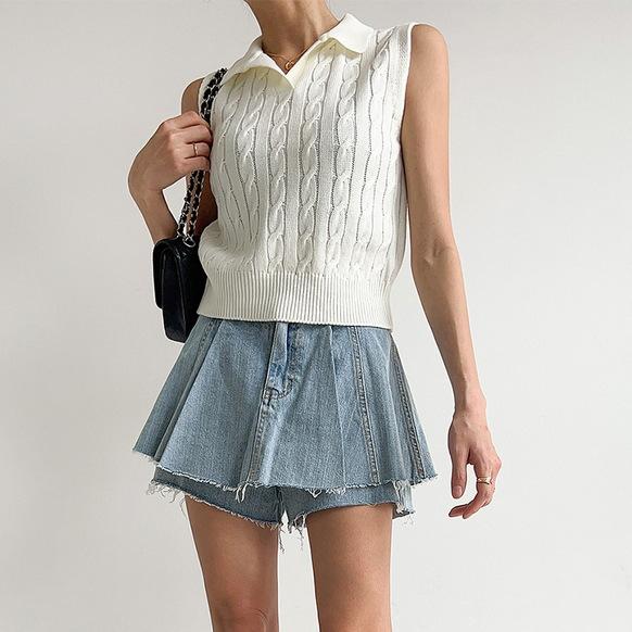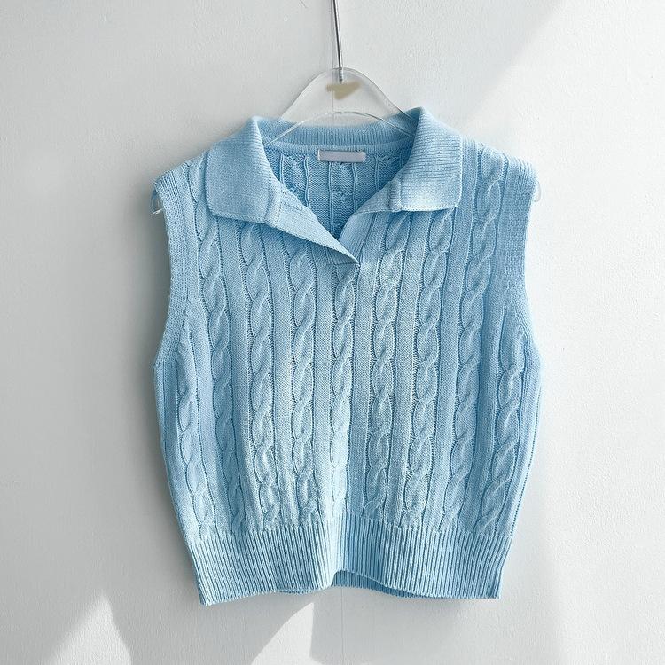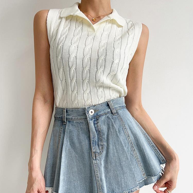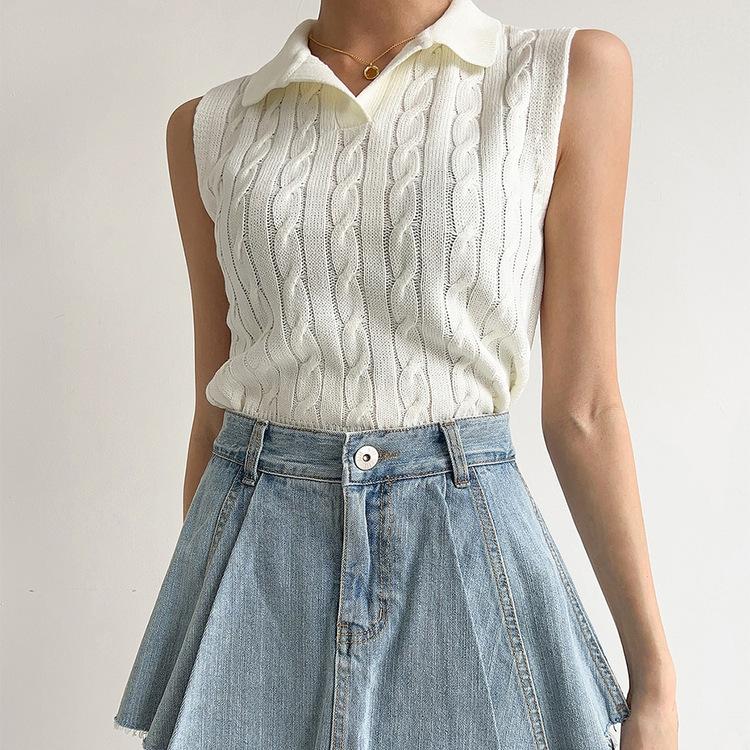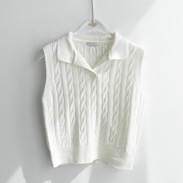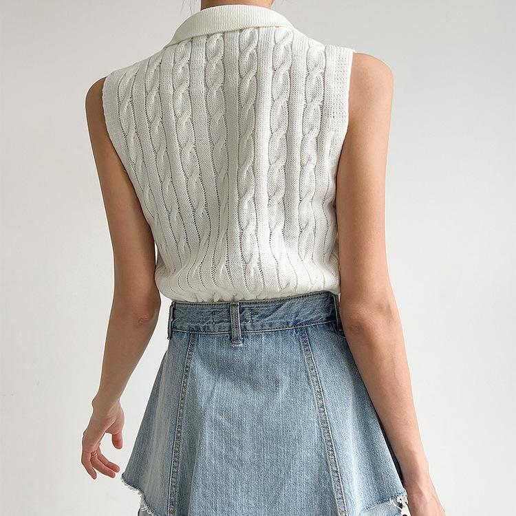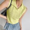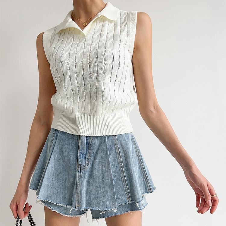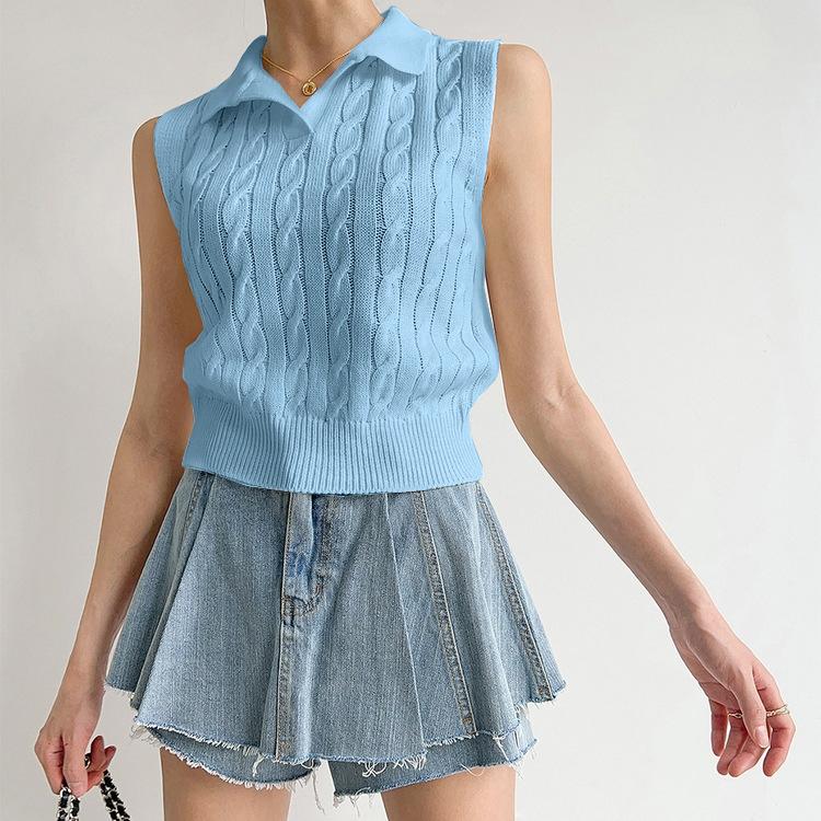 Chaleco de Punto con Cuello en V Torcido para Mujer Ropa Exterior Verano 2025 Nuevo Chaleco Interior con Cuello Polo