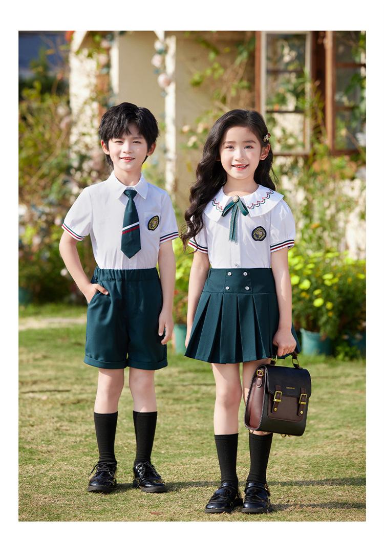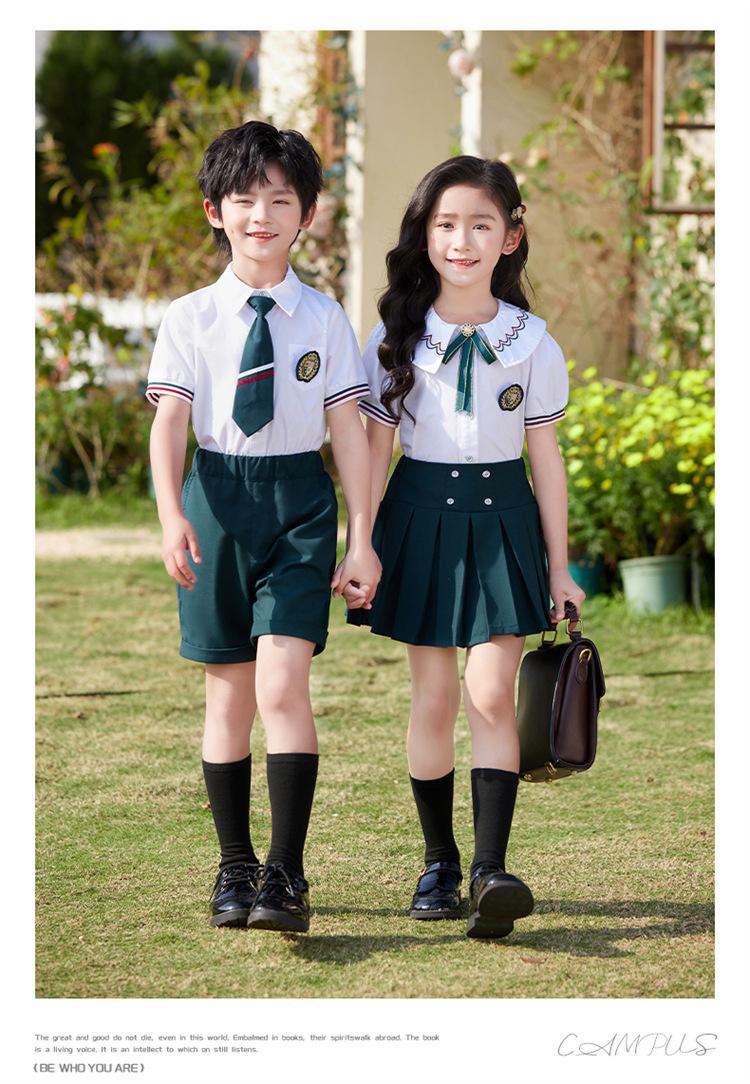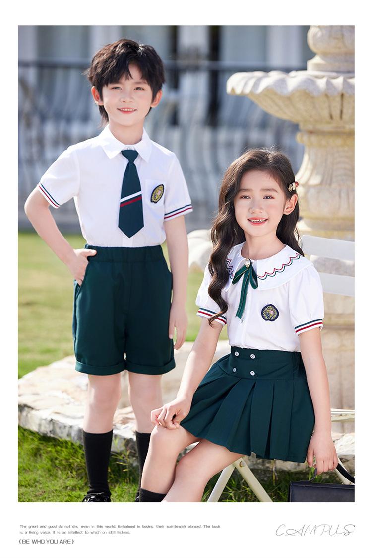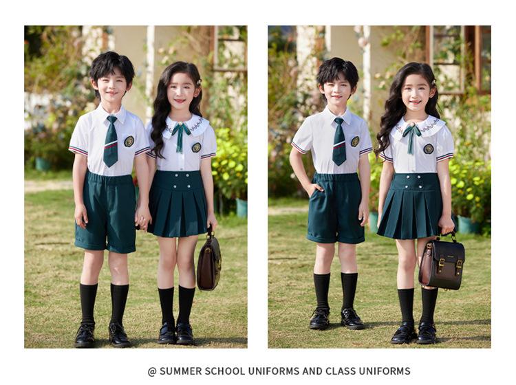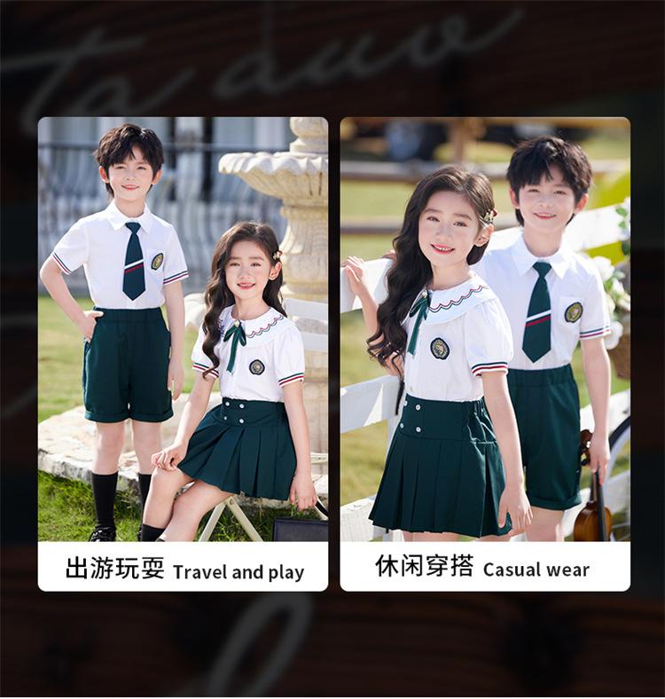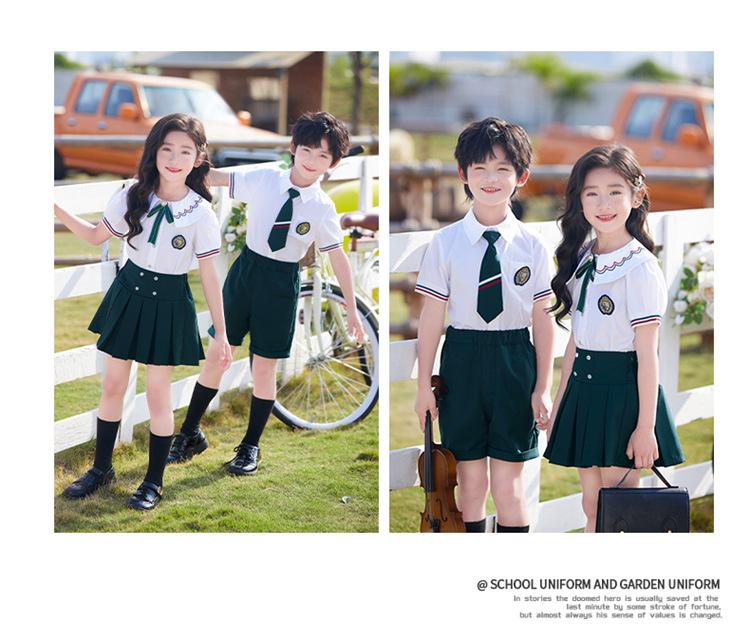 Uniforme de Jardín de Niños Verano Camisa de Manga Corta Falda Estilo Universitario Traje de Uniforme Escolar Estudiante de Primaria Foto de Graduación Uniforme de Clase de Actuación