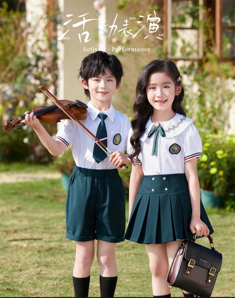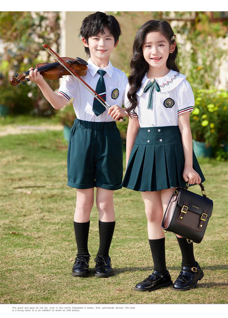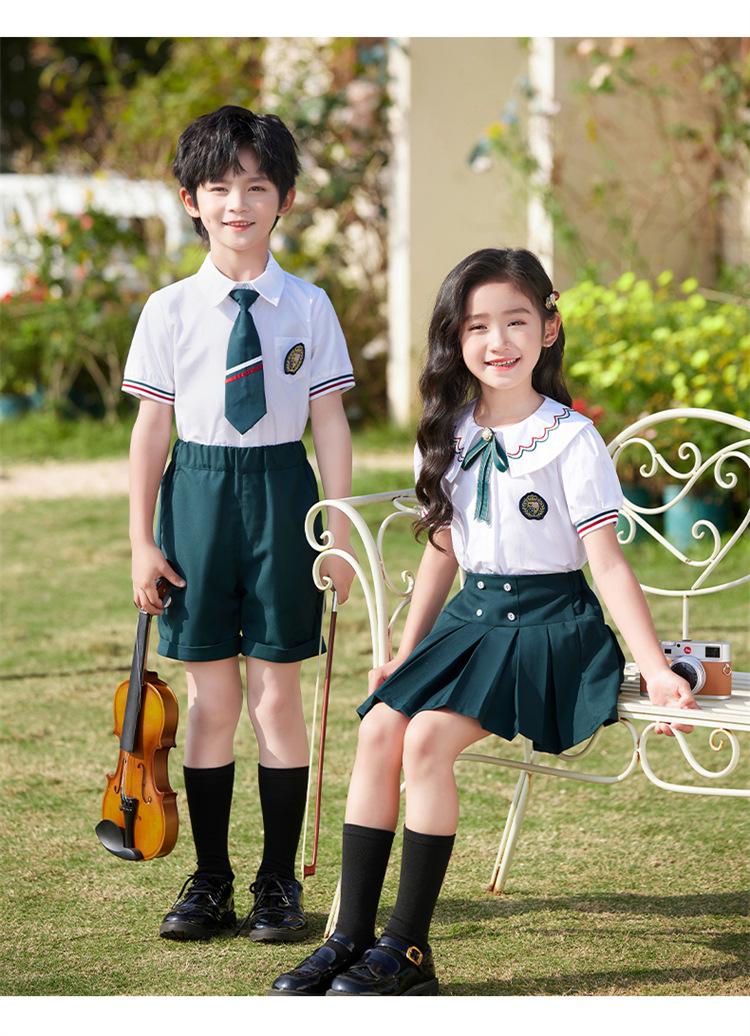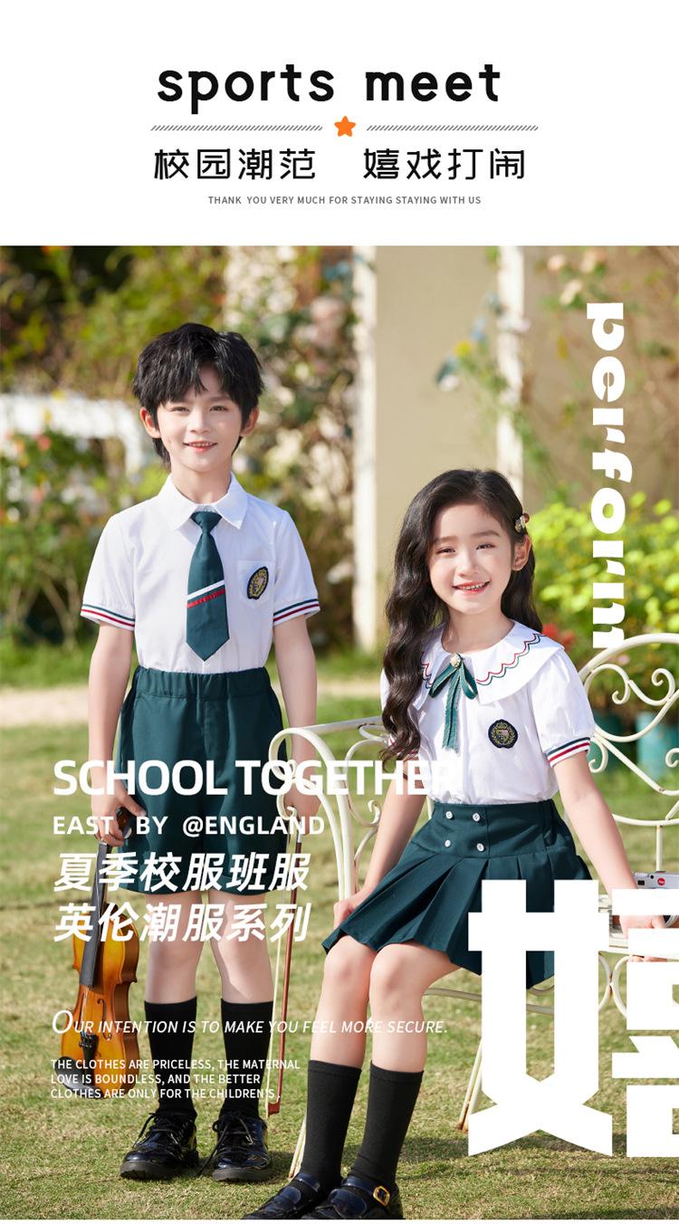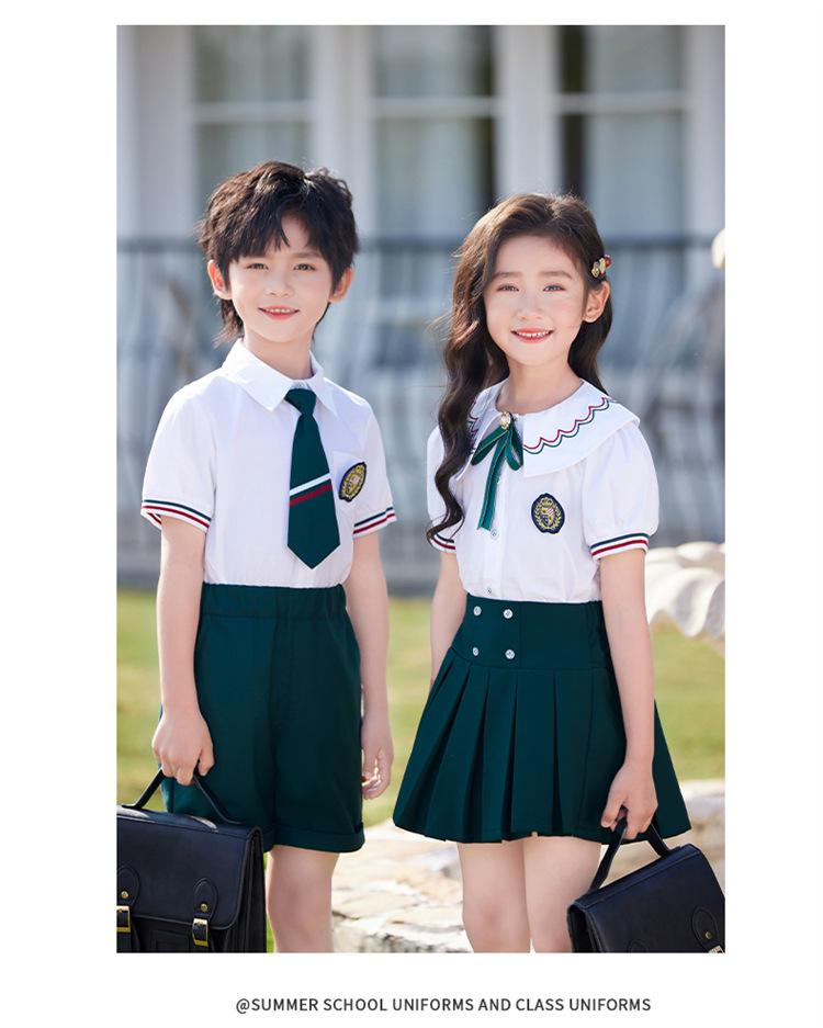 Uniforme de Jardín de Niños Verano Camisa de Manga Corta Falda Estilo Universitario Traje de Uniforme Escolar Estudiante de Primaria Foto de Graduación Uniforme de Clase de Actuación