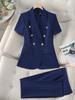 Traje azul marino de verano con cuello pequeño, chaqueta y pantalones para mujer, traje profesional de dos piezas de verano, elegante y adelgazante para ir al trabajo.