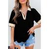 Camiseta de manga corta de malla plisada con cuello en V y contraste de colores, nueva moda de verano 2025, top combinable con todo, camisa pequeña para mujer
