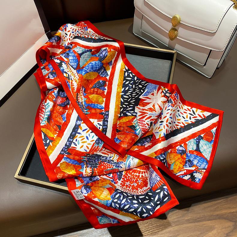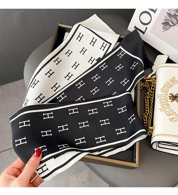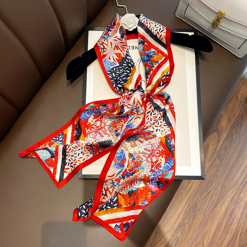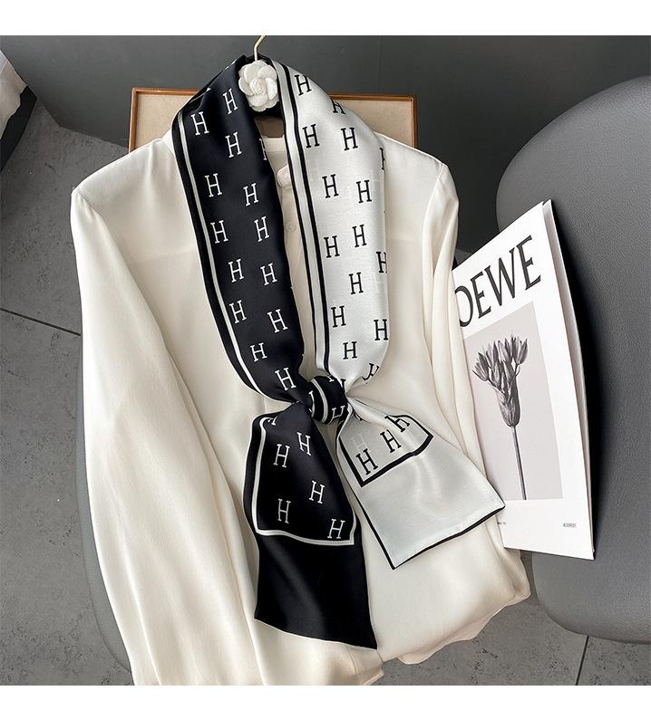 Bufanda de seda de moda para primavera y otoño, para mujer, fina, larga, con lazo, para el cuello, ancha, estilo coreano, estilo verano