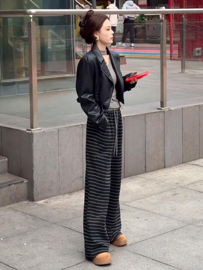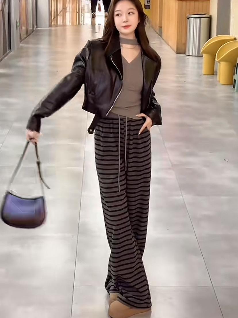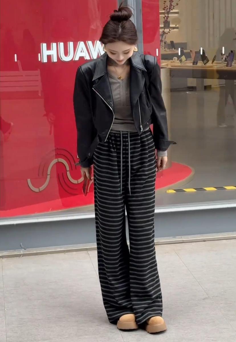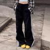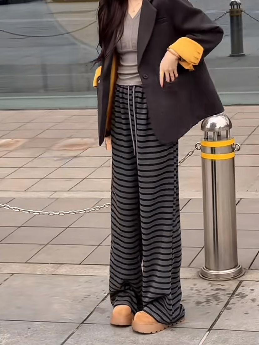 Pantalones Casuales con Cordón y Raya de Color en Contraste para Mujer Primavera 2025 Nuevo Pantalones Holgados Relajados de Pierna Recta y Pierna Ancha